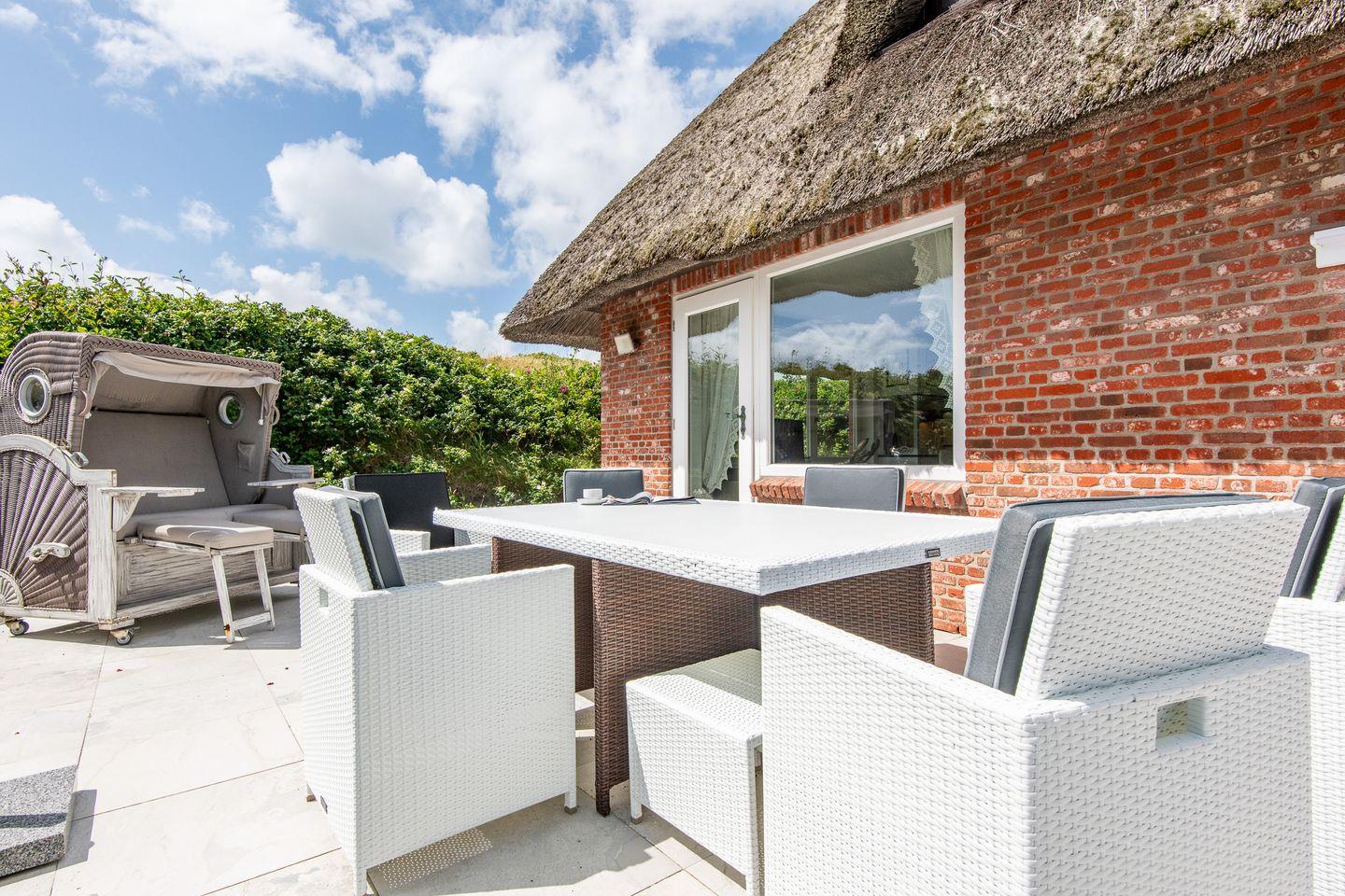 Gemütliches friesisches Ferienhaus unter Reet in Hörnum mit Dünenblick, Südterrasse und nur 100 m zum Strand.
