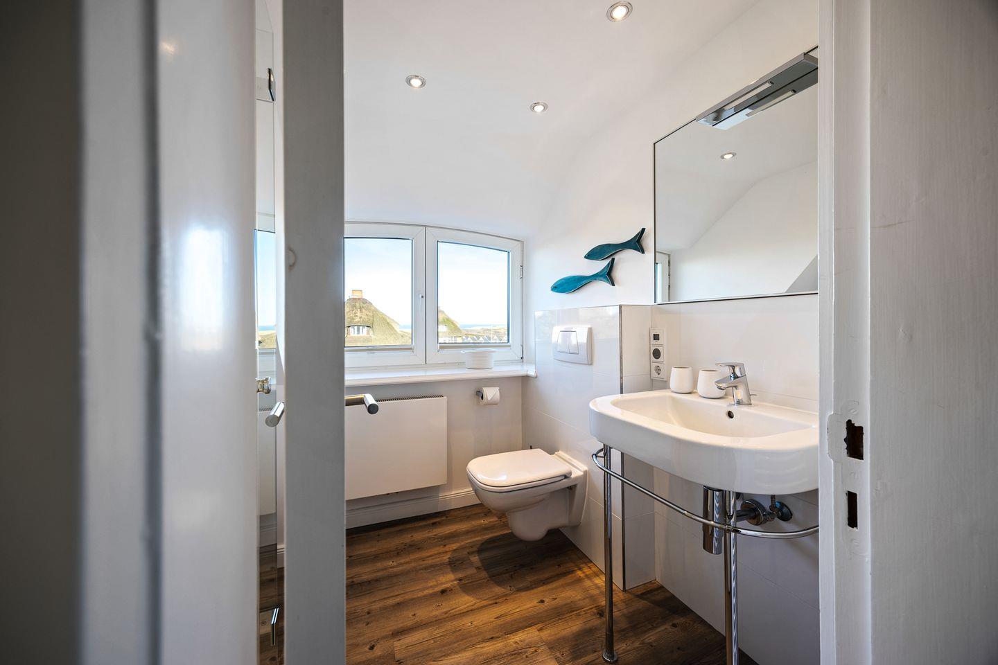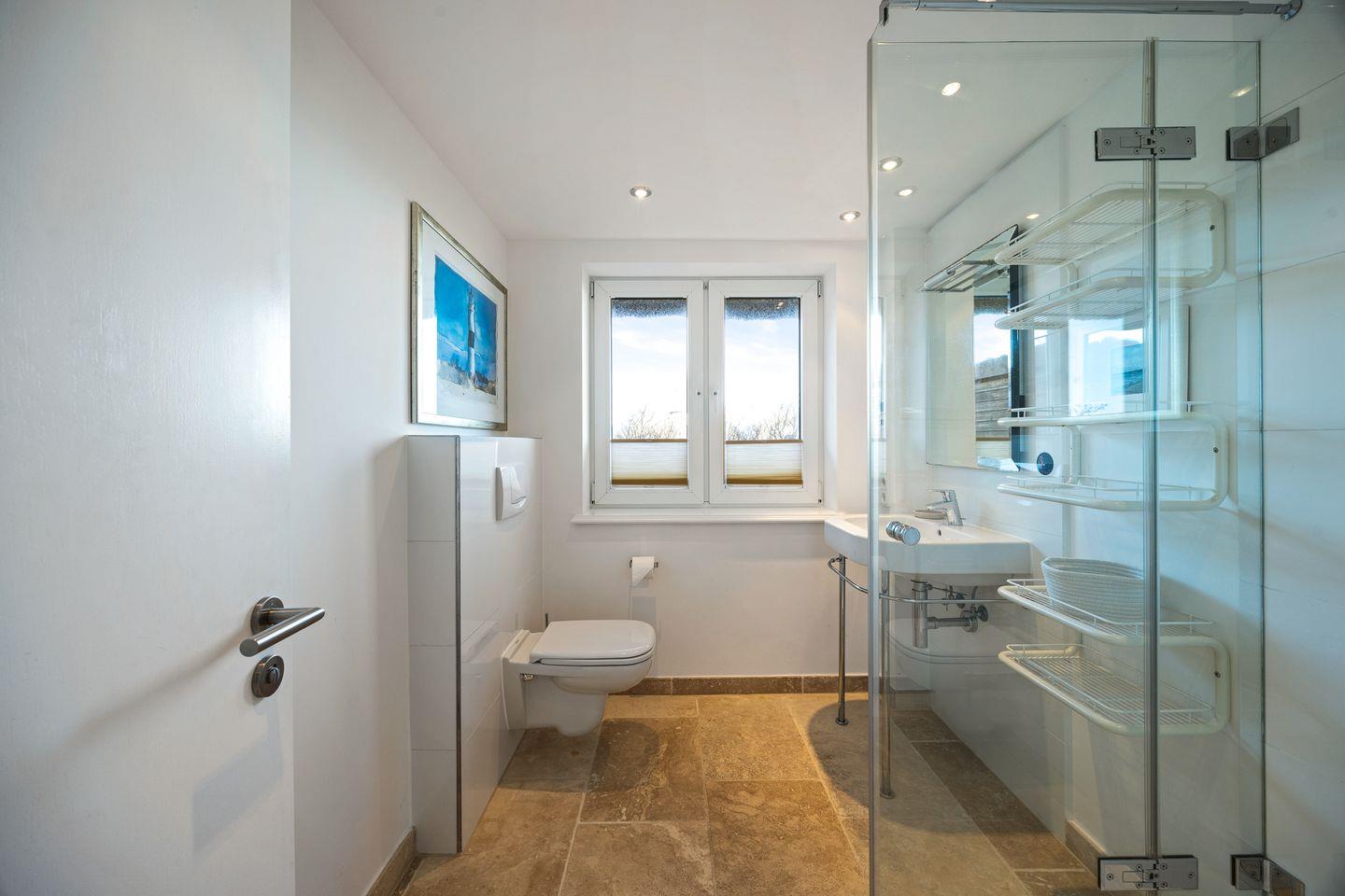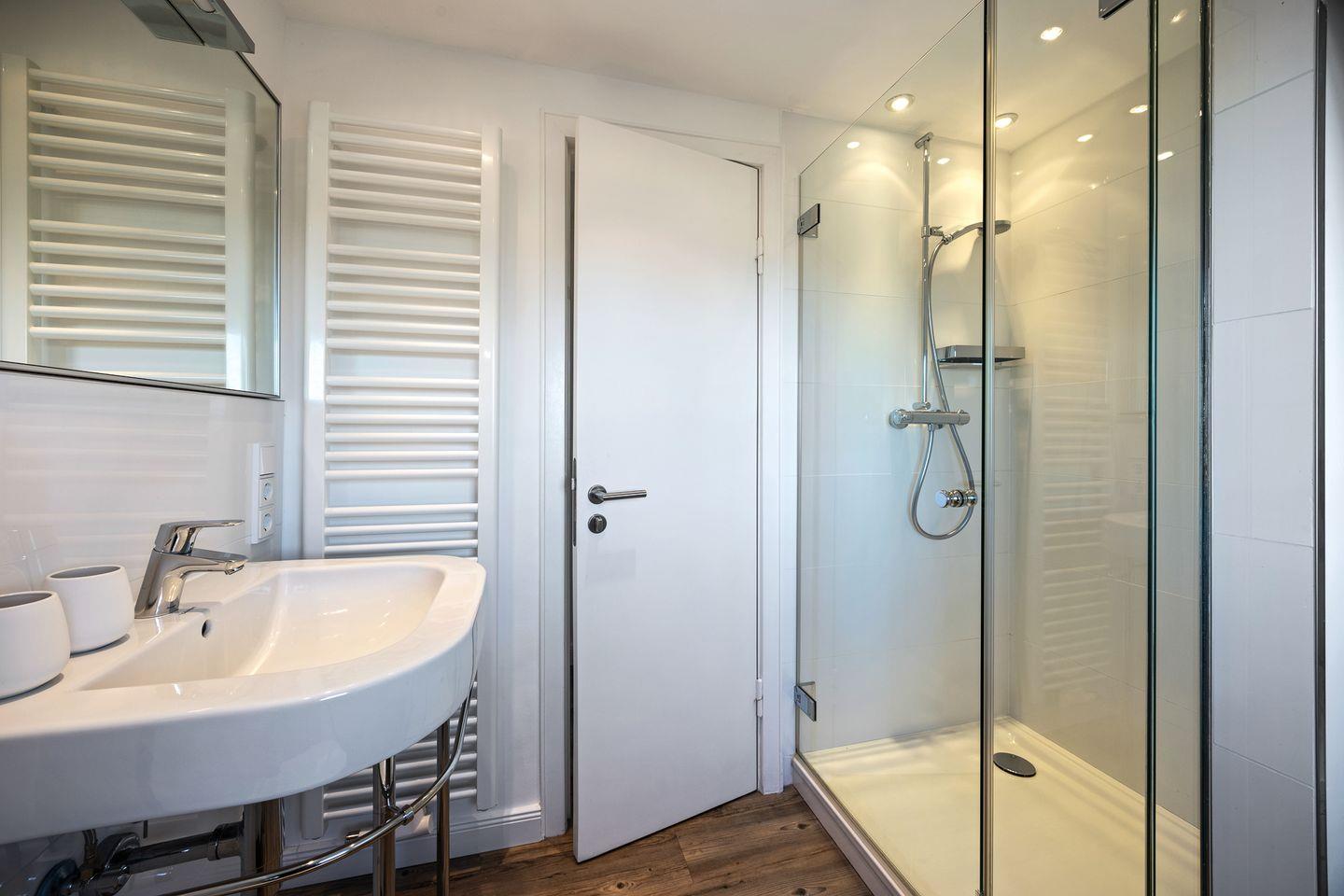 Ein Badezimmer mit Dusche rundet das Erdgeschoss ab und sorgt für zusätzlichen Komfort.