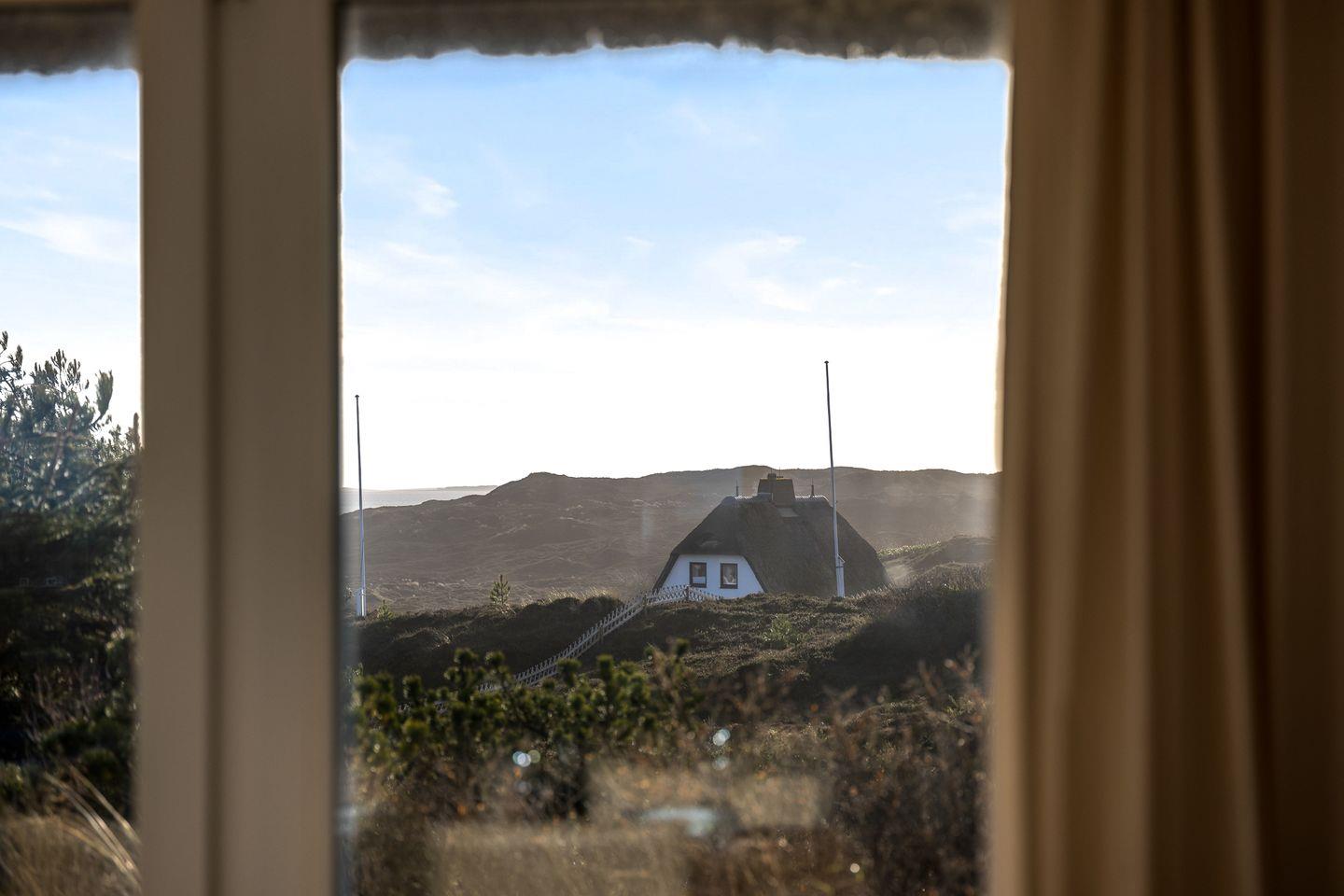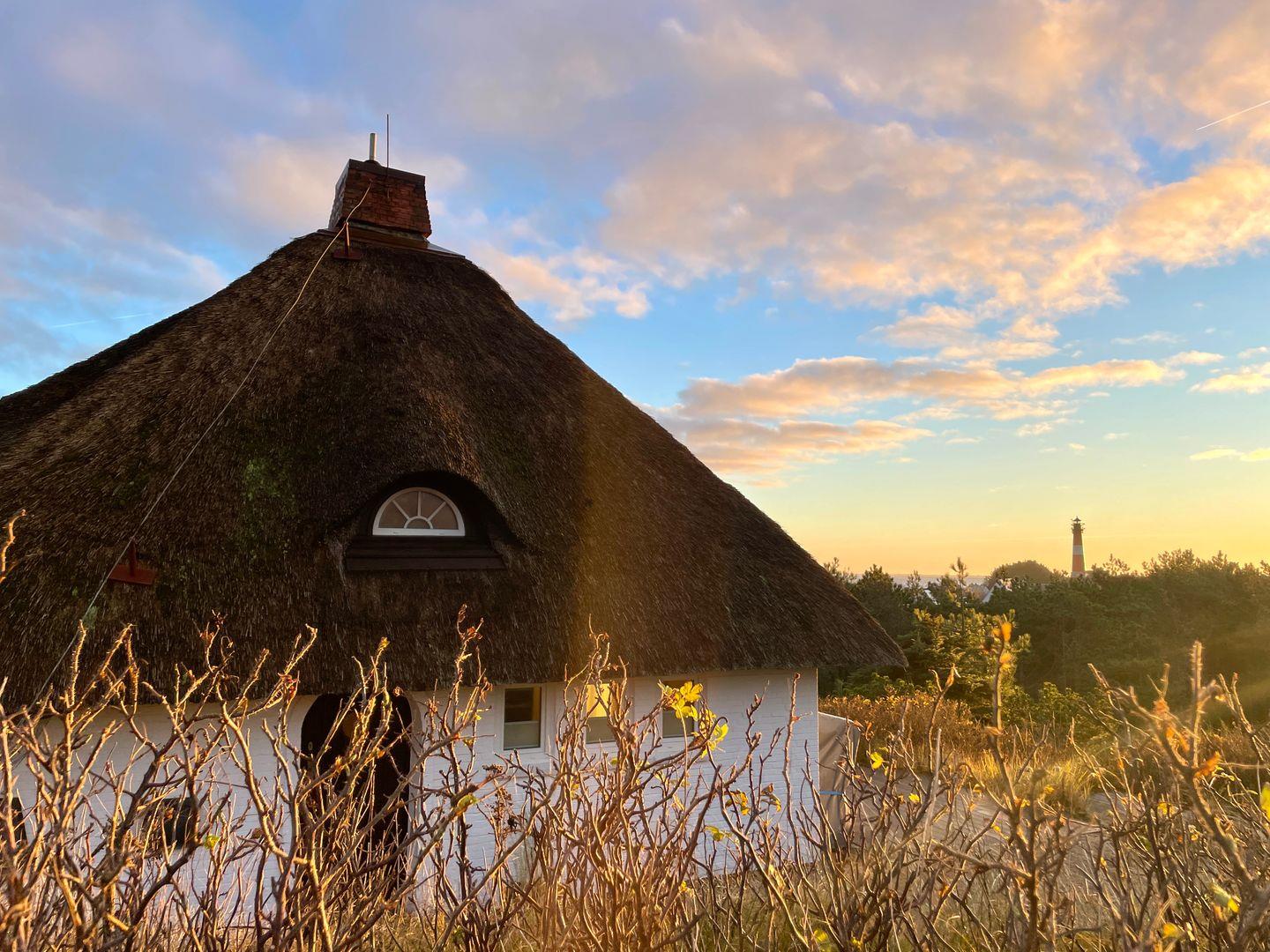 Exklusives Reetdachhaus in Top-Dünenlage mit traumhaftem Blick über Hörnum, die Nordsee und den Leuchtturm. Hochwertige Ausstattung, offener Wohn- und Essbereich, zwei gemütliche Schlafzimmer, zwei Bäder, große Terrasse mit Strandkorb. Ideal für Erholung und Genuss – auch mit Hund (nur EG).