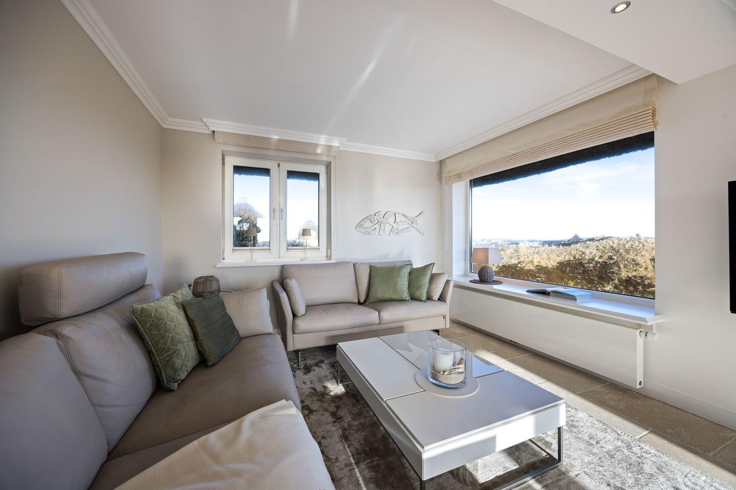 Dieses exklusive Ferienhaus unter Reet in erhöhter Dünenlage bietet Ihnen eine ideale Kombination aus luxuriösem Komfort, beeindruckender Lage und einem imposanten Blick über Hörnum. Die hochwertige Ausstattung mit einem eleganten Limestone-Boden im Erdgeschoss schafft ein einladendes Ambiente. Das großzügige Wohnzimmer begeistert mit einem fantastischen Blick über Hörnum, die Nordsee und den malerischen Leuchtturm – ein Highlight, das Ihren Aufenthalt unvergesslich macht.