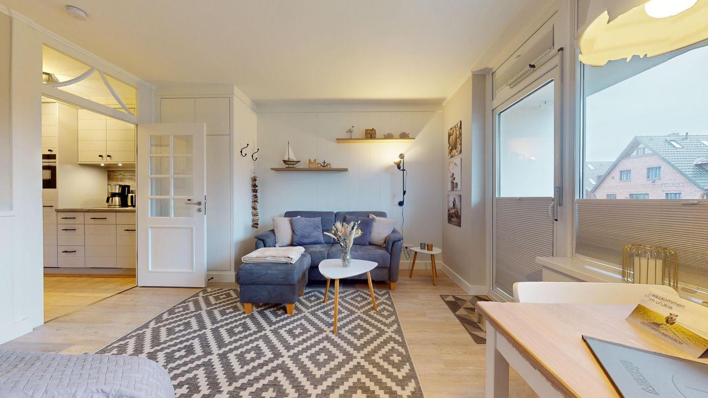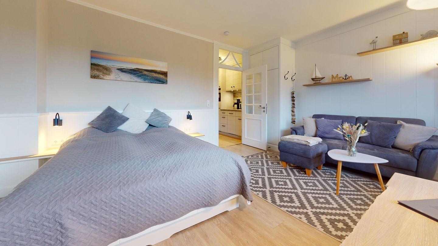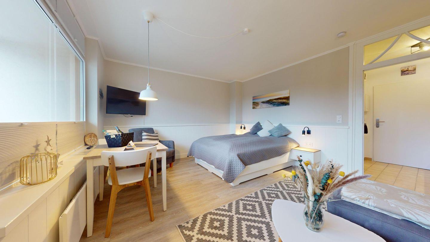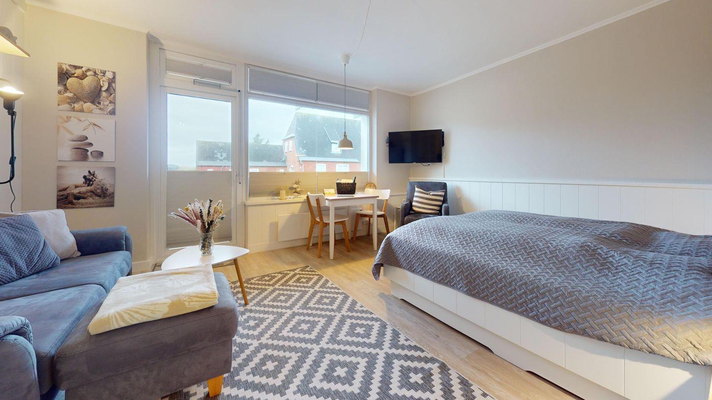 Modernes 1-Zimmer Apartment mit Balkon und exklusiven Tischlereinbauten in Hörnum auf Sylt.