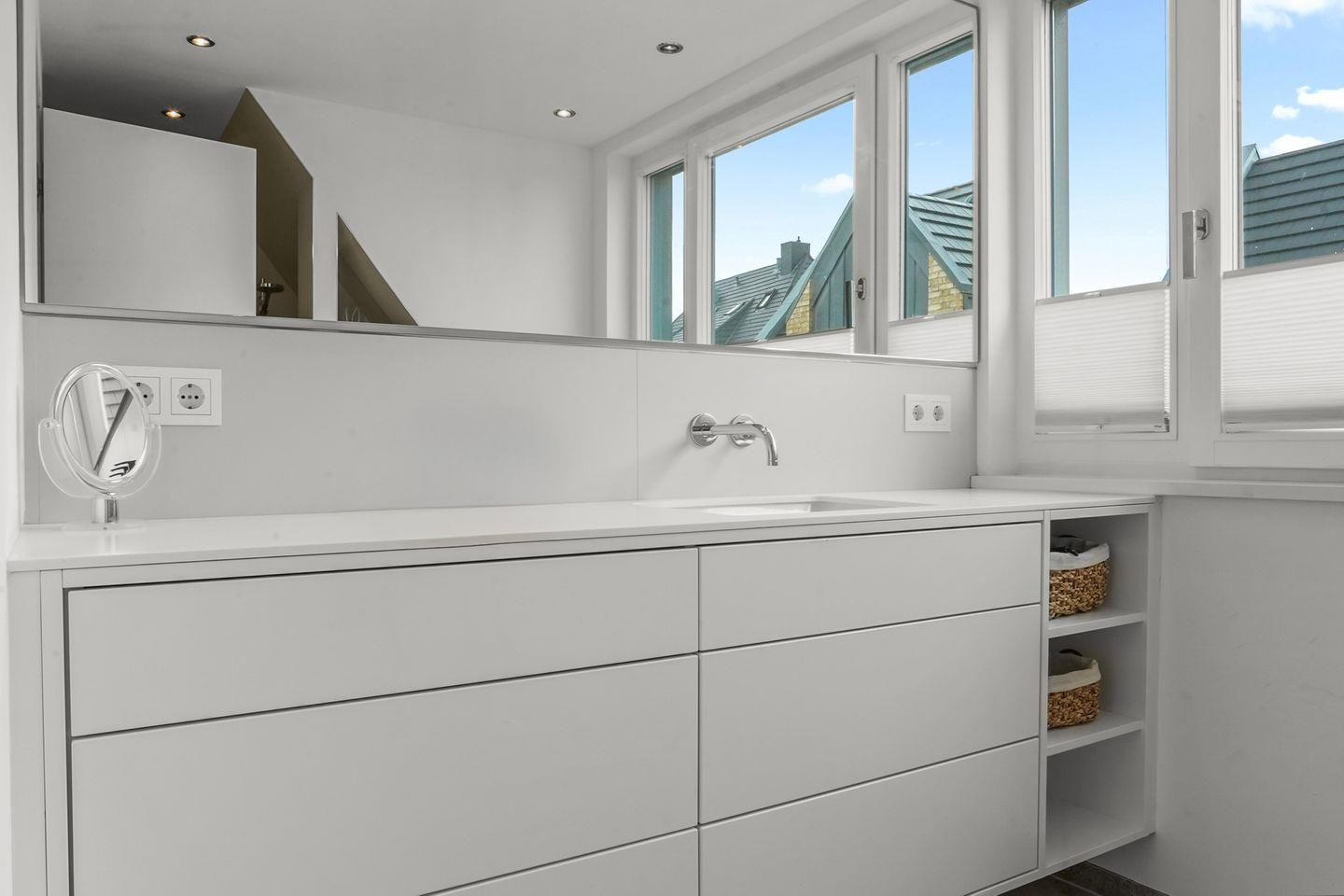 Die Wohnung befindet sich in einem stilvollen Neubau und erstreckt sich über Ober- und Dachgeschoss. Echtholzparkett und zahlreiche elegant integrierte Einbauleuchten sorgen für eine warme, behagliche Atmosphäre. Über die Diele im Erdgeschoss gelangen Sie über eine schöne Holztreppe ins Obergeschoss. Dort empfängt Sie ein offener Wohn- und Essbereich mit viel Tageslicht, ein großzügiges Badezimmer mit Dusche/WC sowie eine hochwertig ausgestattete Küche mit allem, was das Herz ambitionierter Hobbyköche höherschlagen lässt: Induktionskochfeld, Backofen mit integrierter Mikrowelle, Geschirrspüler, Nespresso-Maschine sowie edles Porzellan und Gläser.
