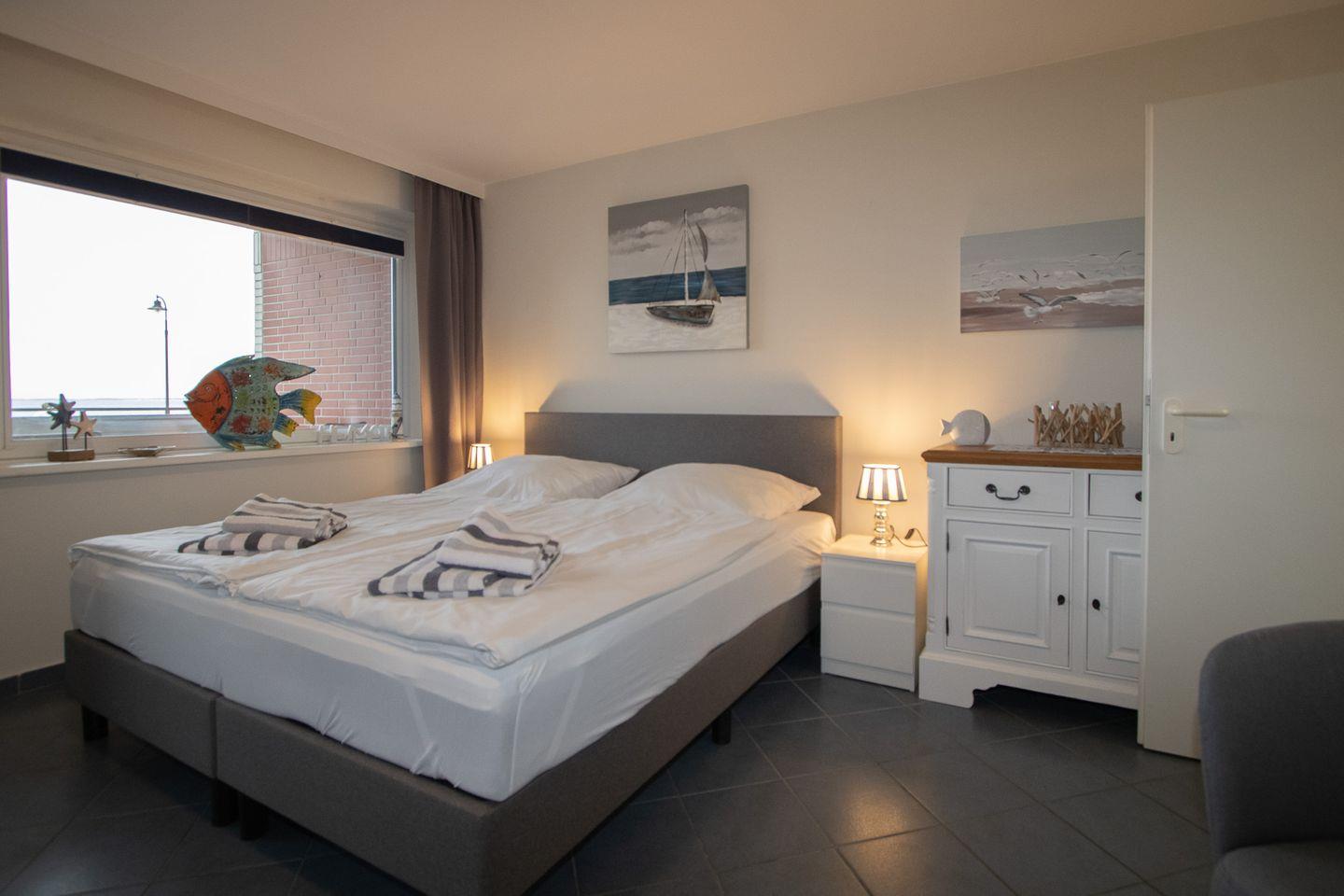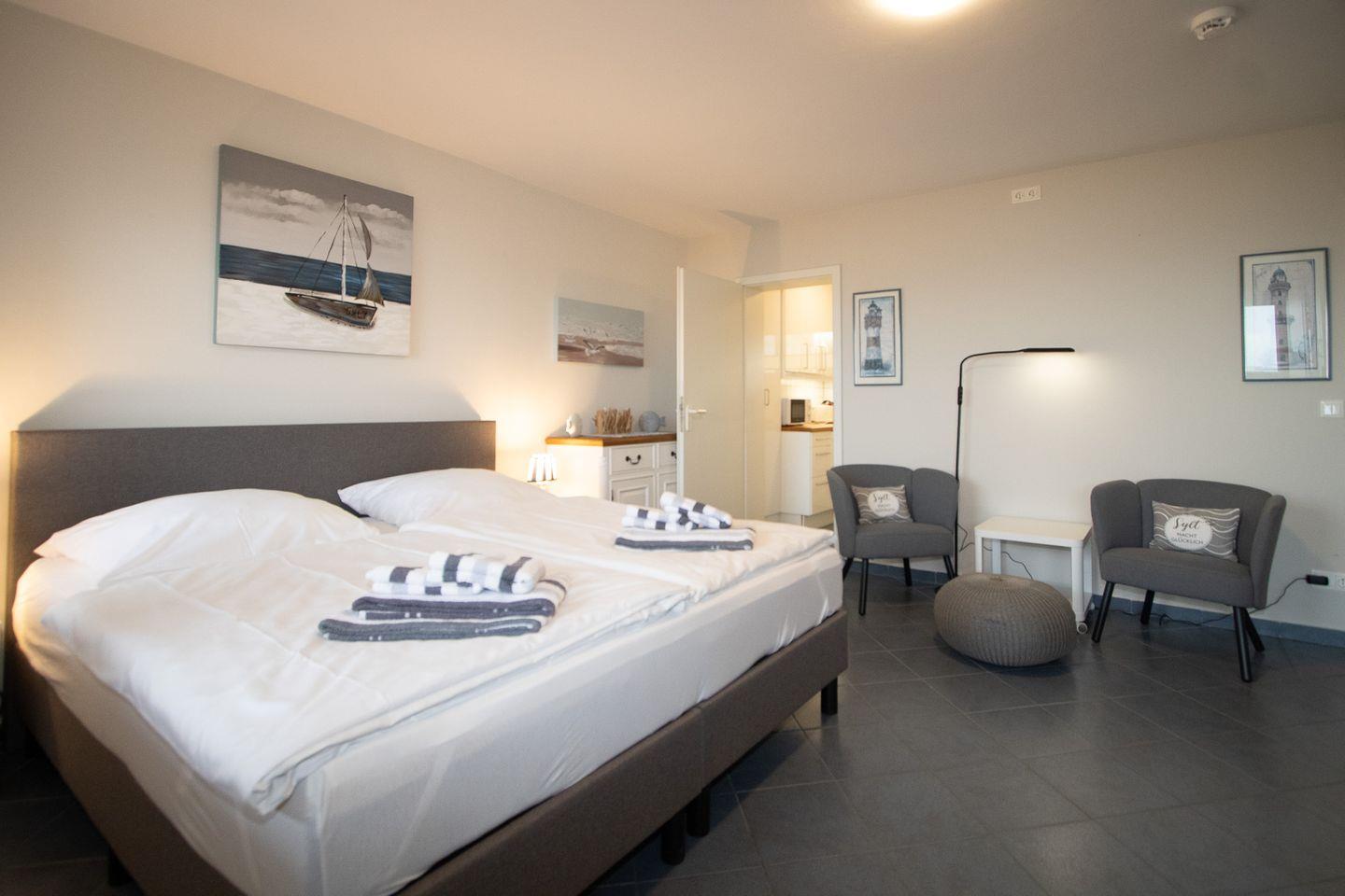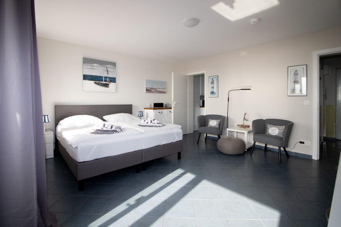 Der Wohnbereich lädt zum Entspannen ein und bietet Möglichkeiten zur individuellen Freizeitgestaltung. Für Ihre Unabhängigkeit sorgt die vorhandene Küche, in der Sie nach Belieben Mahlzeiten selbst zubereiten können. Ein Balkon bietet Ihnen Freiraum an der frischen Nordseeluft – ideal, um den Tag in privater Atmosphäre ausklingen zu lassen oder die inseltypische Ruhe zu genießen.