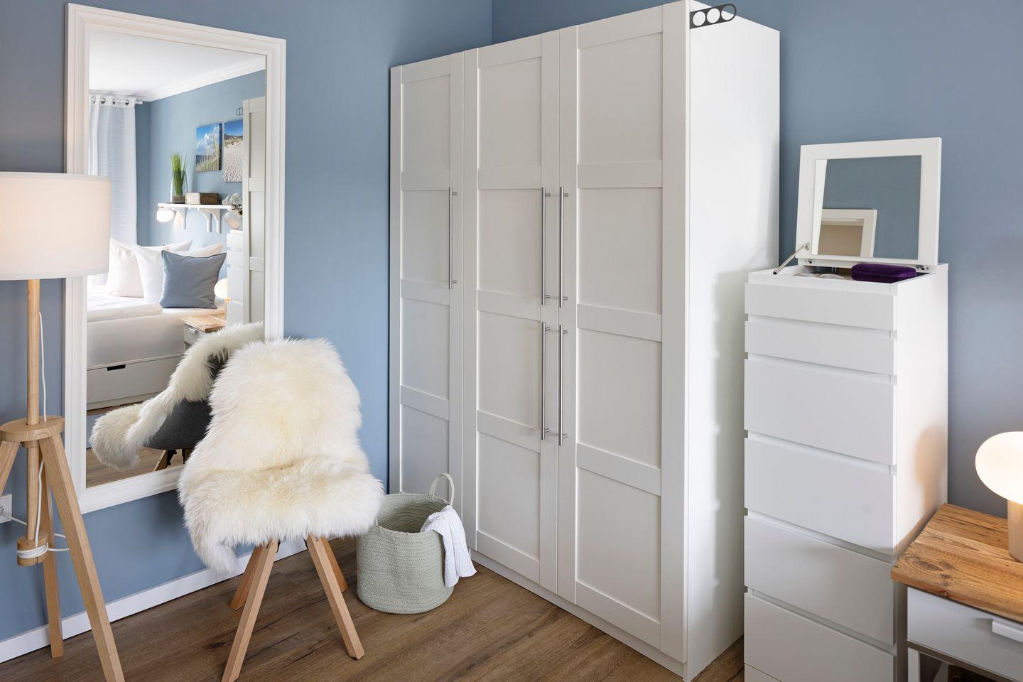 sowie 1,60 m x 2,00 m) und großen Kleiderschränken ausgestattet. Ein 55