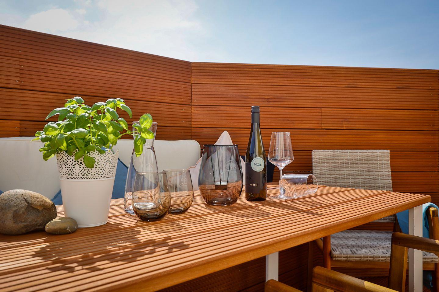 Durch die Nähe zum Hafen und zu den Stränden können Sie auf der Terrasse je