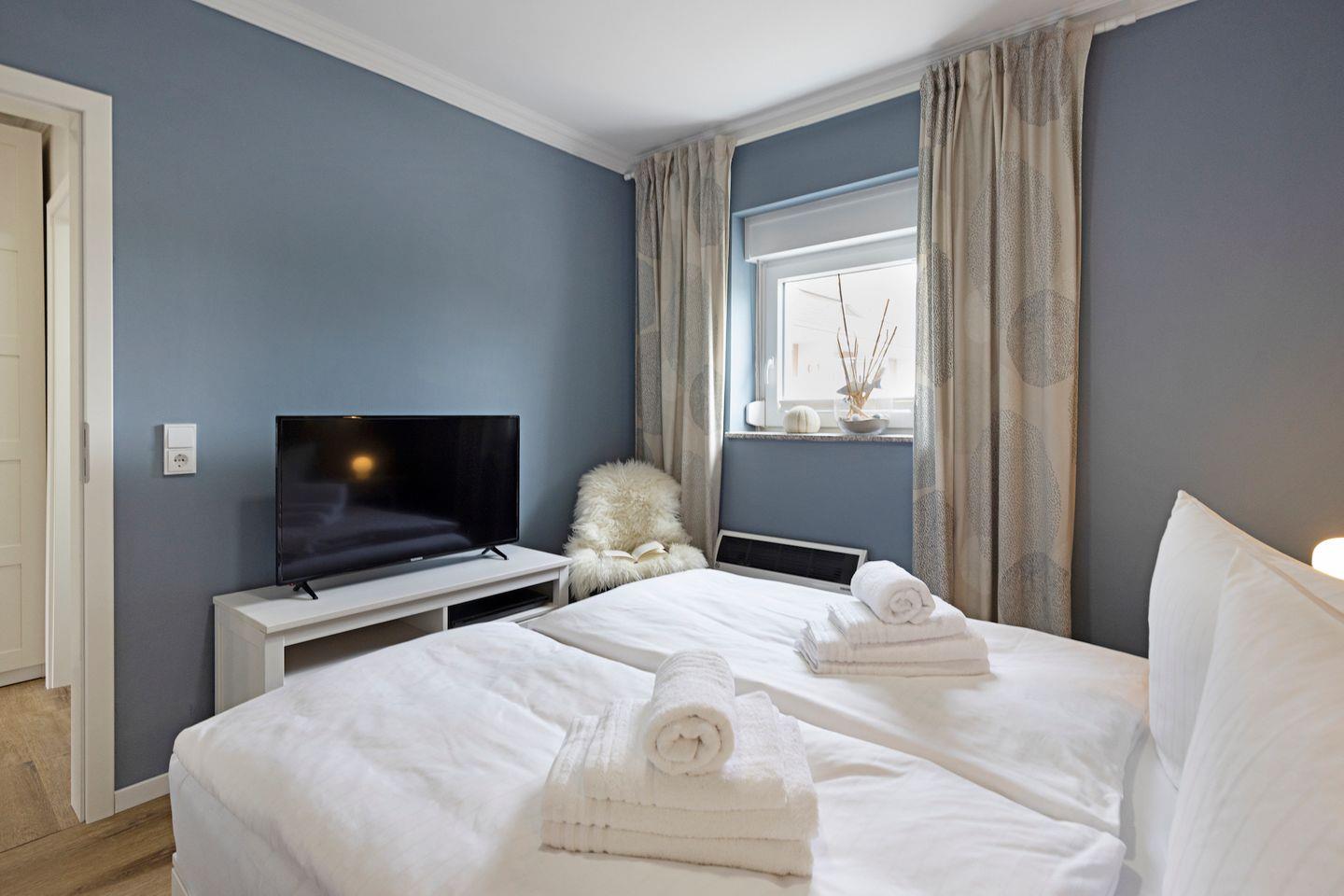 Beide Schlafräume sind mit hochwertigen bequemen Doppelbetten (1,80 m x 2,00 m