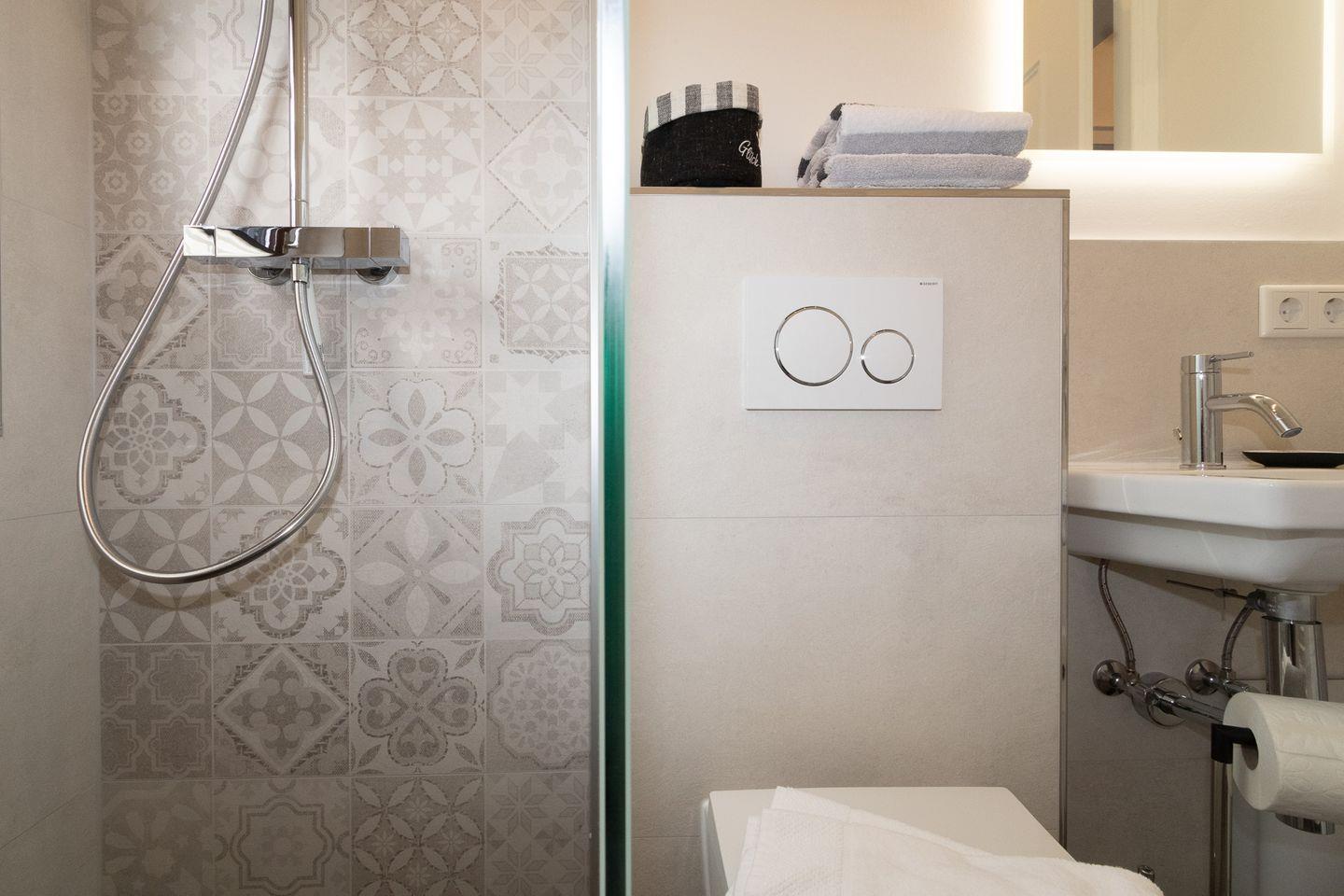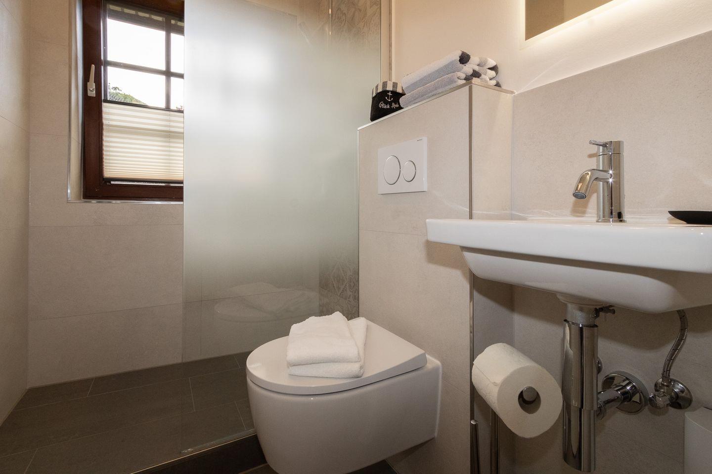Ein weiteres Highlight der Wohnung ist das Badezimmer, das mit einer Dusche ausgestattet ist und durch Fußbodenheizung zusätzlichen Komfort bietet. Für weiteren Komfort sorgen eine Waschmaschine und ein Trockner, die Gemeinschaftlich genutzt werden können (im Nebenhaus).