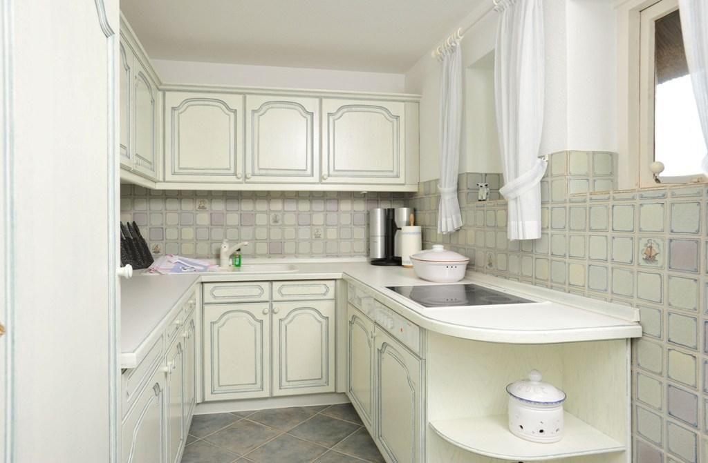 Die separate Küche ist mit einem 4-Flammen-Herd, Geschirrspüler, Filterkaffeemaschine und sogar einer Brotschneidemaschine ausgestattet. Die Durchreiche zum Essbereich erleichtert das Servieren und schafft ein angenehmes, offenes Wohngefühl.
