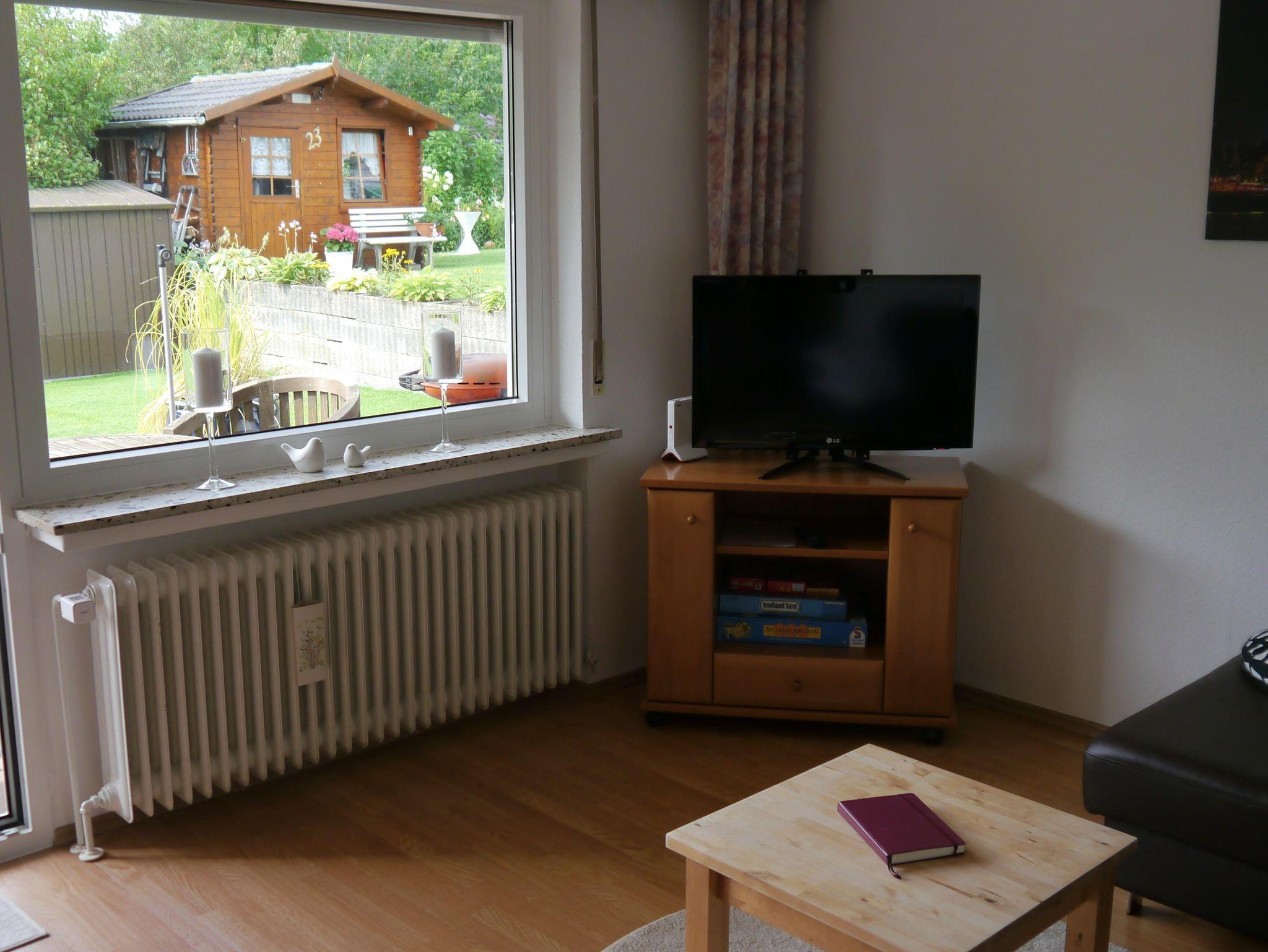 Die Wohnung ist ca. 43 m2 groß, bestehend aus Wohnzimmer und Schlafzimmer sowie Küche, Diele und Bad. Vom Wohnzimmer und vom Schlafzimmer gelangt Ihr direkt auf die Terasse und in den Garten. Die Wohnungsausstattungen umfasst ein TV-Gerät mit Kabelanschluss, eine Bluetooth-Box, WLAN, Terassenmöbel. Im Schlafzimmer könnt Ihr, bei Bedarf, den Schreibtisch als mobilen Arbeitsplatz nutzen.In der Küche findet Ihr neben einem E-Herd mit Backofen, eine Spülmaschine, eine Pad-Kaffeemaschine, ein Toaster und ein Wasserkocher.Für Euren Aufenthalt sind pro Nacht ein Spülmaschinentab sowie Handwaschseifen enthalten.