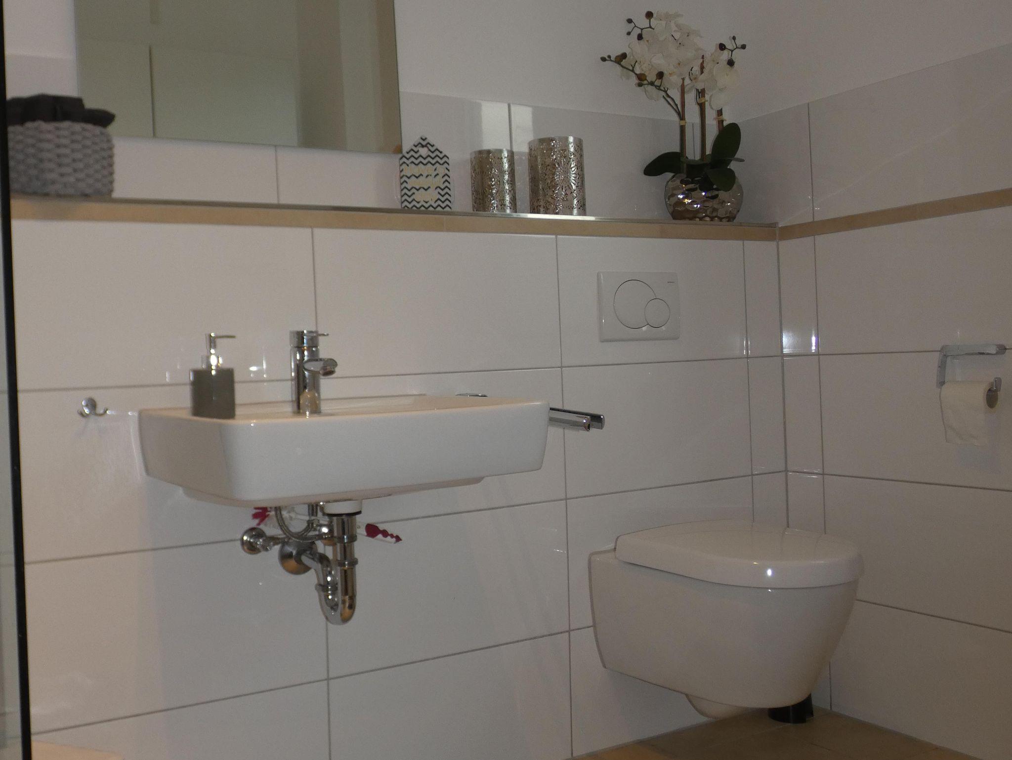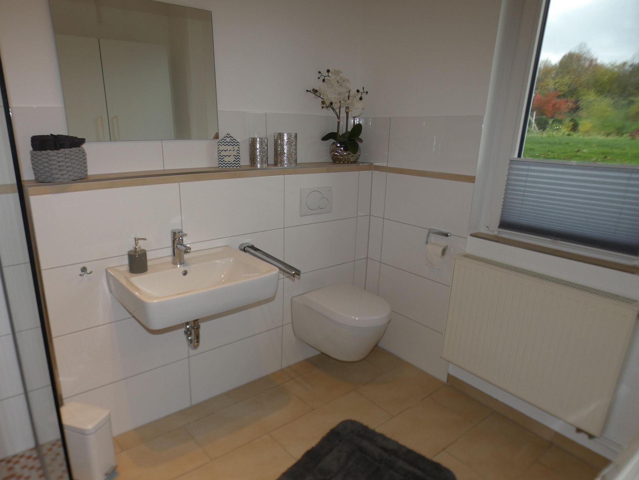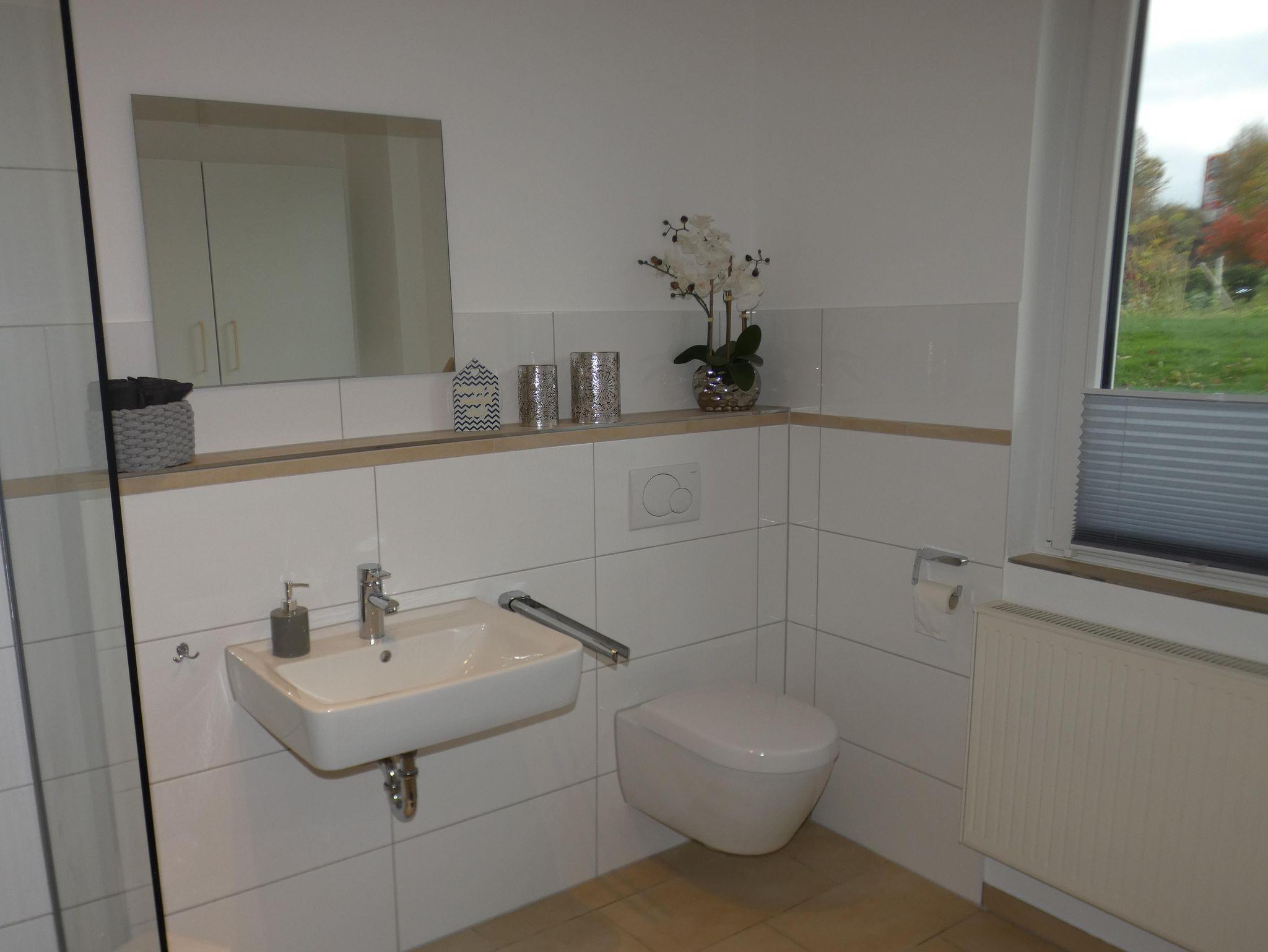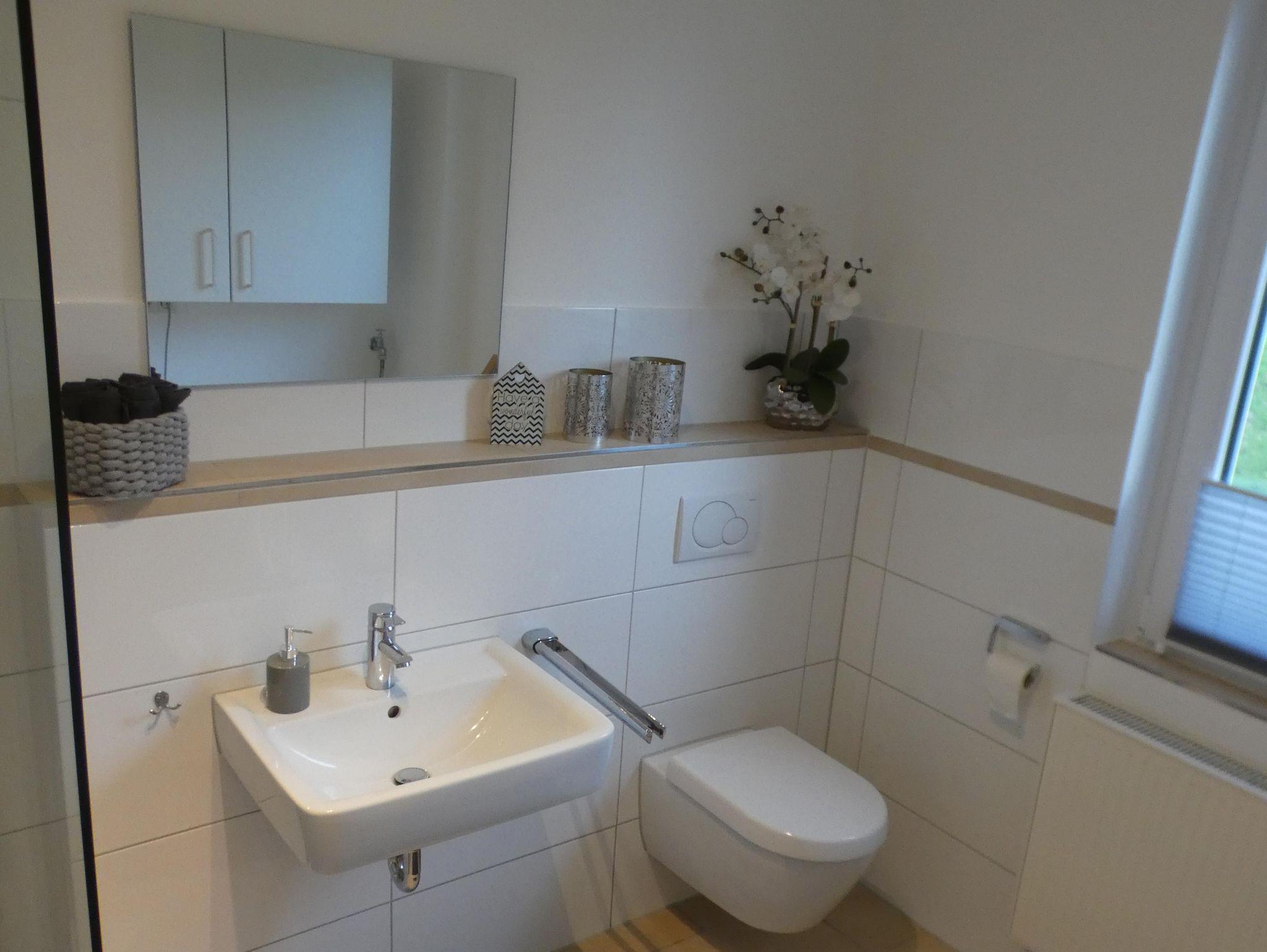 Geradeaus weiter ist das nächste Zimmer, in dem das Bad mit Dusche untergebracht ist.