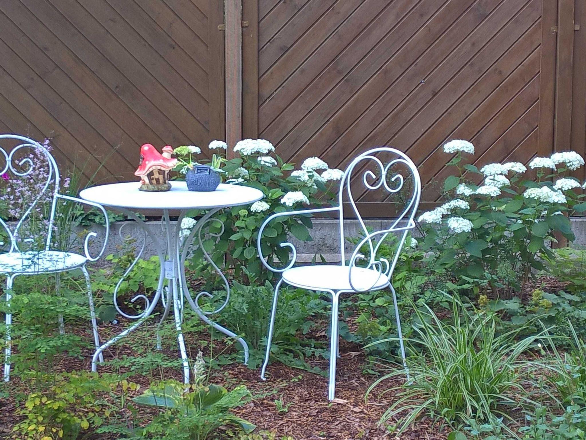 Für den Aufenthalt im Freien kann der Gartenbereich mit Sitzecke genutzt werden.