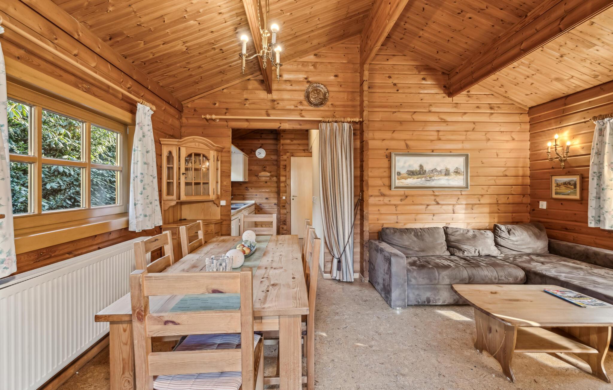 Genießen Sie einen naturnahen Aufenthalt in diesem charmanten Holzhaus nahe dem Dankernsee. Das Haus besticht durch eine warme, wohnliche Atmosphäre mit einem rustikalen Holzambiente im Innenbereich. Verweilen Sie im großzügigen Wohnzimmer mit gemütlicher Sitzecke und praktischem Essbereich. Nutzen Sie die praktisch eingerichtete Küche, um gemeinsam leckere Mahlzeiten zuzubereiten. Der Wohnbereich lädt dazu ein, gemeinsam Spiele zu spielen oder Pläne für die kommenden Tage zu schmieden.