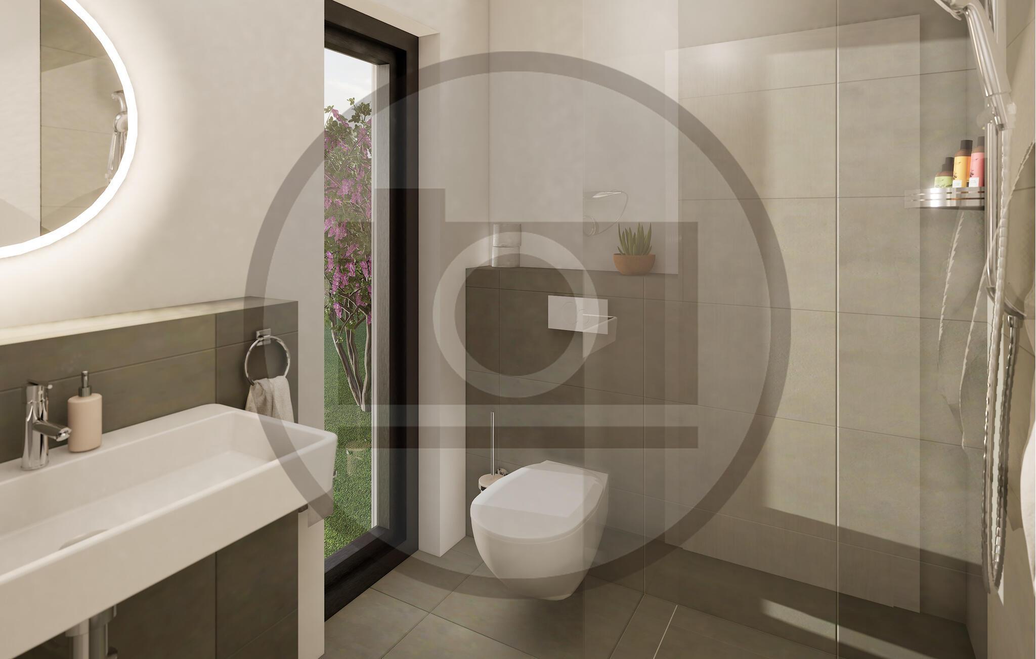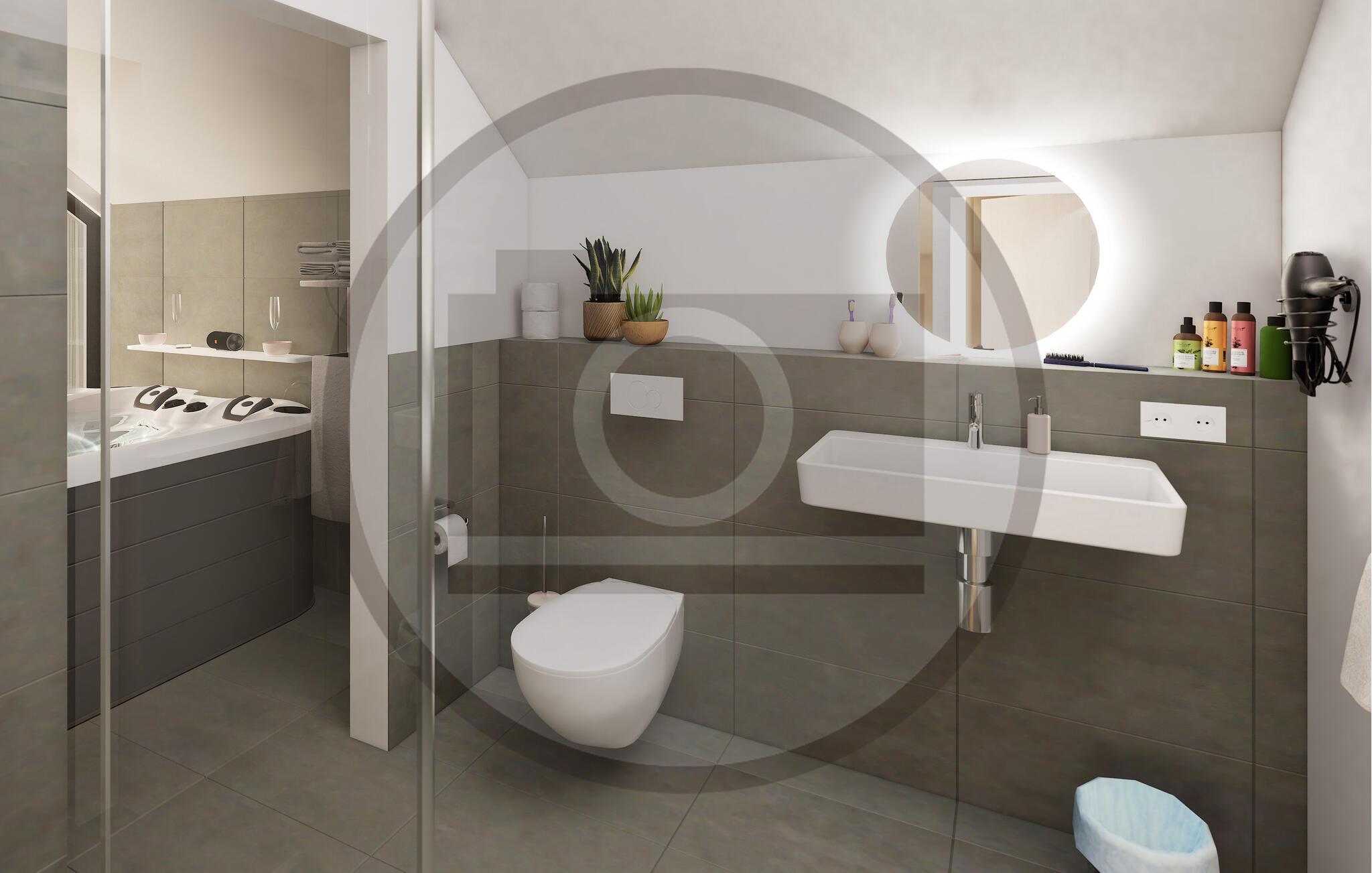 Badezimmer (nr. 2) - WC. Warmes und kaltes Wasser. Dusche