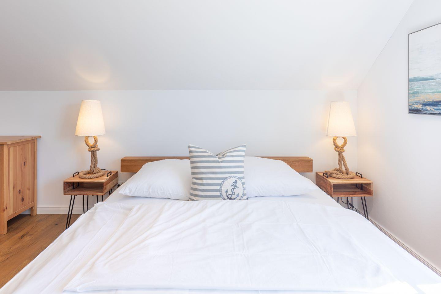 Zwischen der grünen Insel Nordstrand und der Theodor-Storm-Stadt Husum: die neu gebaute, chice Ferienwohnung über zwei Etagen bietet Platz für bis zu zwei Personen.