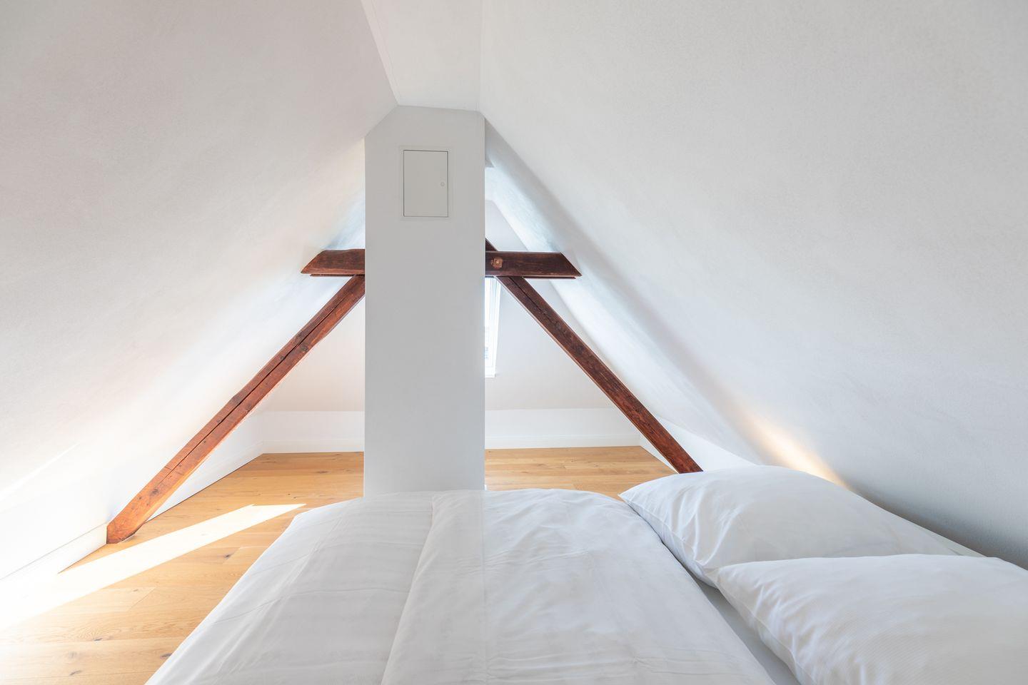 Über eine Treppe gelangen Sie auf den Spitzboden, das mit einem Doppelbett (160 x 200) eingerichtet ist - perfekt für Kinder!