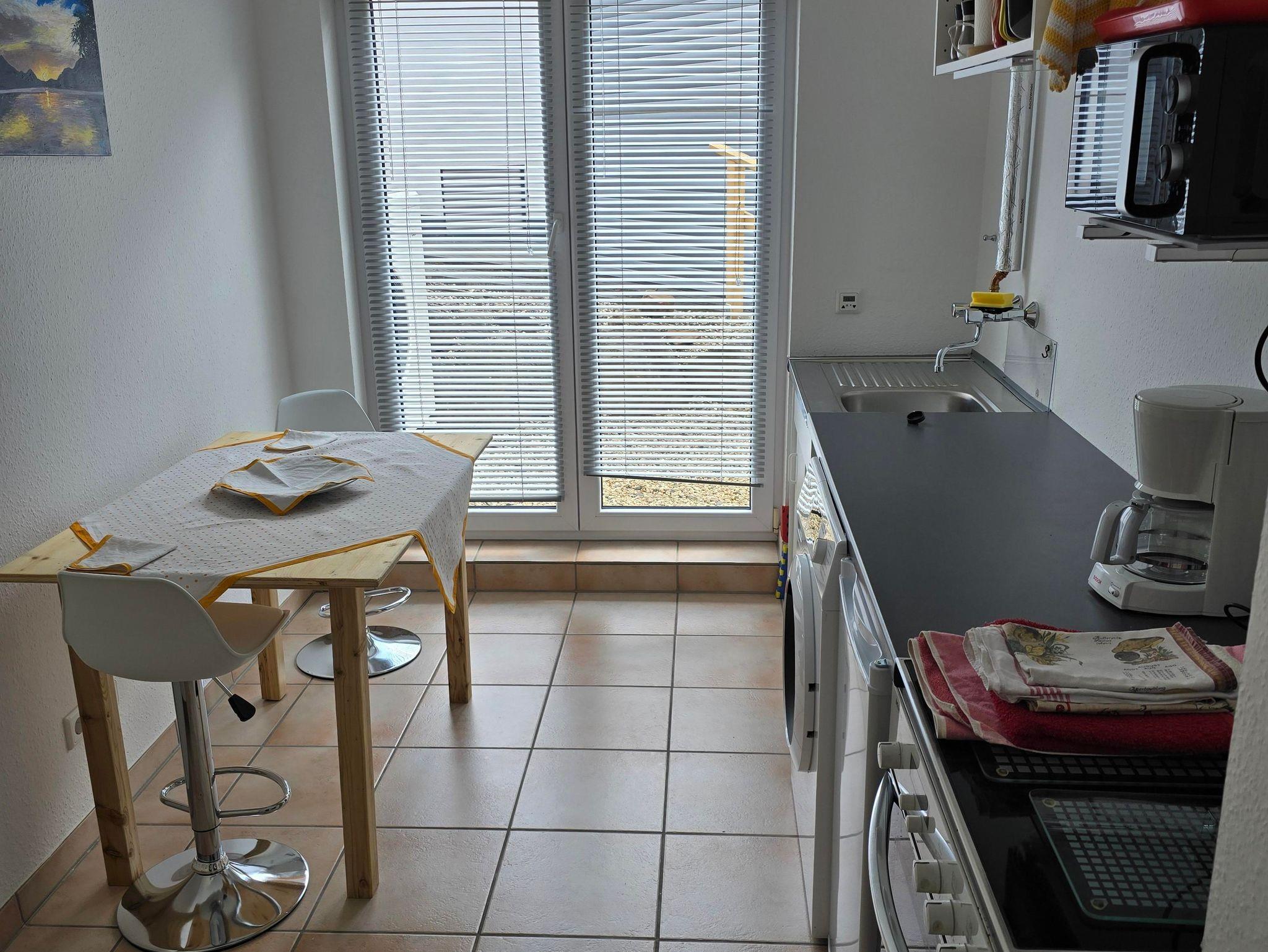 Vor dem Haus steht Ihnen ein Stellplatz im Hof zur Verfügung. Die Wohnung verfügt über WLAN, Sat-TV, eine gut ausgestattete Küchenzeile mit Mikrowellenofen und zwei Kochplatten, Kaffeemaschine, Wasserkocher und Sodastream. Die Terrasse mit Sitzmöbeln und die Wiese können gerne genutzt werden.