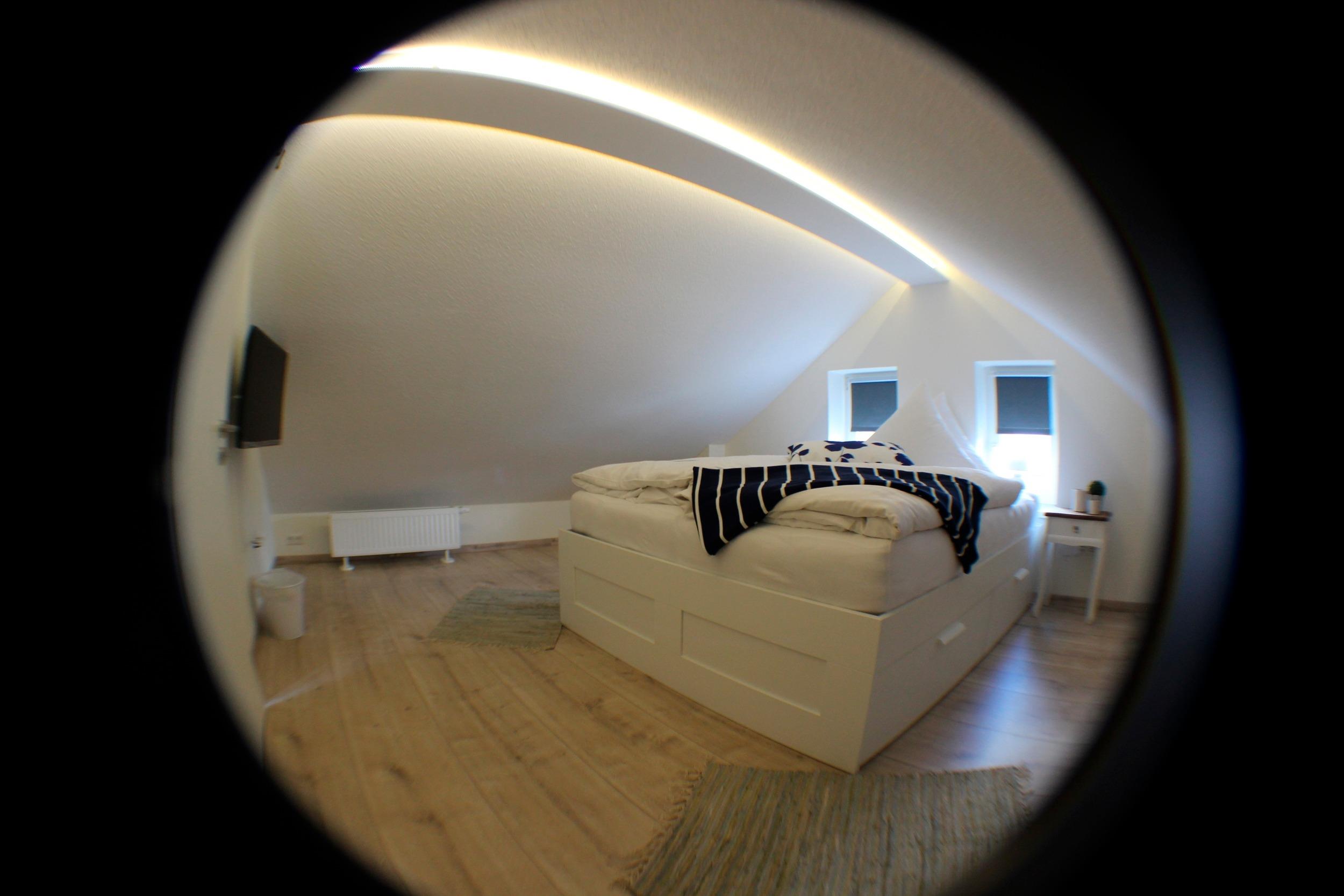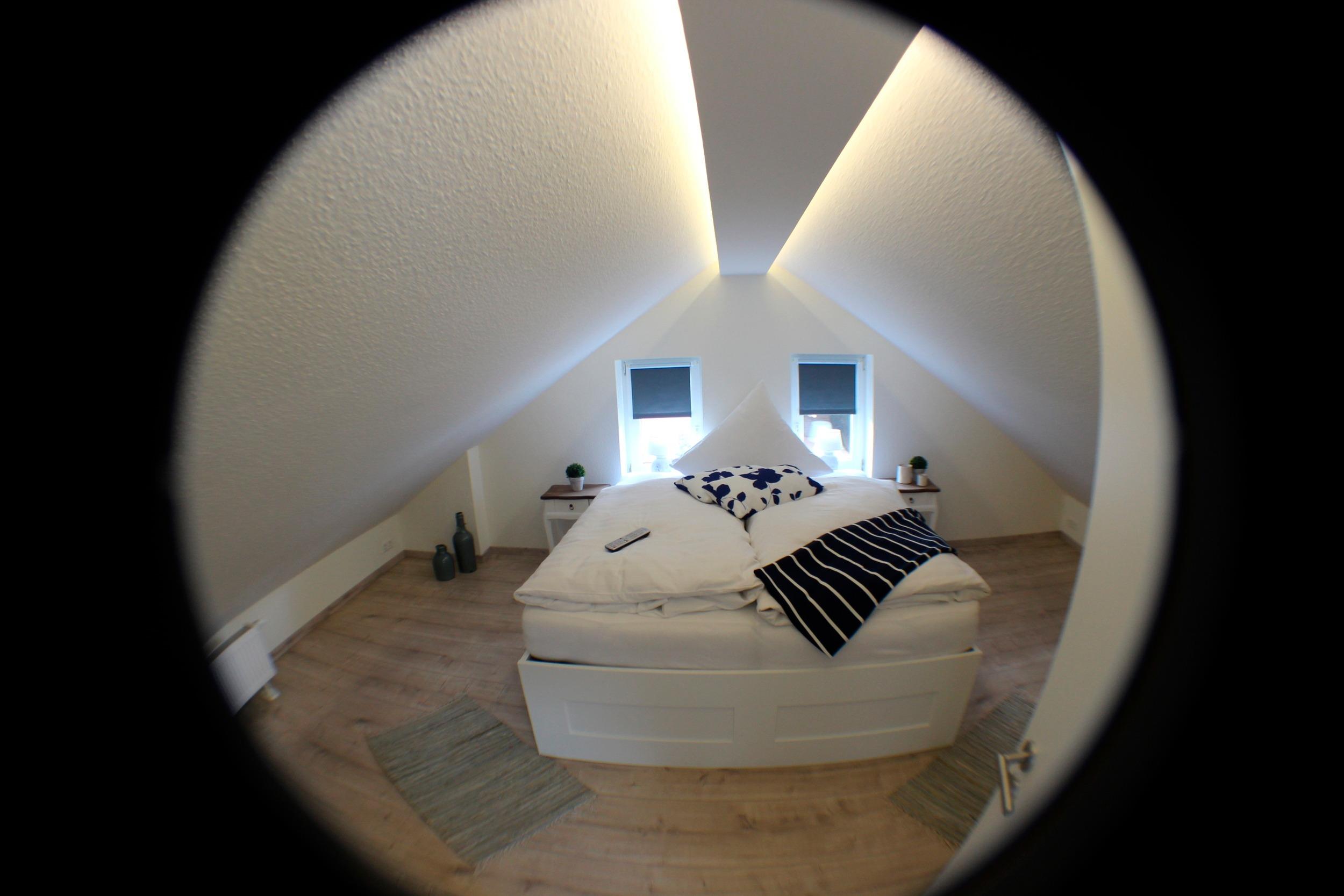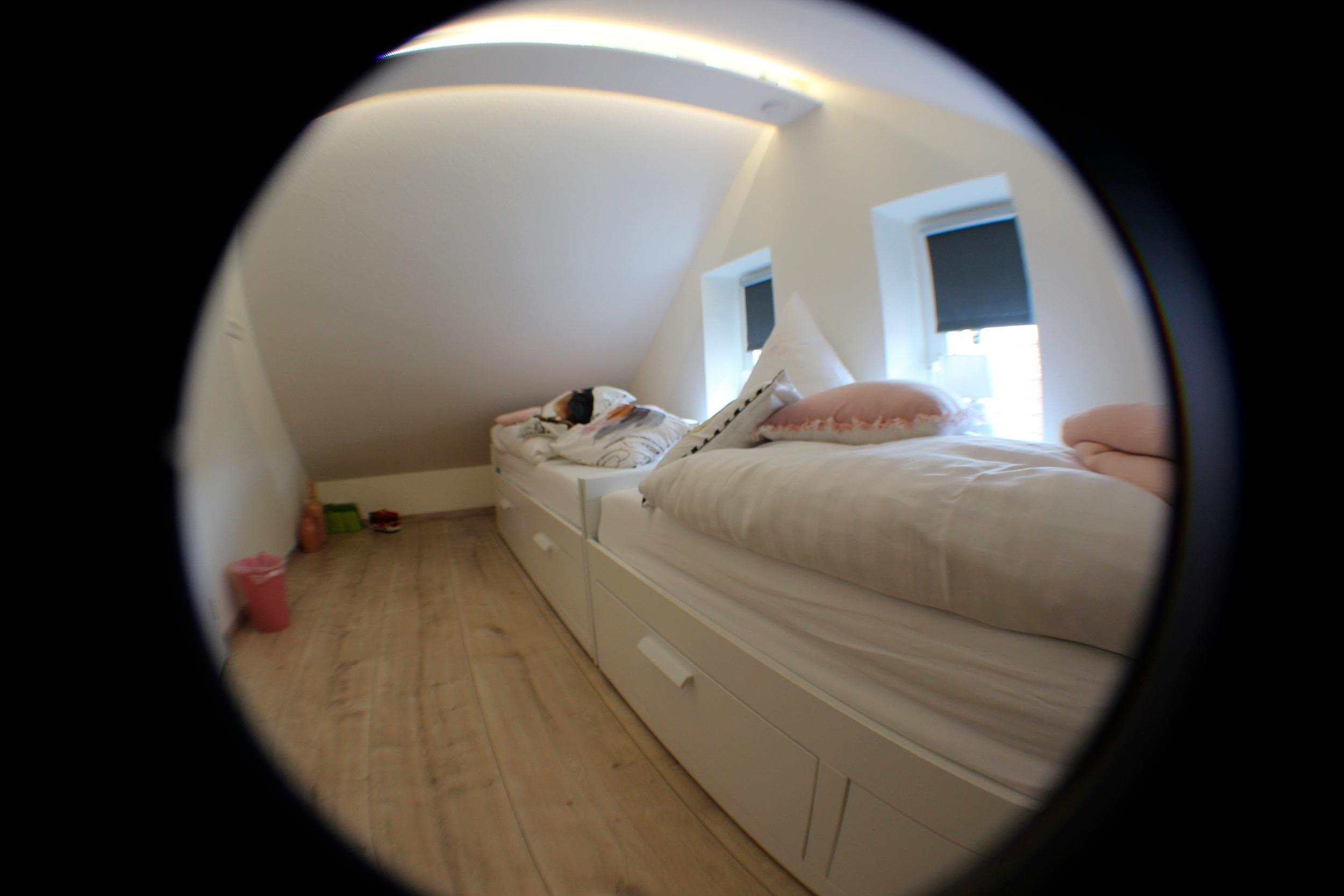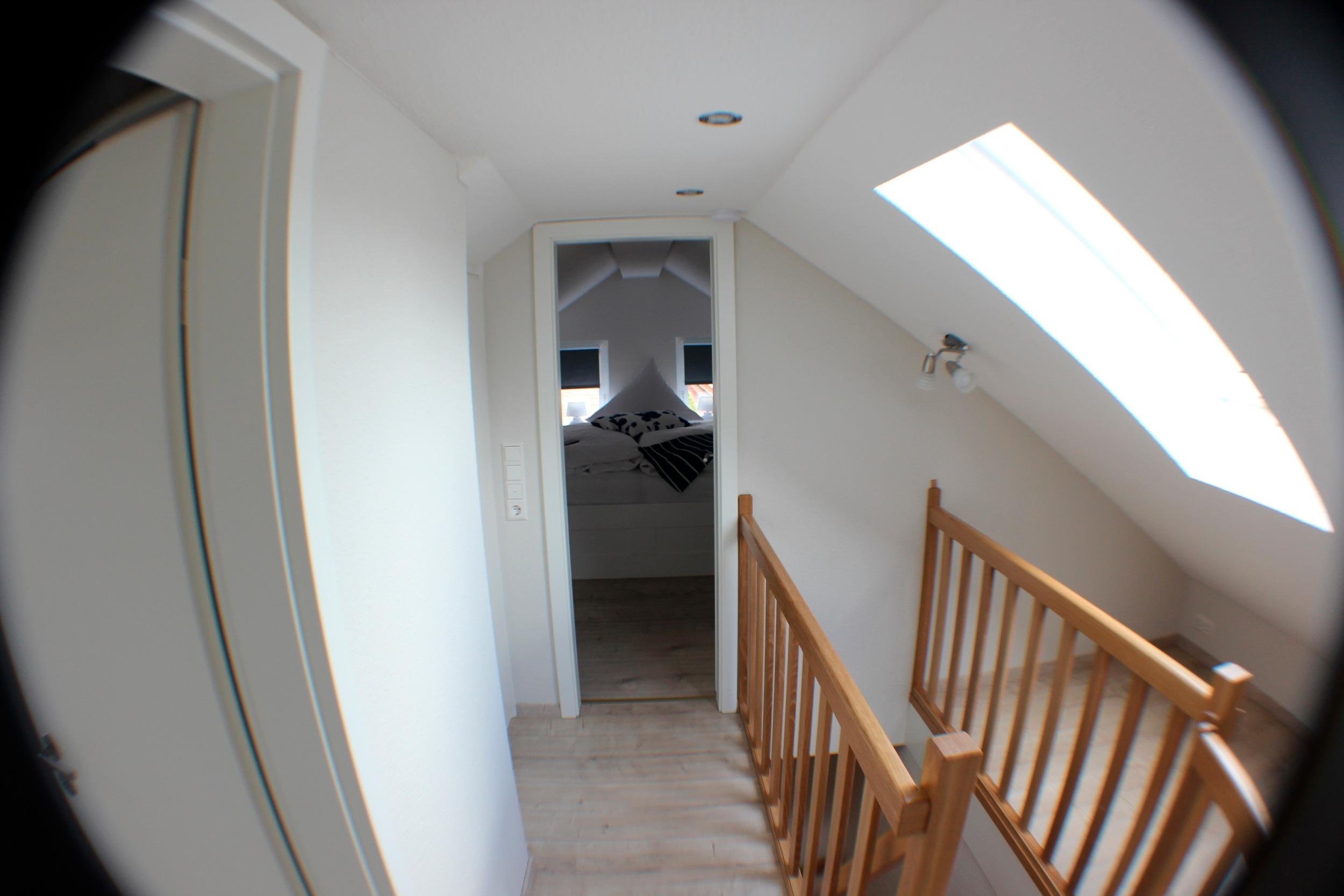 Das Obergeschoss ist mit zwei weiteren Schlafzimmern mit Doppelbett (+ LCD-Fernseher) bzw. Einzelbetten eingerichtet. (+ Kinderspielzeug) Der Treppenaufgang ist durch eine Pforte kindergesichert.
