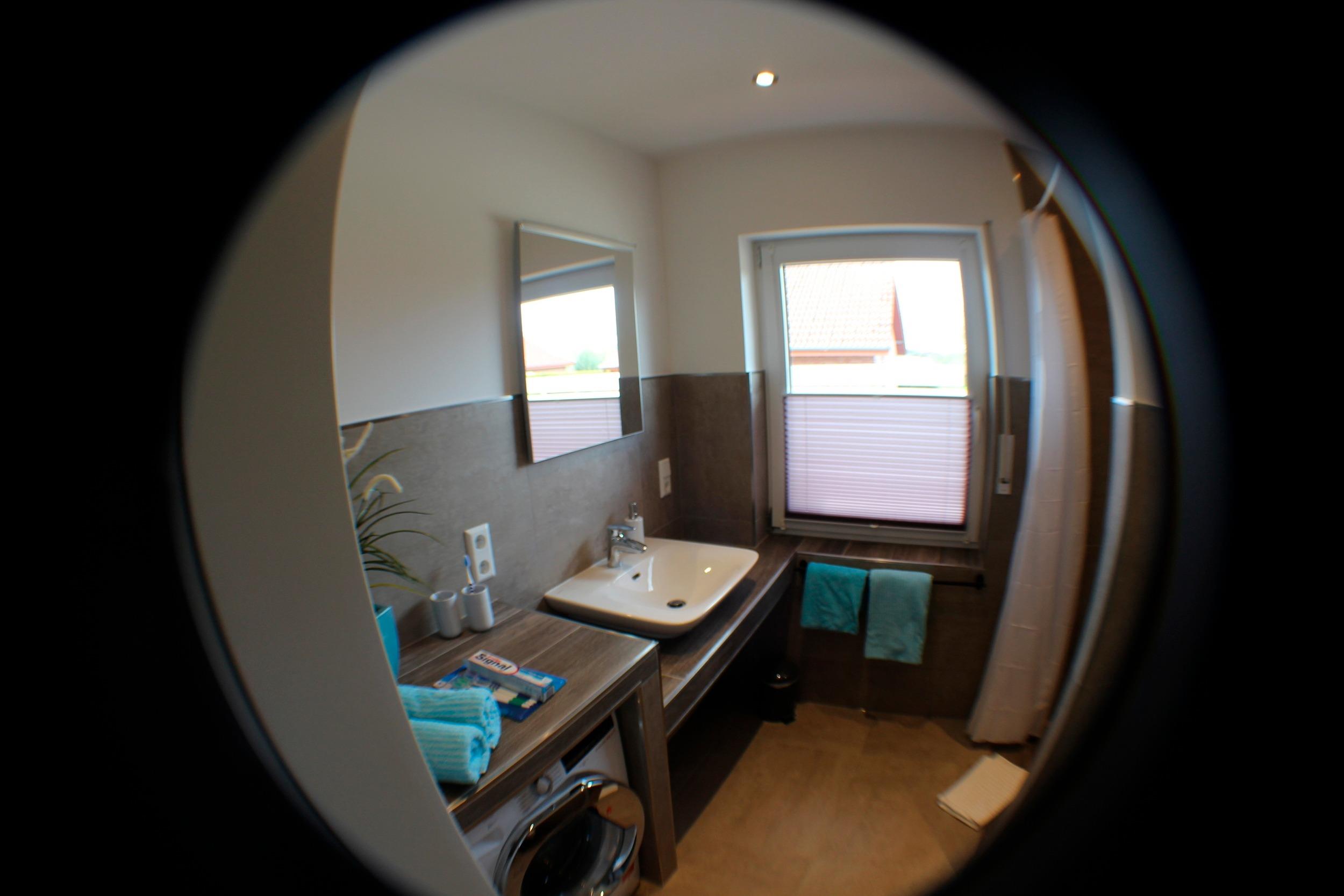 Alle Betten sind mit Federbetten und Bettwäsche für Sie hergerichtet. Oben steht ein frisch renoviertes Bad mit WC, Dusche und Waschbecken für Sie bereit. Das neue Bad im Erdgeschoss ist mit Fußbodenheizung, frei begehbarer Dusche, WC und Waschplatz eingerichtet. Außerdem steht eine Waschmaschine zur freien Nutzung bereit. Bade- und Handtücher können auf Wunsch zugebucht werden.