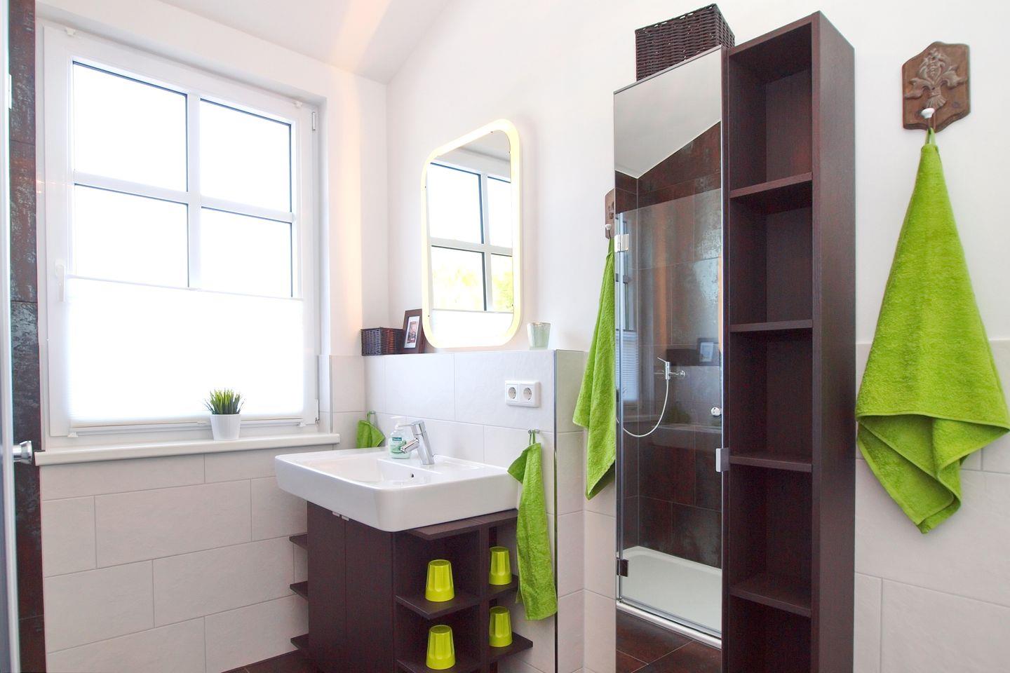 Im ersten Schlafzimmer steht dir ein komfortables Doppelbett mit Topper (180 cm x 200 cm) zur Verfügung. Der Kleiderschrank bietet ausreichend Stauraum für deine Sachen. Im zweiten Schlafzimmer gibt es ein Doppelbett (2 x 90 cm x 200 cm). In beiden Schlafzimmern befinden sich Flachbild-TVs. Natürlich gehört auch ein Tageslichtduschbad mit Dusche zur Wohnung.