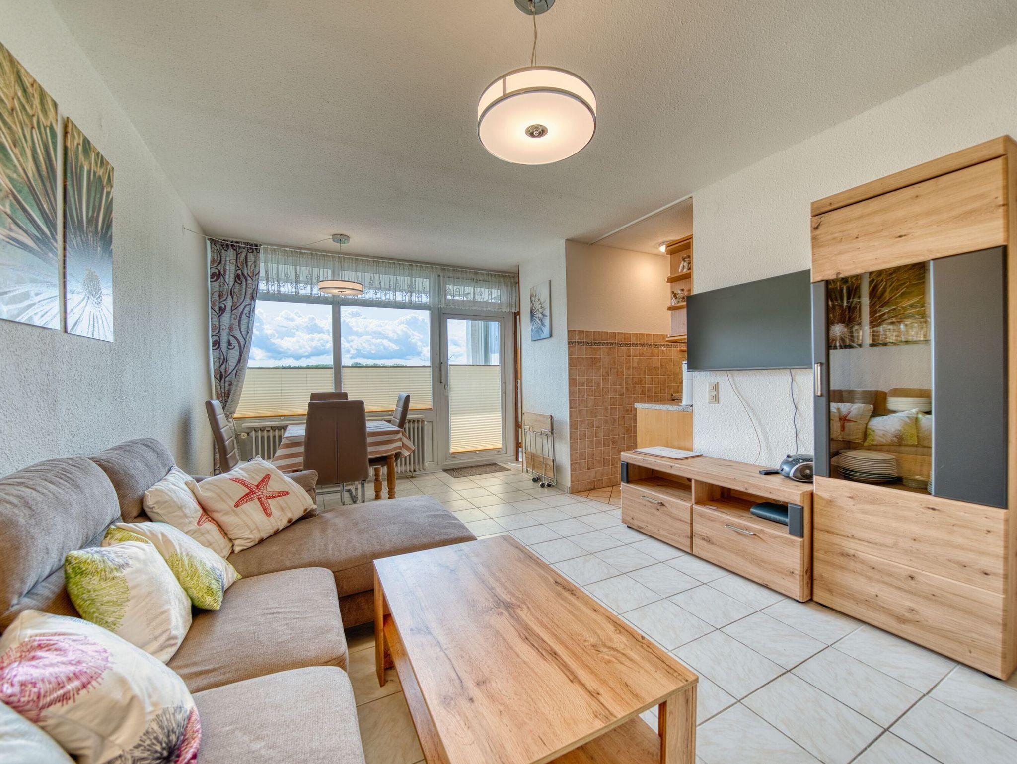 Moderne Ferienwohnung in Heiligenhafen mit Balkon und Blick auf den Binnensee, ideal für Familien und Aktivurlauber.