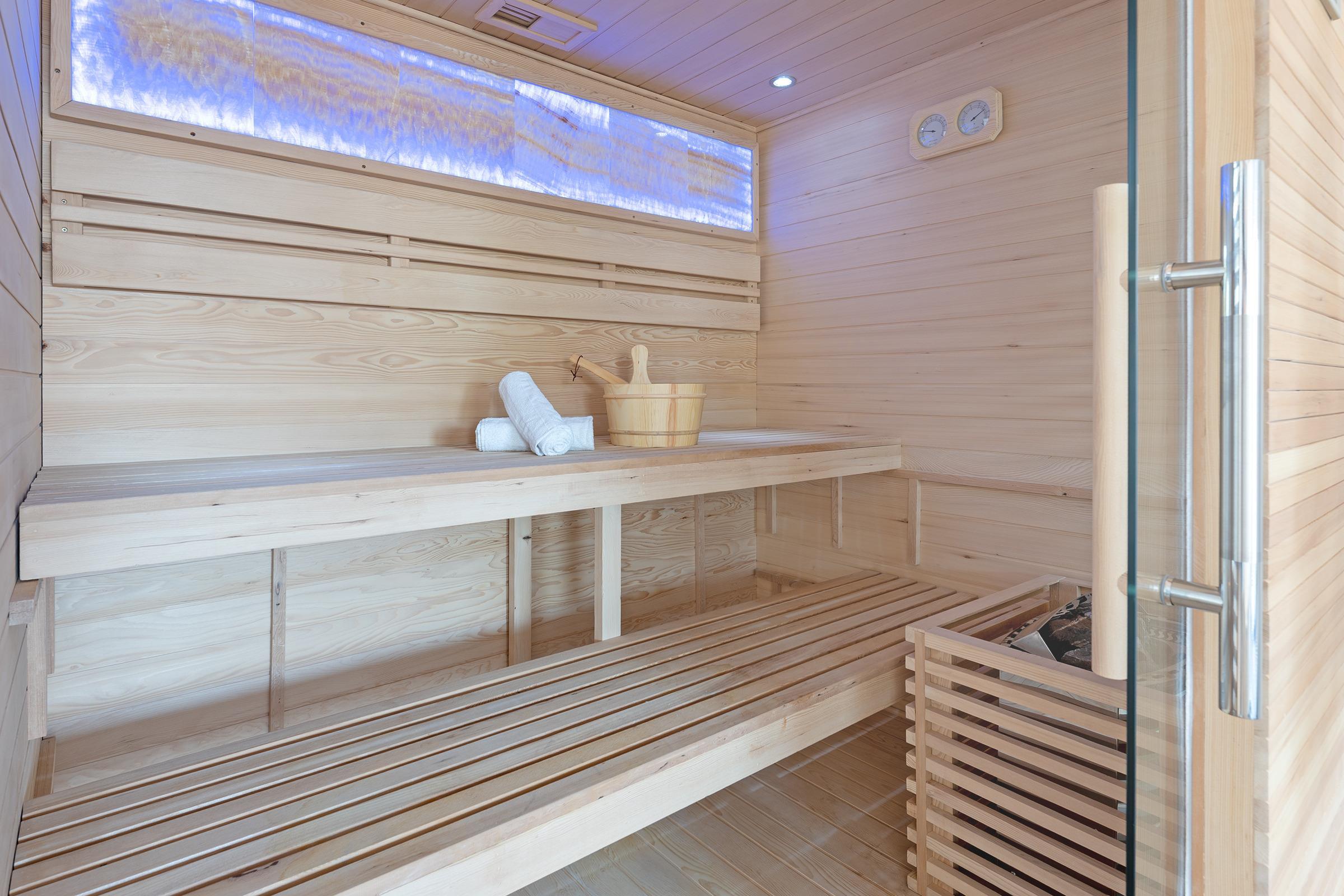 Das Herzstück der Wohnung bildet der gemütliche Wohnbereich mit Sofa, TV und direktem Zugang zur Dachterrasse. Die großen Fenster lassen viel Licht herein und bieten eine tolle Aussicht. Ein besonderes Highlight ist die Sauna im Wohnbereich. Die Terrasse ist mit Gartenmöbeln und einem Gasgrill versehen – perfekt für entspannte Grillabende. Die offene Küche ist mit einem Induktionsherd, Backofen, Spülmaschine, Kaffeevollautomat, Mikrowelle und weiteren modernen Geräten ausgestattet. Der große Esstisch lädt zum gemeinsamen Essen und geselligen Abenden ein. Zwei Schlafzimmer und das Wohnzimmer bieten Platz für bis zu 6 Personen. Ein Zimmer ist mit einem Doppelbett (180x200 cm) ausgestattet, während das zweite über zwei Einzelbetten (je 90x200 cm) verfügt. Im Wohnzimmer erwartet Sie ein großzügiges Schlafsofa (250x200 cm). Zwei Babybetten und zwei Kinderhochstühle stehen ebenfalls bereit. Das Badezimmer ist modern ausgestattet und verfügt über eine bodengleiche Dusche mit Haltegriff, eine Badewanne, ein Waschbecken und ein WC. Eine Waschmaschine und ein Trockner stehen Ihnen zur Verfügung.