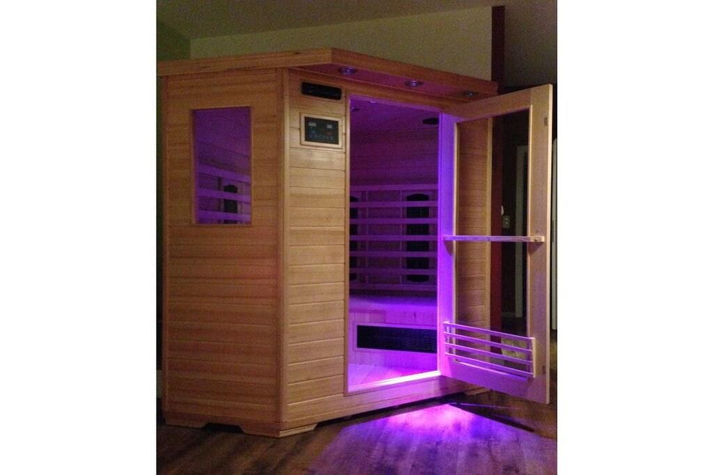 Parterre: (Eingangshalle(, ), Küche(, , , Kochnische, Esstisch, Kochplatte, Wasserkocher, Toaster, Kaffeemaschine, Mikrowelle, Spülmaschine, Kühlschrank, Tiefkühlschrank, Fliegenfenster), Wohn/Esszimmer(, , , , , , Bibliothek, Schlafcouch 1 Pers., TV, Esstisch, DVD-Spieler, DVD-Spieler, Video, Radio, CD-Spieler, Stereoanlage, Fliegenfenster)) In der 1. Etage: (Schlafzimmer(, , , , , Schrankbett 1 Person, Doppelbett, TV, TV, Fliegenfenster), Galerieschlafzimmer(), Badezimmer(, , Toilette, Dusche, Waschbecken, Bidet, Föhn), Ruheraum(, , , , , Hütte, Sauna, Radio, CD-Spieler, Wasserkocher, Badewanne, Dusche, Waschbecken, Föhn)) , , , , , Abstellraum, Internet, Erste-Hilfe-Station, Balkon(, Gartenmöbel, Liegen), Heizung, Garten(Zentraler Grill, Liegewiese, Gartenmöbel, Liegen), Parkplatz, Bügelbrett, Bügeleisen, Trockenschrank