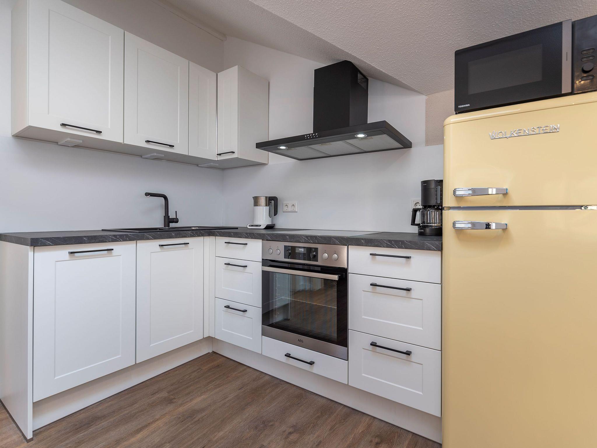 • offene, voll ausgestattete Küchenzeile