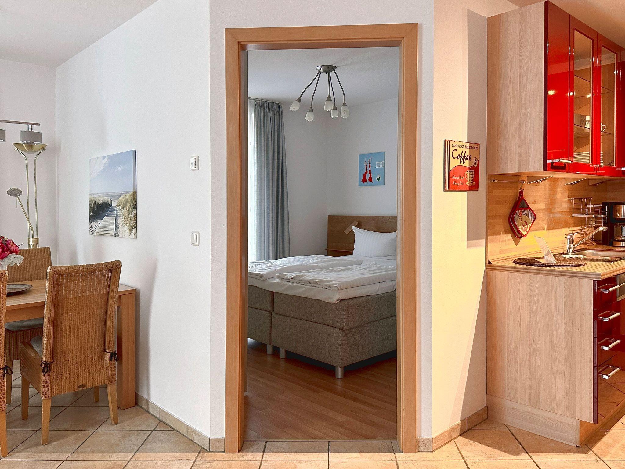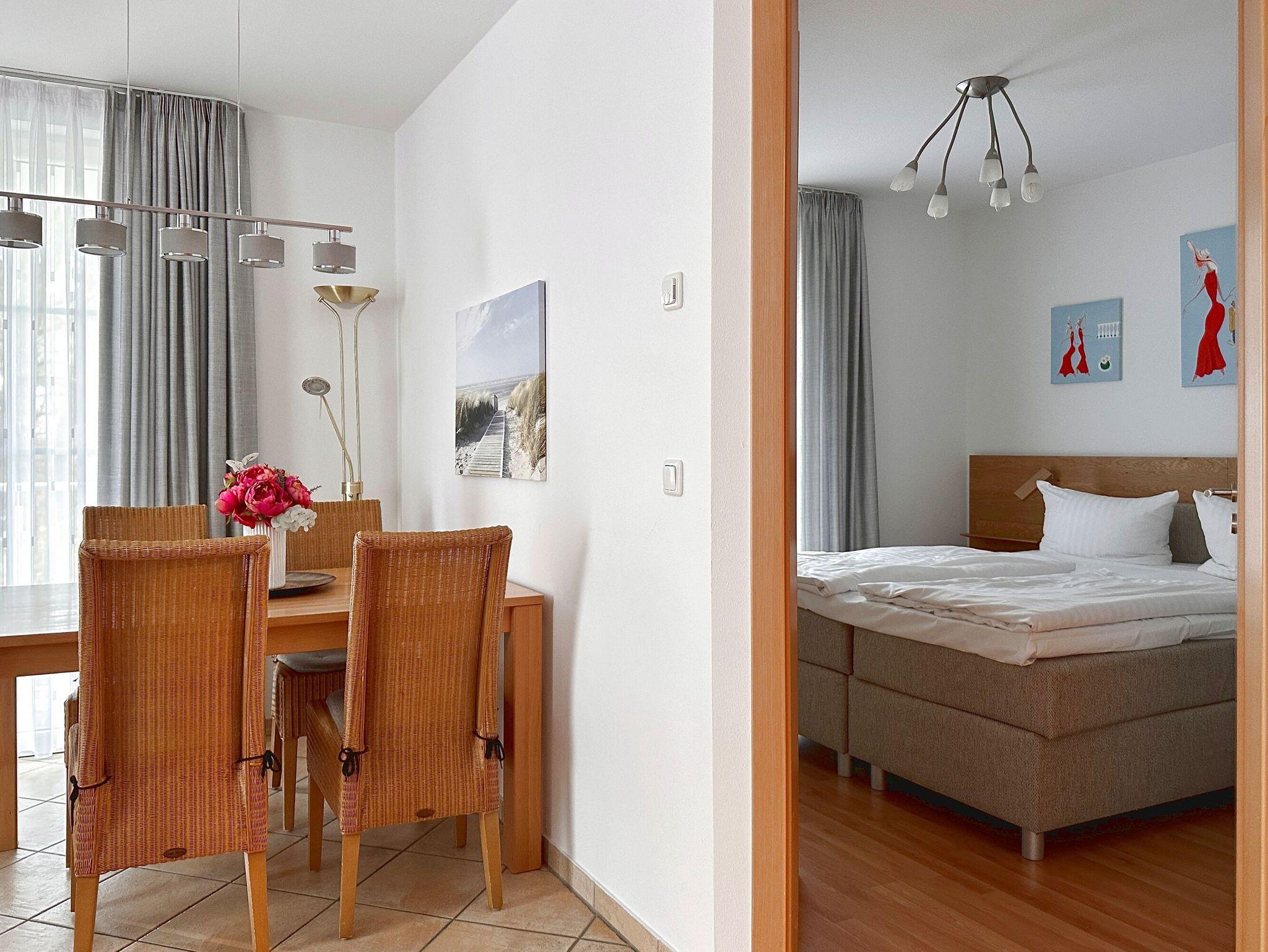 Das 3-Zimmer-Appartement zur Meerseite befindet sich in Hochparterre der Residenz und bietet mit seinen 67 Quadratmetern viel Platz für die ganze Familie mit bis zu 4 Personen.