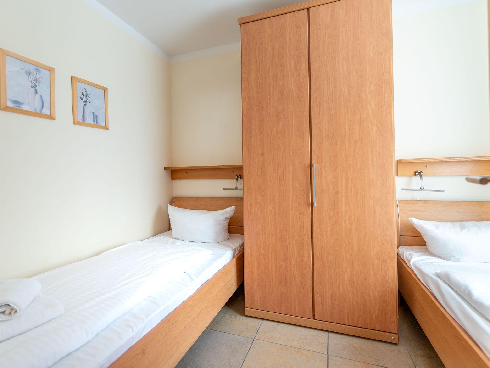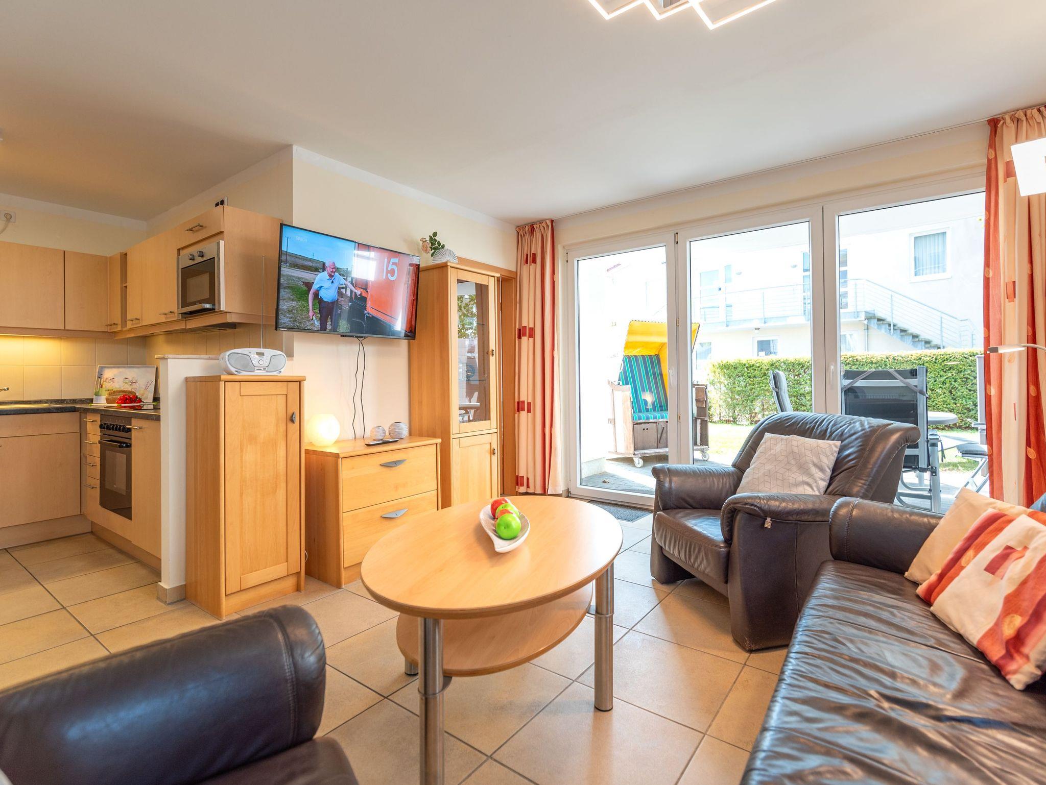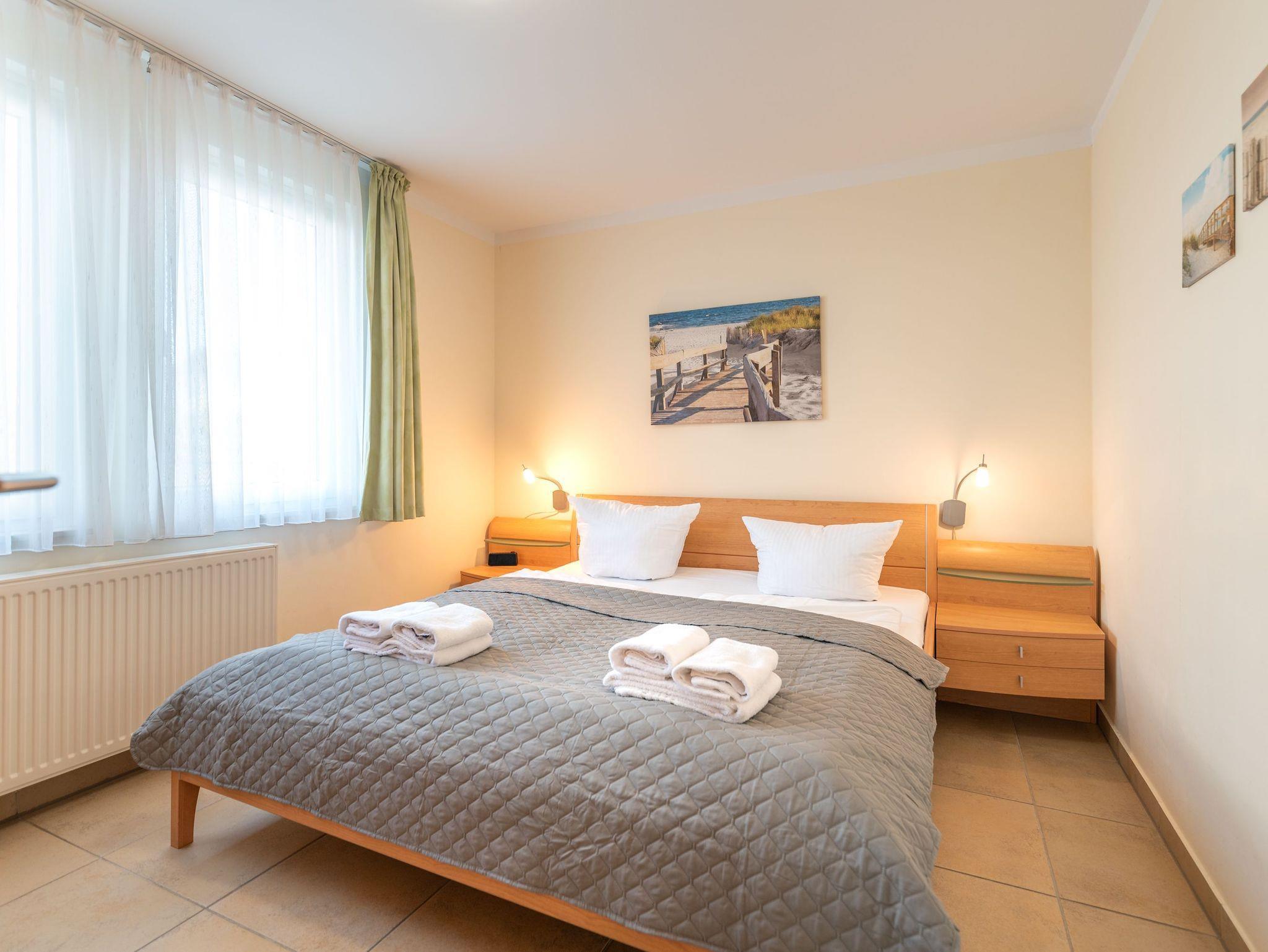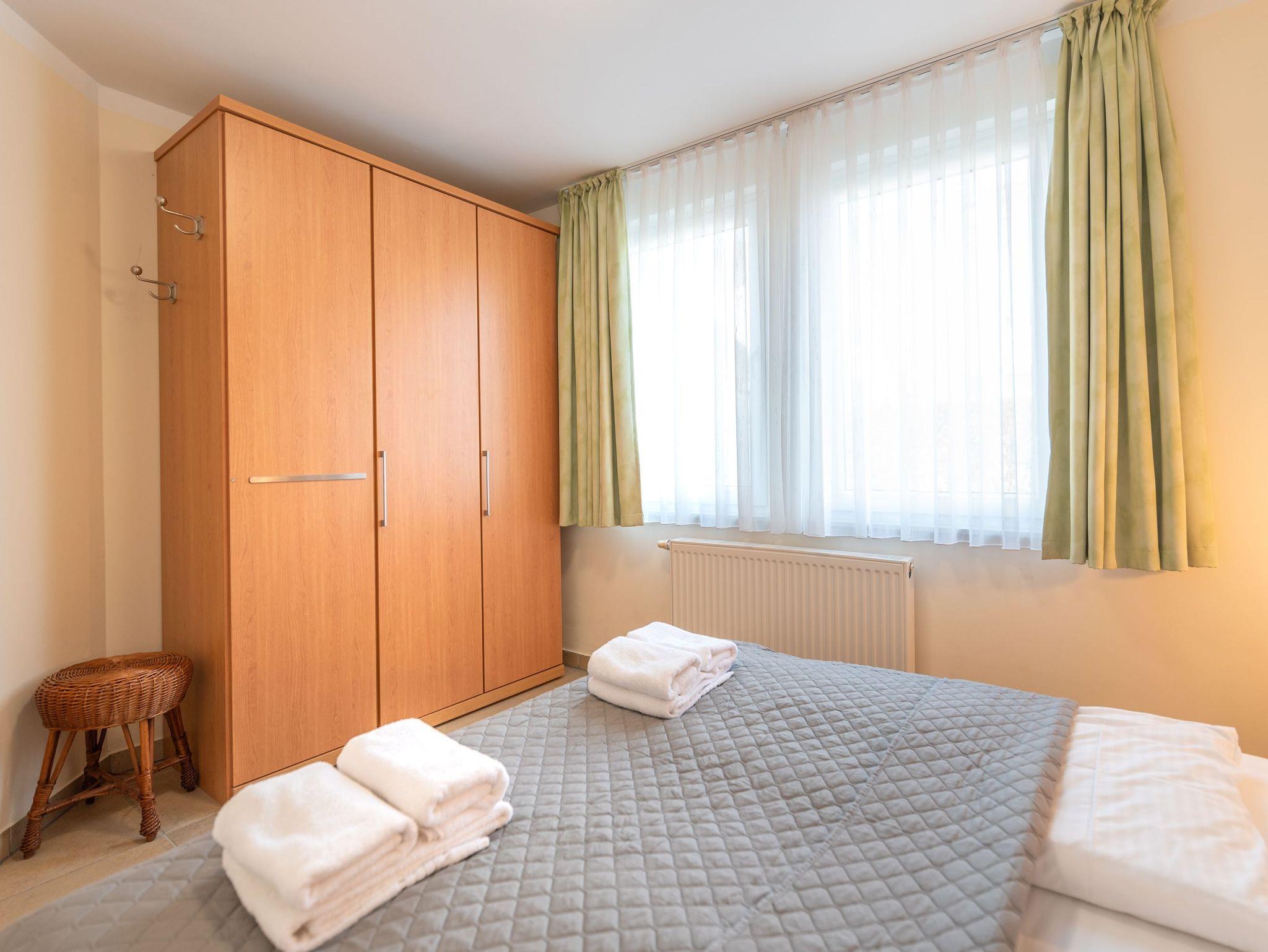 Die Ferienwohnung verfügt über ein gemütliches Schlafzimmer mit Doppelbett und ein weiteres Schlafzimmer mit zwei getrennt stehenden Betten. Das Wohnzimmer ist mit einer komfortablen Ledersitzgarnitur, einem Esstisch mit vier Stühlen sowie einem Flachbild-TV und einem CD-Radio ausgestattet. Die integrierte, voll ausgestattete Küchenzeile lässt keine Wünsche offen.