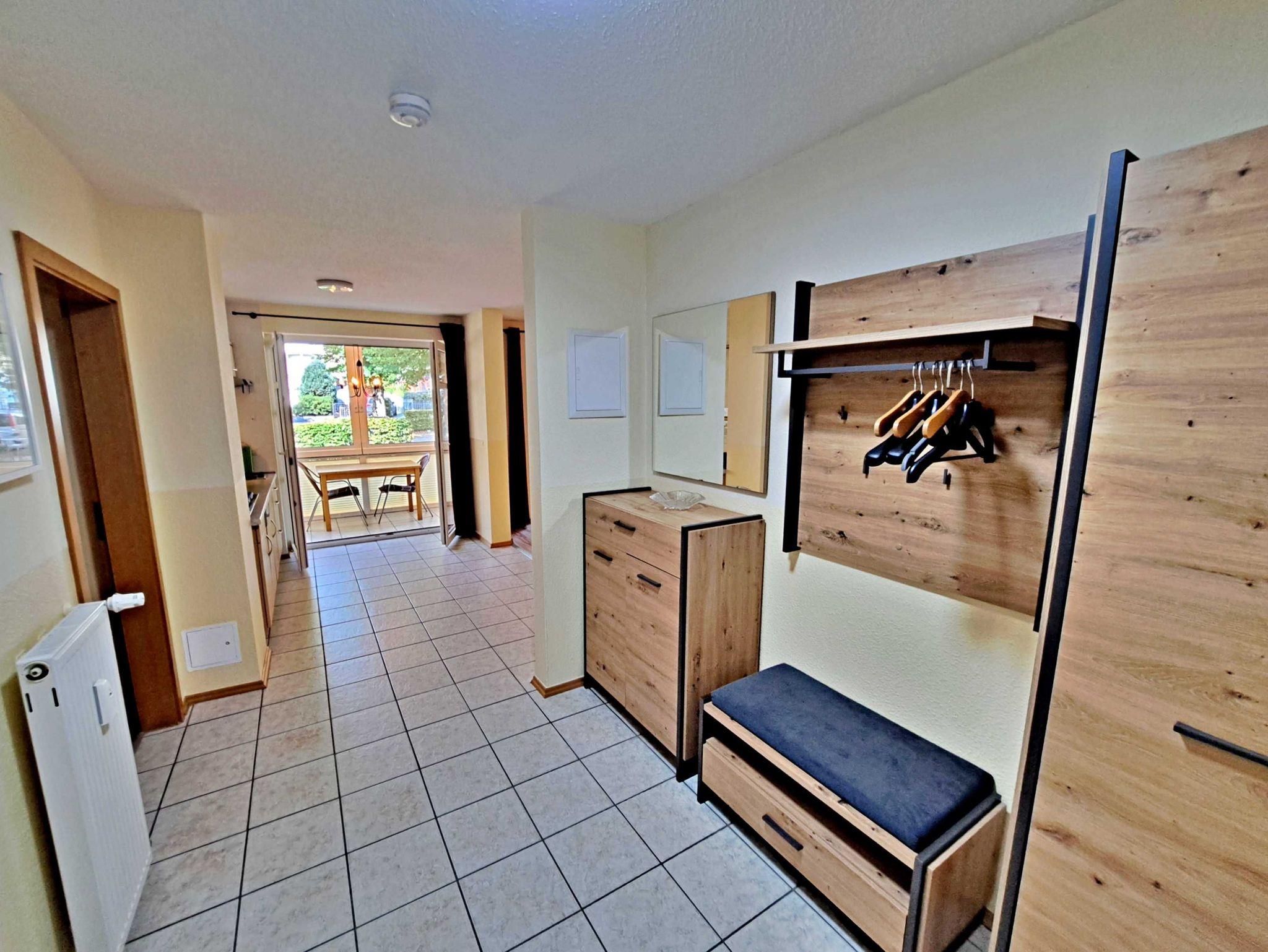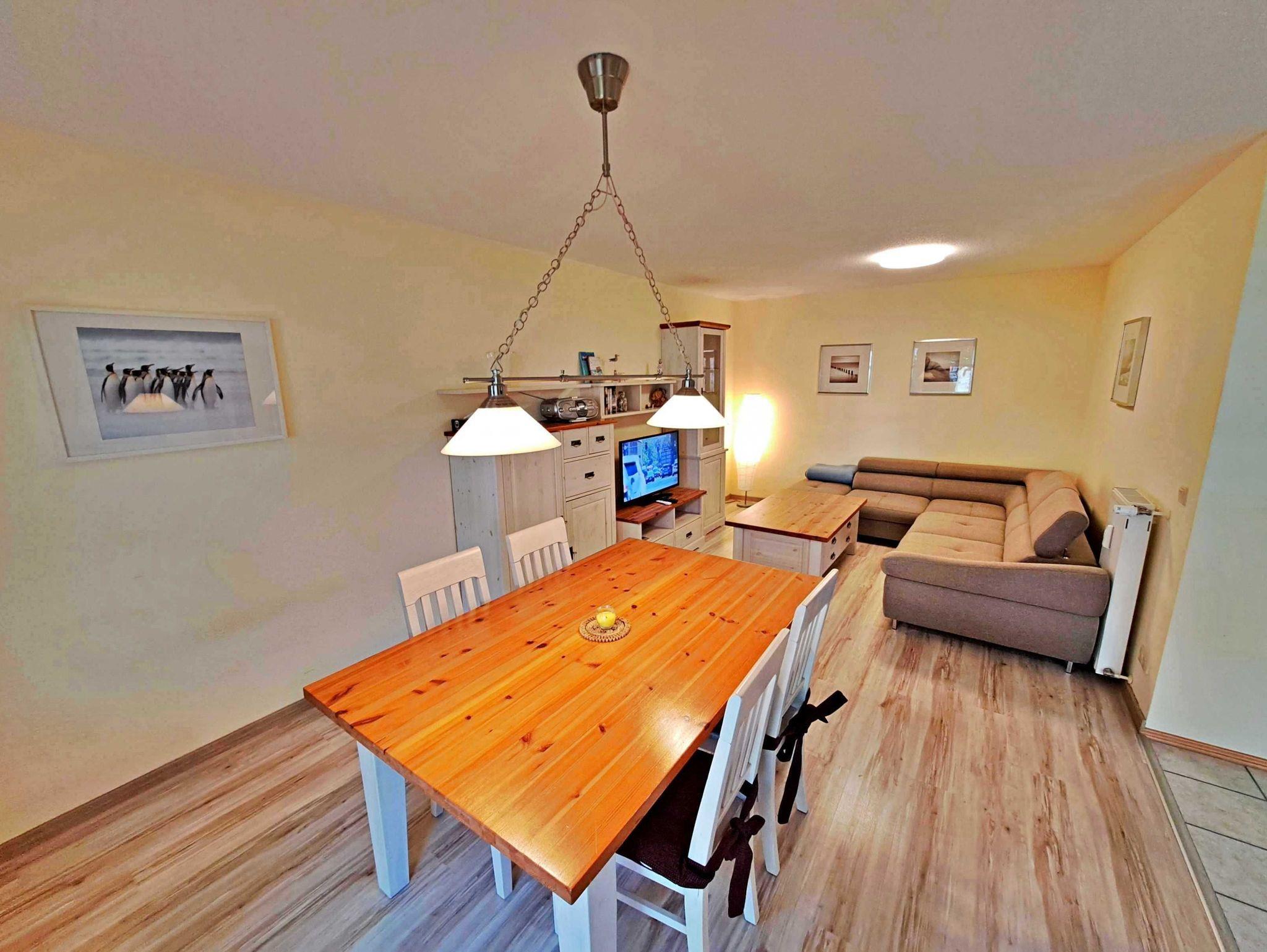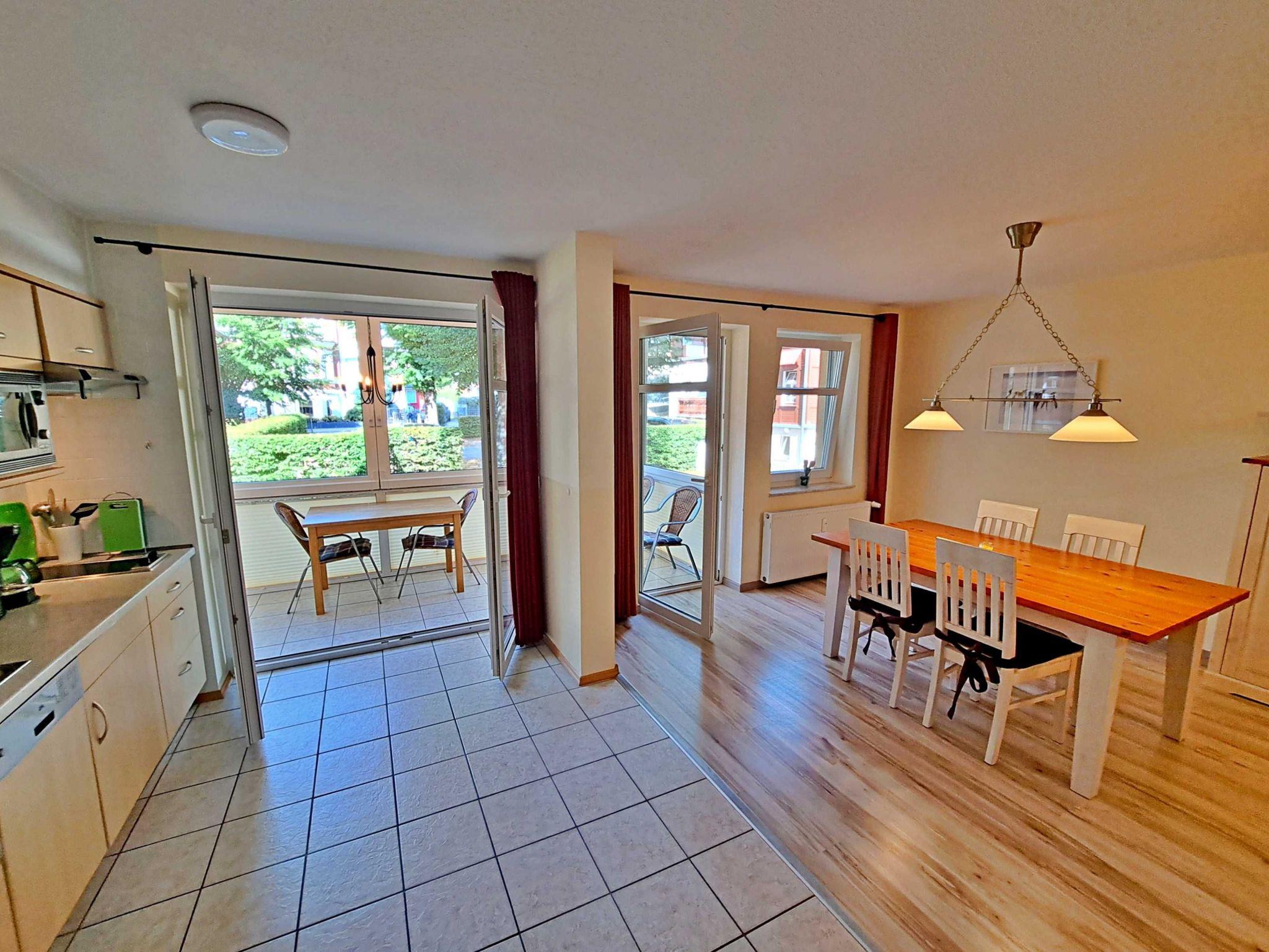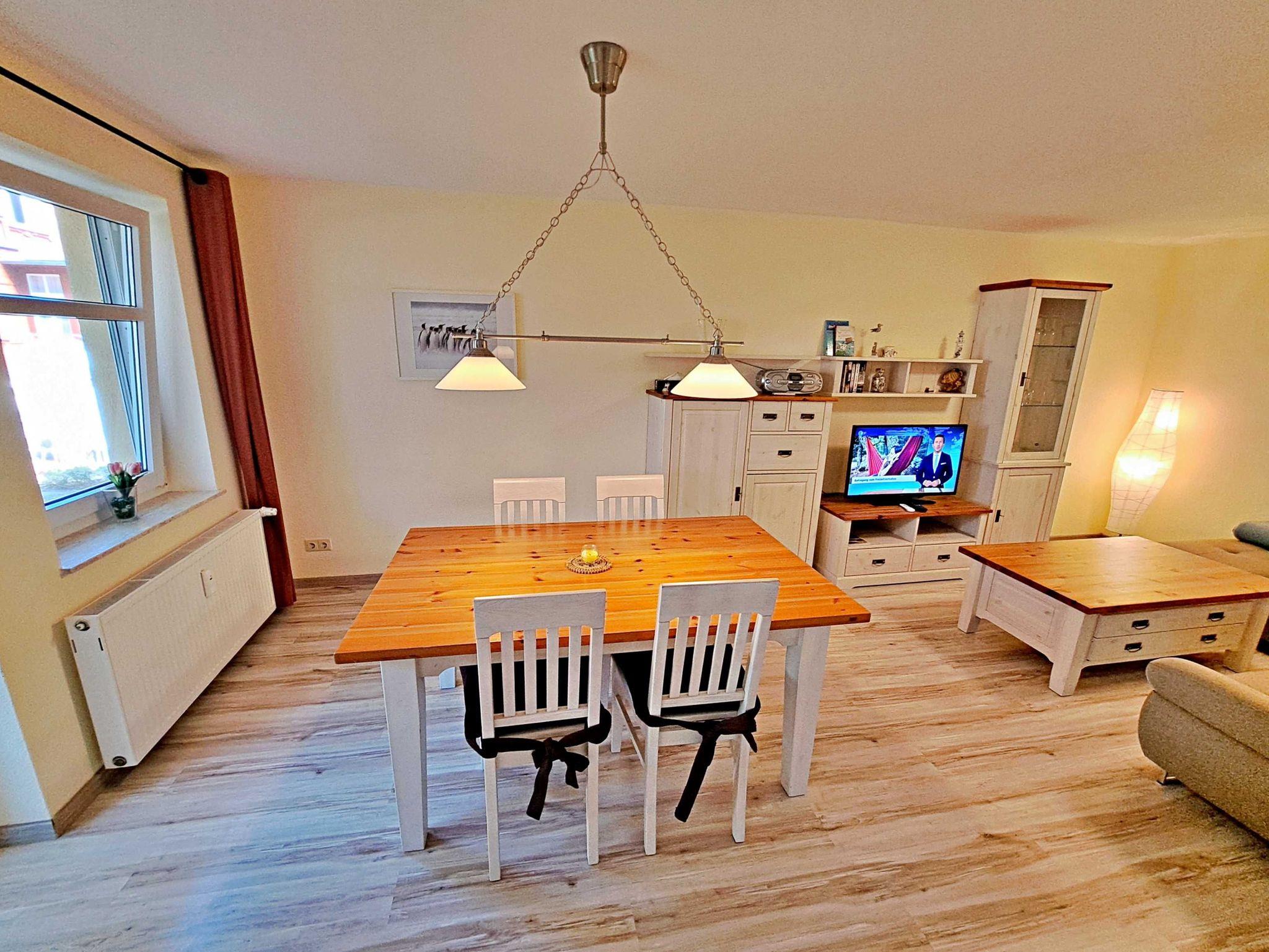 Diese komfortable 2-Raum-Ferienwohnung befindet sich im Haus Karavelle in Hochparterre. Von der Diele aus gelangen Sie in den großzügigen Wohnbereich mit Küchenzeile und Esstisch mit 4 Stühlen. Die Küche ist mit einem 2 Plattenherd, Kühlschrank, Mikrowelle, Spüle und Geschirr ausgestattet. Im hell möblierten Wohnzimmer befindet sich außerdem eine Eckcouch, Flat TV und CD Player. Im angrenzenden Wintergarten können Sie das Frühstück genießen oder den Abend bei einem Glas Wein ausklingen lassen. Im Schlafzimmer finden Sie ein bequemes Doppelbett. Für Kleinkinder kann hier auch ein Kinderbett aufgestellt werden. Das Bad ist mit Dusche/WC ausgestattet.