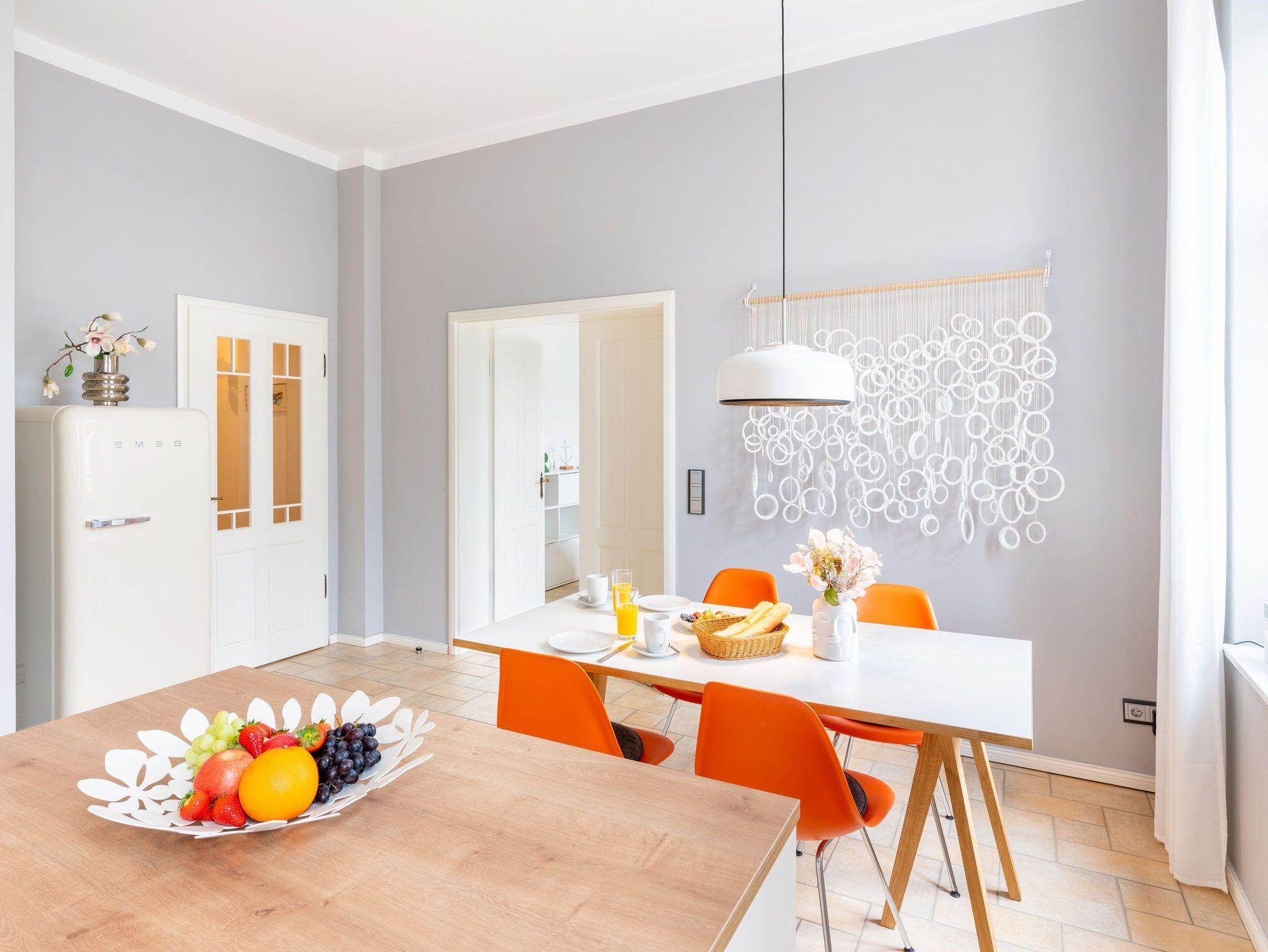 Zur Wohnung gehört außerdem ein Außenstellplatz. Das WLAN ist kostenfrei. Wenn Sie ankommen, sind die Betten bezogen und Handtücher liegen bereit. Diese schöne Altbauwohnung bietet eine Deckenhöhe von 3,50m. Vor der Villa befinden sich ausreichend Fahrradstellplätze.