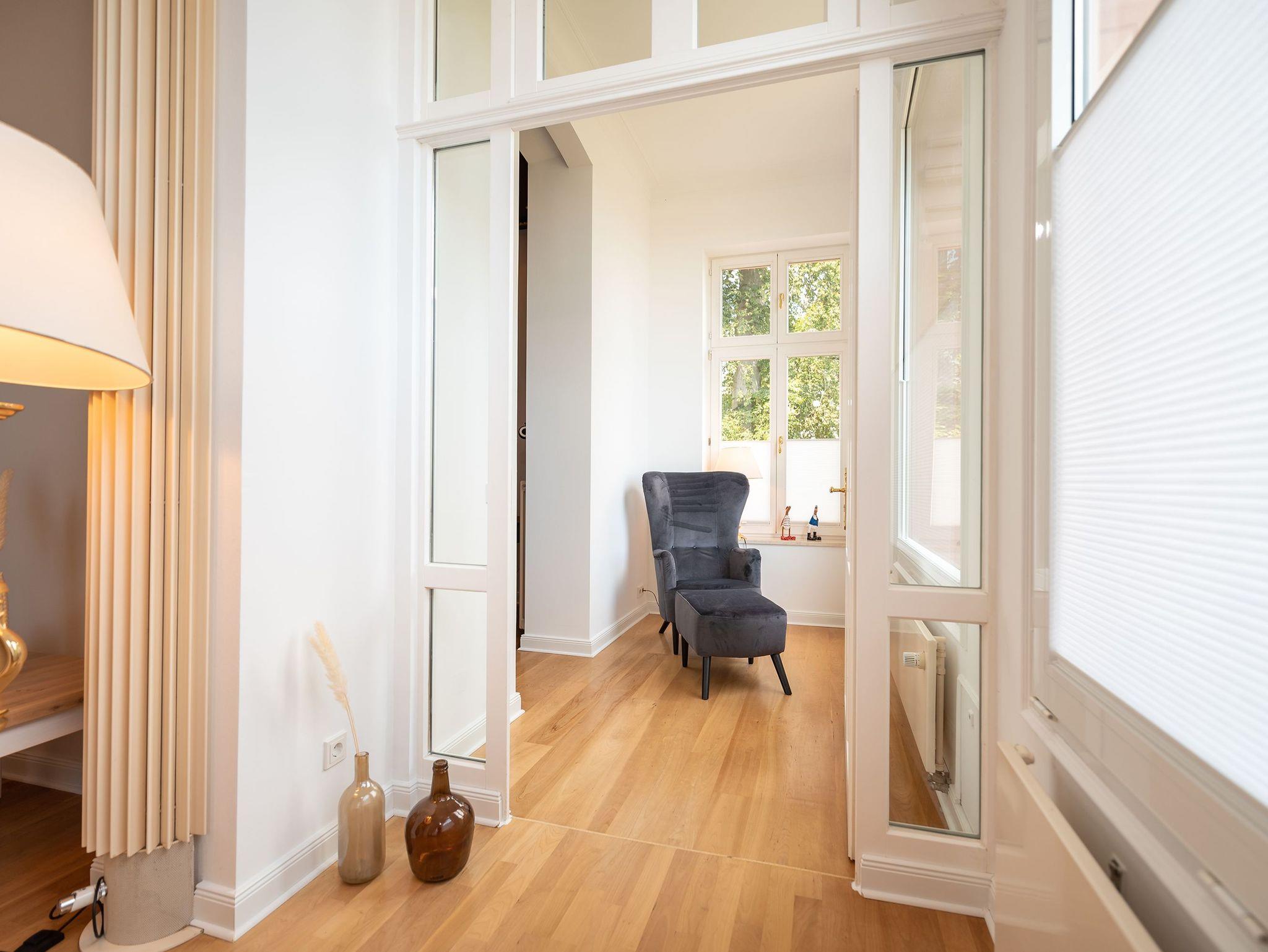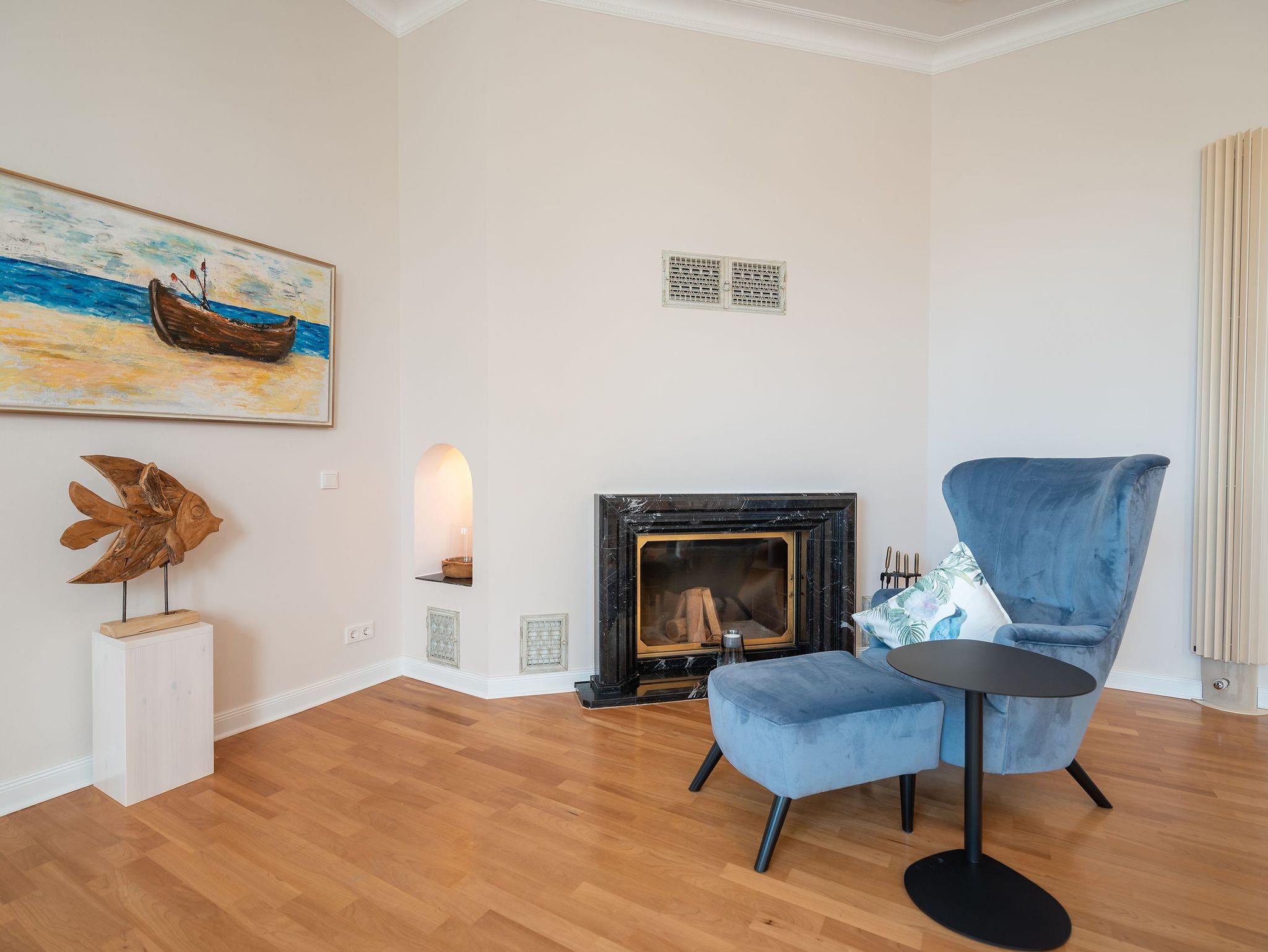 Elegantes Appartement in denkmalgeschützter Villa mit Kamin, moderner Küche und eigenem Strandkorb an der Ostsee.