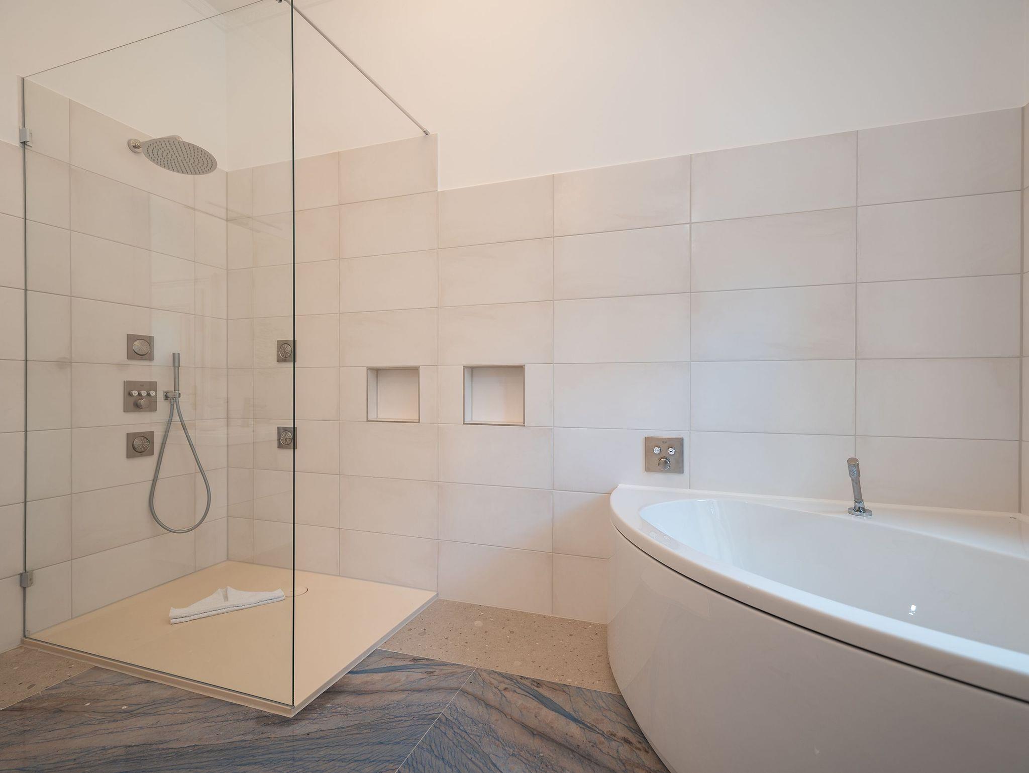 • 1 Badezimmer mit Dusche und Badewanne