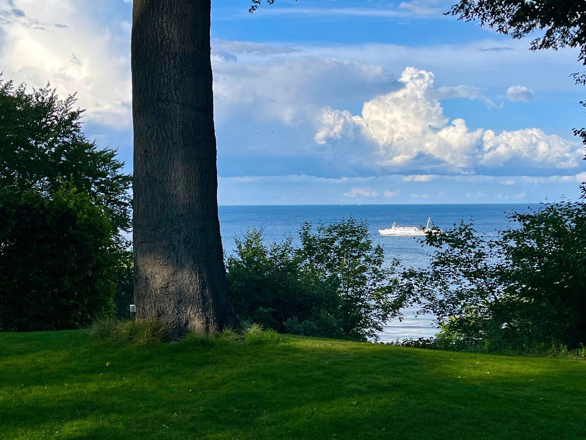 Durch die großen Fensterfassaden dieser ca. 85 qm großen Wohnung geht der Innen- in den Außenraum über und bietet Weite und Aufenthaltsqualität. Der Blick geht über den gepflegten Garten hin zur Ostsee und ist zu jeder Jahreszeit beeindruckend. Im Sommer das satte Grün der Bäume und das herrliche Blau des Meeres, mit Schiffen am Horizont, mit Möwengeschrei und dem vom Strand herauf wehenden Lachen der Badenden. Und bei all dem ist man ganz für sich und kann erholsam die Seele baumeln lassen. Als besonderes Ausstattungsmerkmal dieser Wohnung ist das Klavier hervorzuheben.