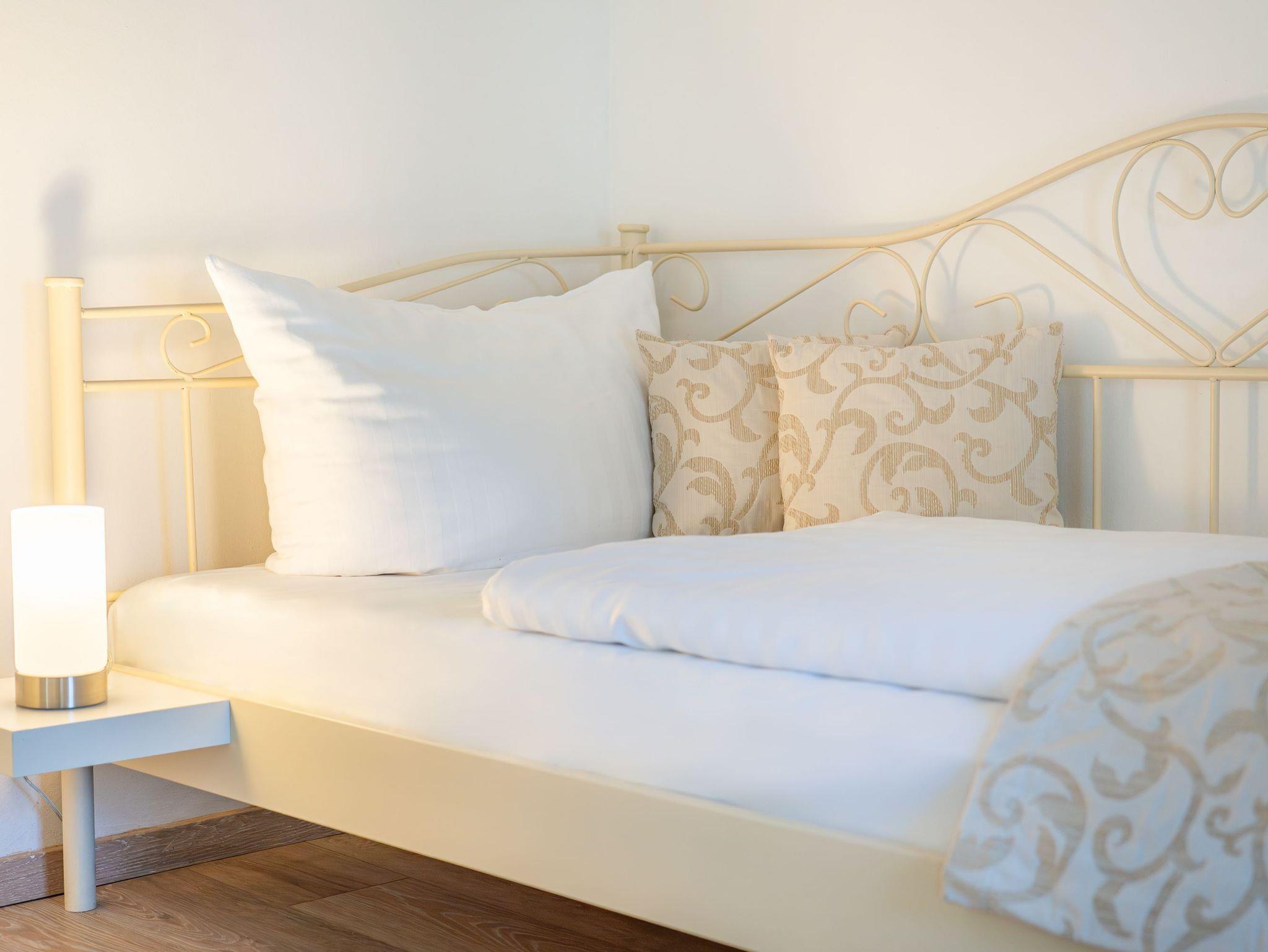 In den zwei separaten Schlafzimmern können Sie sich zur Nachtruhe oder zu einem Schlummerstündchen am Nachmittag zurückziehen. Lassen Sie den Urlaubstag in Ihren Träumen Revue passieren. Ein Schlafzimmer mit einem bequemen Doppelbett (160 x 200cm / durchgehende Matratze) und ein zweites mit einem gemütlichen Einzelbett (90 x 200cm) warten auf Sie. Das Badezimmer ist schmal gehalten ? mit WC, Dusche und einem Haartrockner können Sie erfrischt in den neuen Urlaubstag starten. Damit Sie Ihre wohlverdiente Urlaubszeit bereits am Anreisetag in vollen Zügen genießen können,? haben wir das Bett für Sie und das für Ihre lieben Mitreisenden bereits bezogen und ein Duschtuch sowie ein kleines Handtuch bereitgelegt.