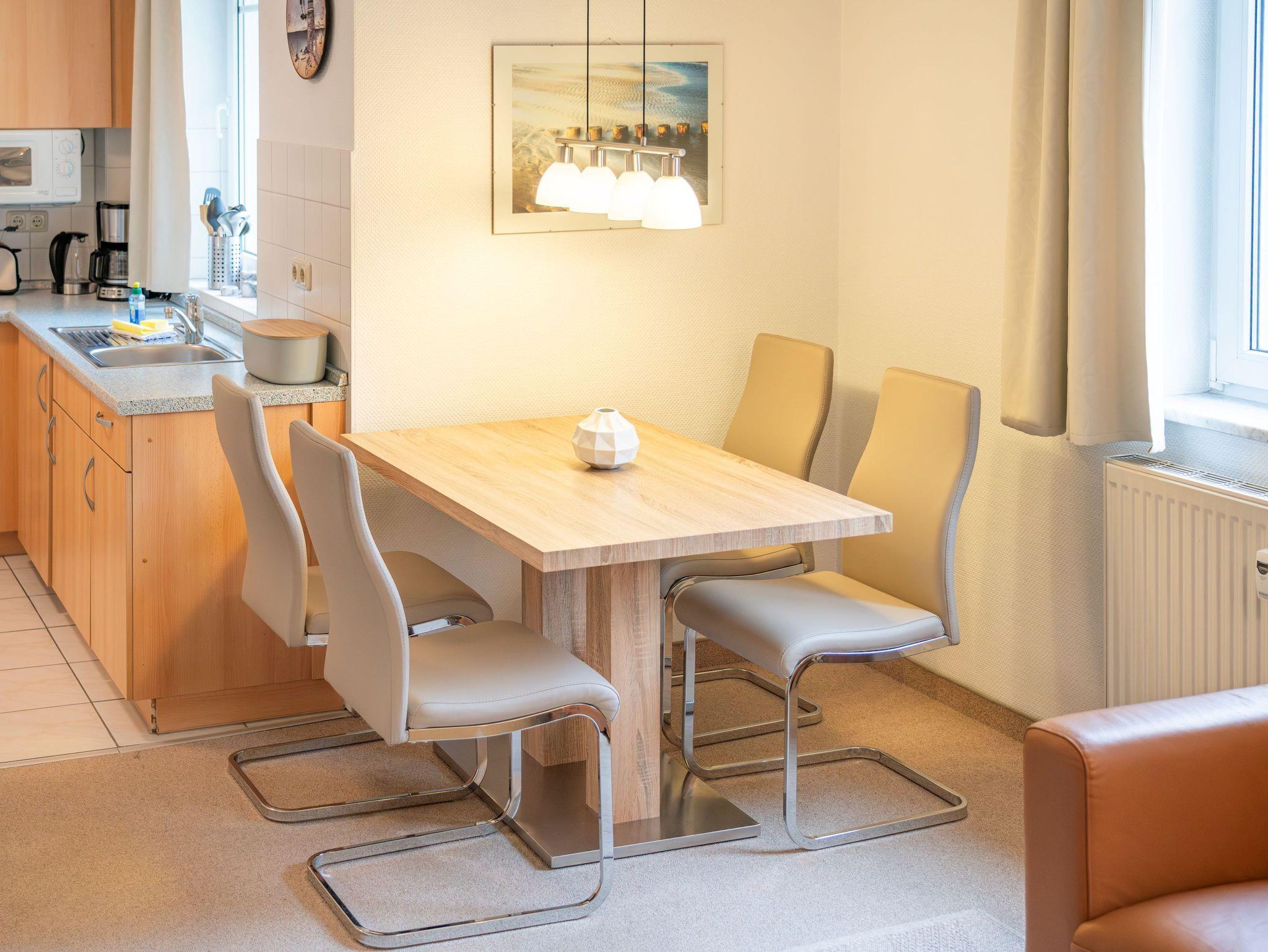 Die 2 Raumwohnung mit 45 qm befindet sich im 2.Obergeschoss des Hauses. Sie verfügt über einen Schlafraum mit Doppelbett und einem zusätzlichen Flat-TV sowie einem kombiniertem Wohn-/Schlafraum mit einer Doppelbettcouch. Ebenfalls zur Wohnung gehört ein möblierter Balkon. Zur weiteren Ausstattung gehören FLAT-TV, Radio, komplette Küchenzeile mit Kühlschrank, Kaffeemaschine, Mikrowelle, Herd (kein Backofen) und vieles mehr. Das Badezimmer ist ausgestattet mit einem WC und einer Badewanne.