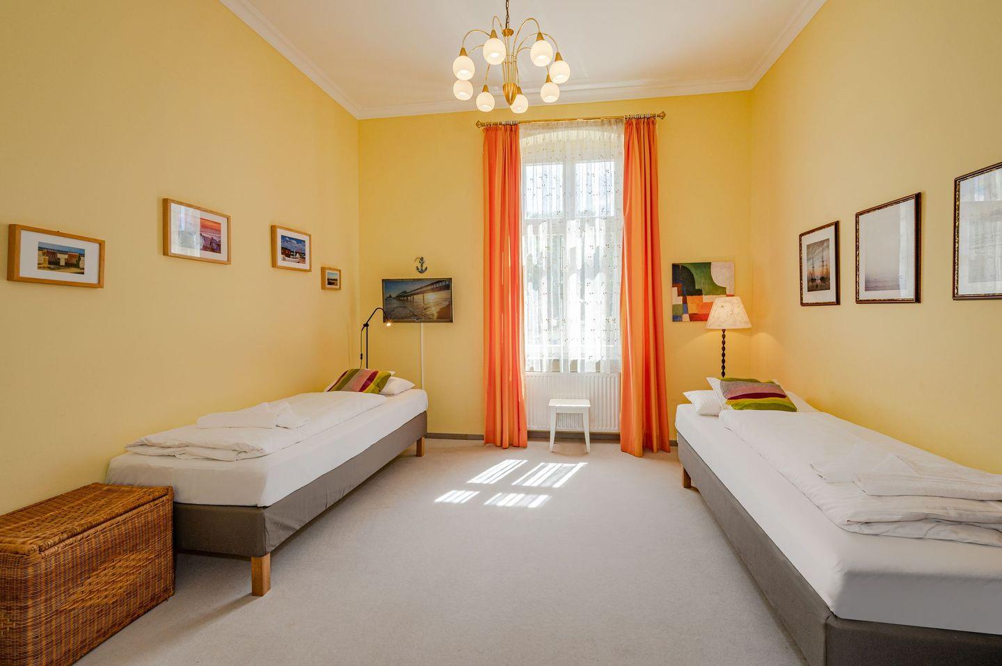 In der stillvollen Villa Elisabeth erwartet Sie in unmittelbarer Nähe zu Strand und Promenade Ihr Urlaubsdomizil. Das Appartement bietet auf 93 Quadratmetern und drei Räumen genügend Platz für bis zu vier Erwachsene und - idealerweise - zwei Kinder. Die Wohnung befindet sich in der ersten Etage des Hauses.