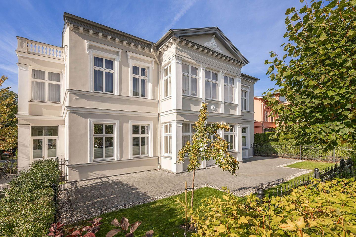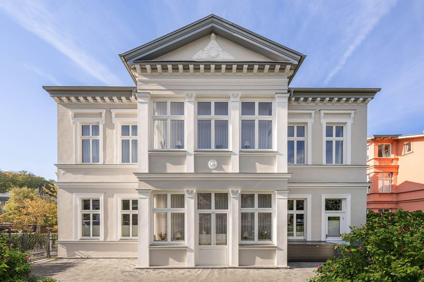 Residieren Sie in der Ferienwohnung Villa Luise 06 in Heringsdorf, einer Perle der historischen Villen im klassischen Stile der Bäderarchitektur. Um die Jahrhundertwende 1890 erbaut, erstrahlt sie nach umfangreicher Sanierung und Modernisierung seit 2021 in neuem Glanz. In einer ruhigen Seitenstraße des Ostseebades Heringsdorf gelegen, erreichen Sie sowohl den Strand als auch Einkaufsmöglichkeiten, einen Bäcker und den Bahnhof nach wenigen Schritten.