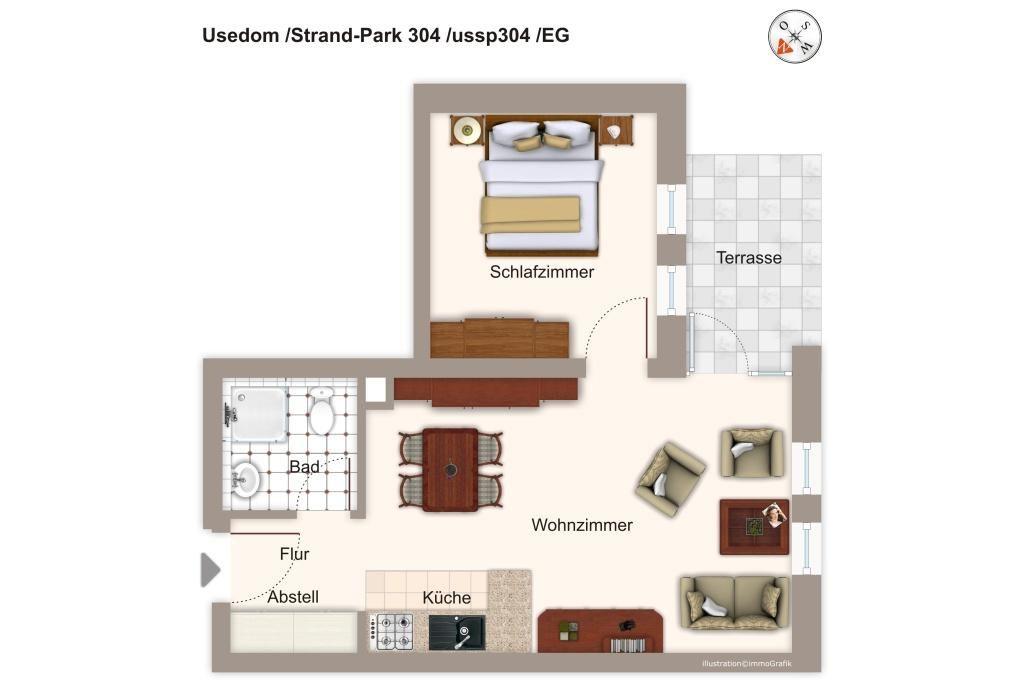 Das südwestlich gelegene Apartment befindet sich im Erdgeschoss von Haus 3 in der familienfreundlichen Ferienanlage „Strand-Park“ - inmitten des liebevoll angelegten Gartens und nur wenige Meter zum feinsandigen und kilometerlangen Strand von Heringsdorf gelegen.