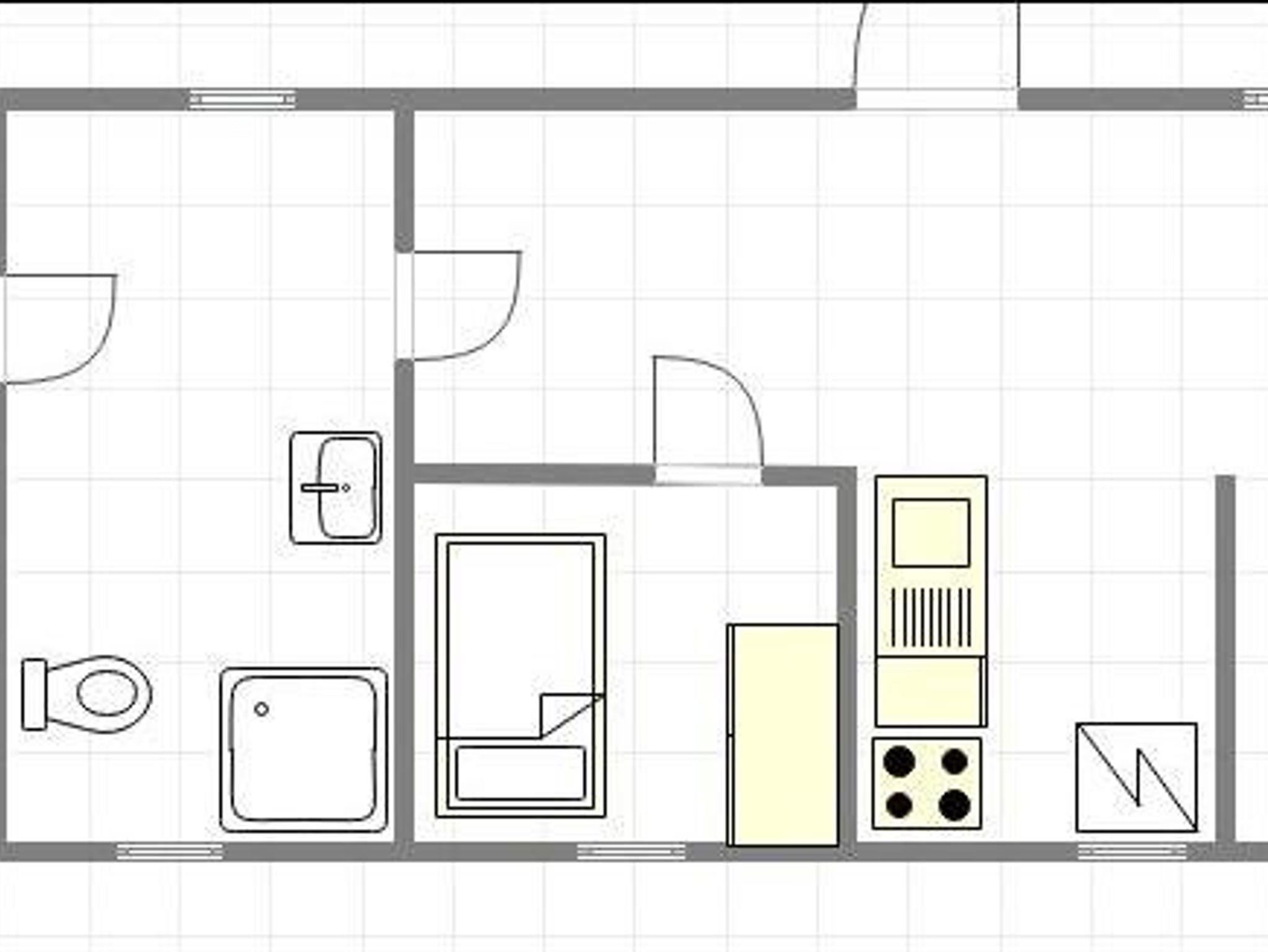 Im Wohnzimmer finden Sie eine kleine Küchenzeile und Essecke.