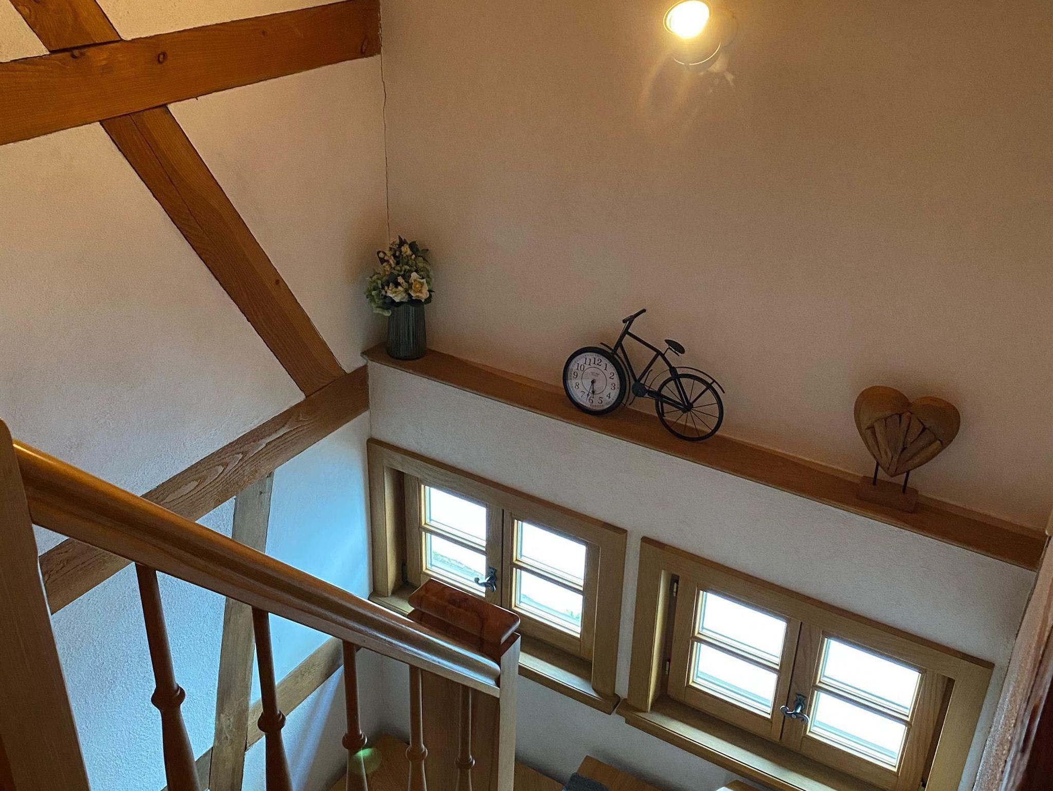 Unser Fachwerkhaus des ehemaligen Gutsanwesens mit den beiden neu renovierten Ferienwohnungen befindet sich im Ortskern des Weinortes Heuchelheim. Die Ferienwohnung Fuchsbau befindet sich im Erdgeschoss, das Atzelnest liegt darüber. Beide Wohnungen haben einen Balkon und liegen im hinteren und somit ruhigeren Teil des Hauses.Gegenüber den Wohnungen liegt jeweils ein weiteres Doppelzimmer mit einem separaten Bad, das bei Bedarf mitgenutzt werden kann.