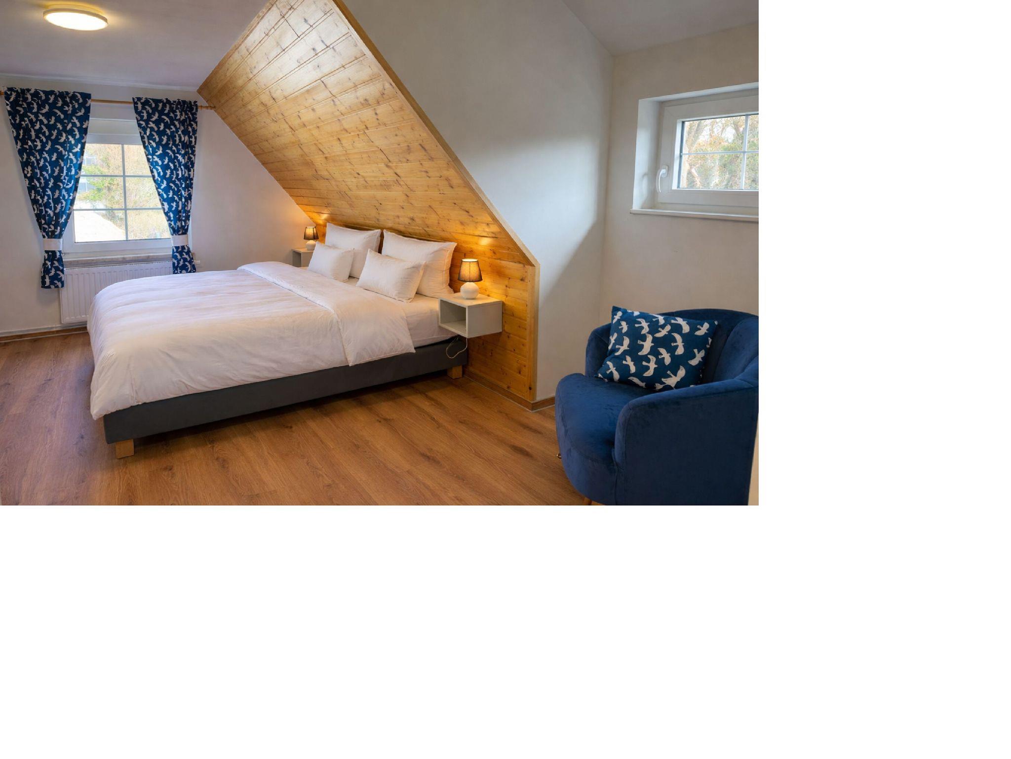 Entspannen Sie in einem gemütlichen Doppelzimmer nahe der Inselkirche in Hiddensee, ideal für Ruhe und Erkundung.