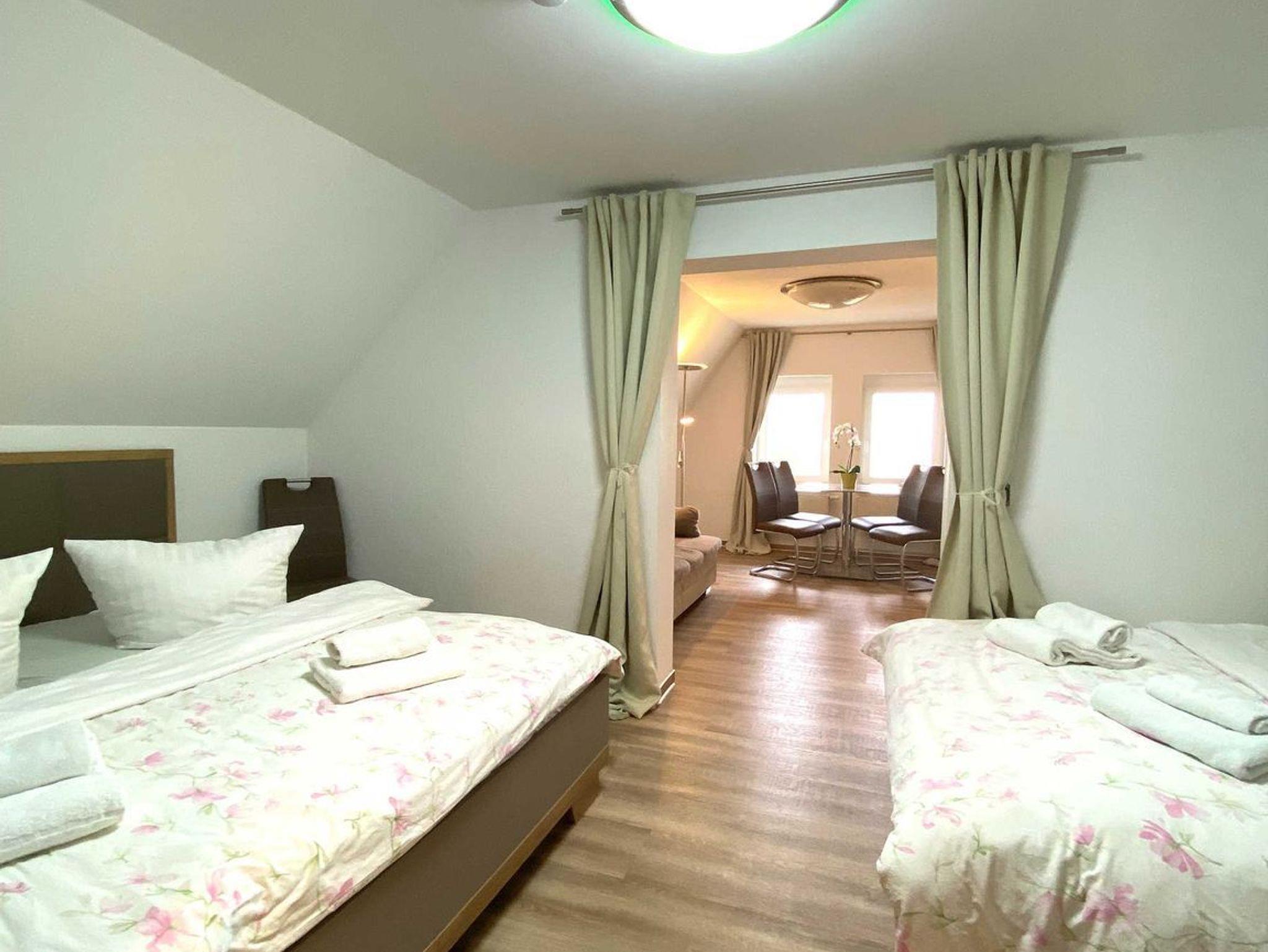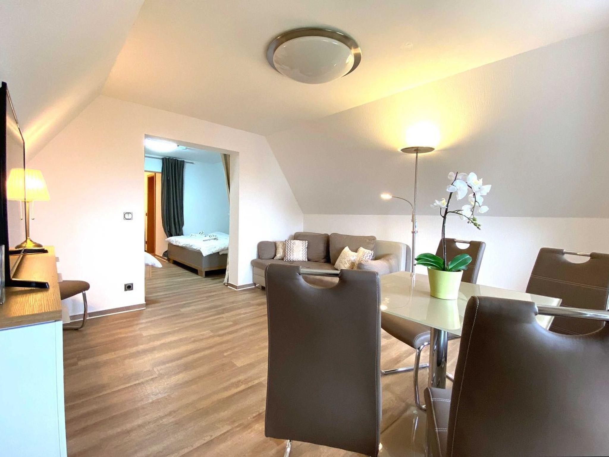 Das 2-Raum-Appartement im Dachgeschoss bietet mit seinen 35 Quadratmetern ausreichend Platz für bis zu 6 Personen.[nbsp] Das Wohnzimmer ist mit einem Esstisch, einem Flat-TV und einer bequemen Couch mit Ausziehfunktion ausgestattet.[nbsp] Das Schlafzimmer verfügt über zwei bequeme Doppelbetten so ist Ihnen ein erholsamer Schlaf garantiert.[nbsp] In der Pantryküche finden Sie alles für die Zubereitung Ihrer Lieblingsspeisen (Kühlschrank und 2 Platten, Wasserkocher, Toaster, Kaffeemaschine, Gläser, Besteck, Kochutensilien).[nbsp] Auch das Badezimmer lässt keine Wünsche offen, es ist mit Haartrockner und WC ausgestattet. Gönnen Sie nach einem ereignisreichen Tag ein entspanntes Bad in der Badewanne.