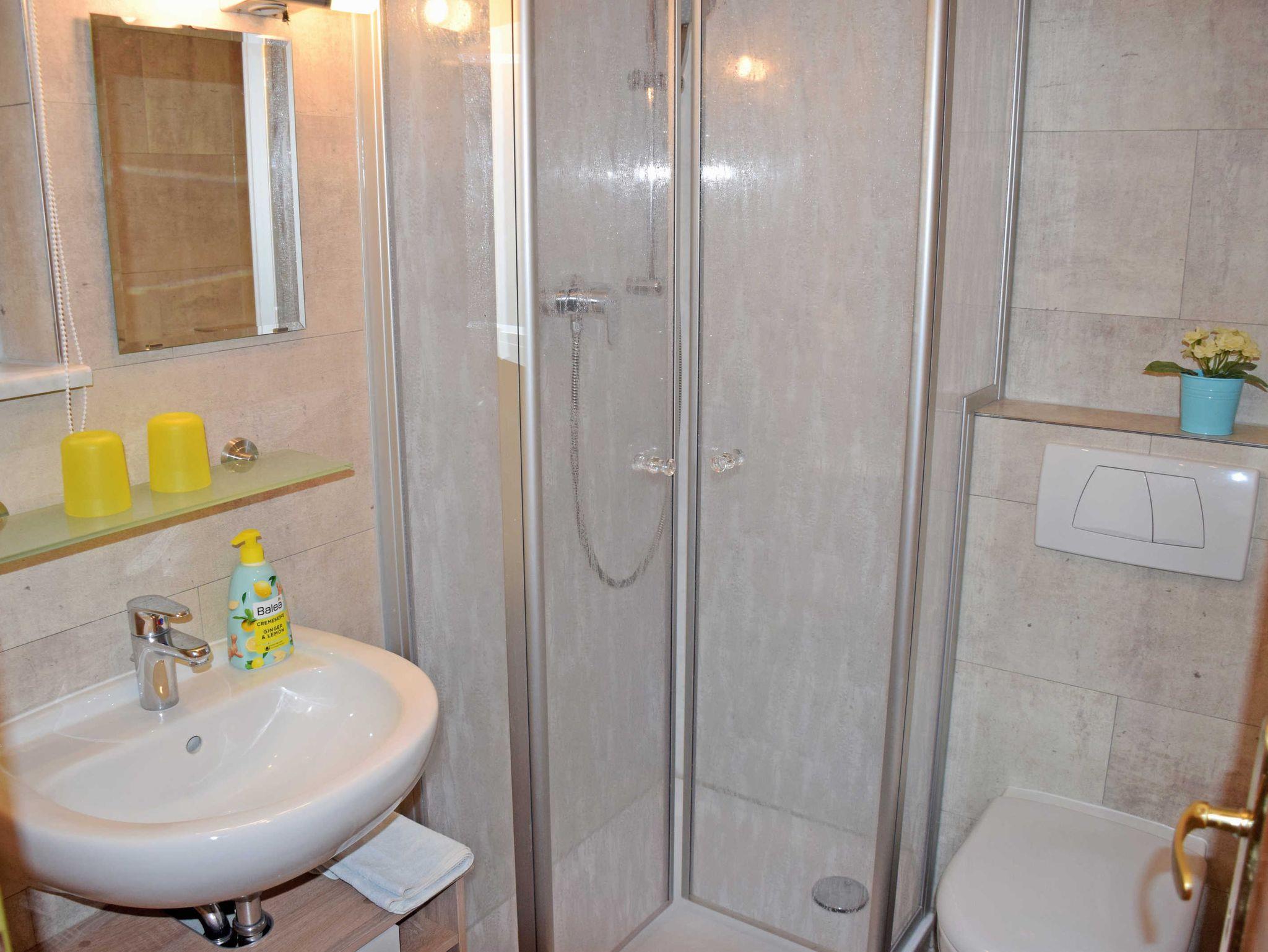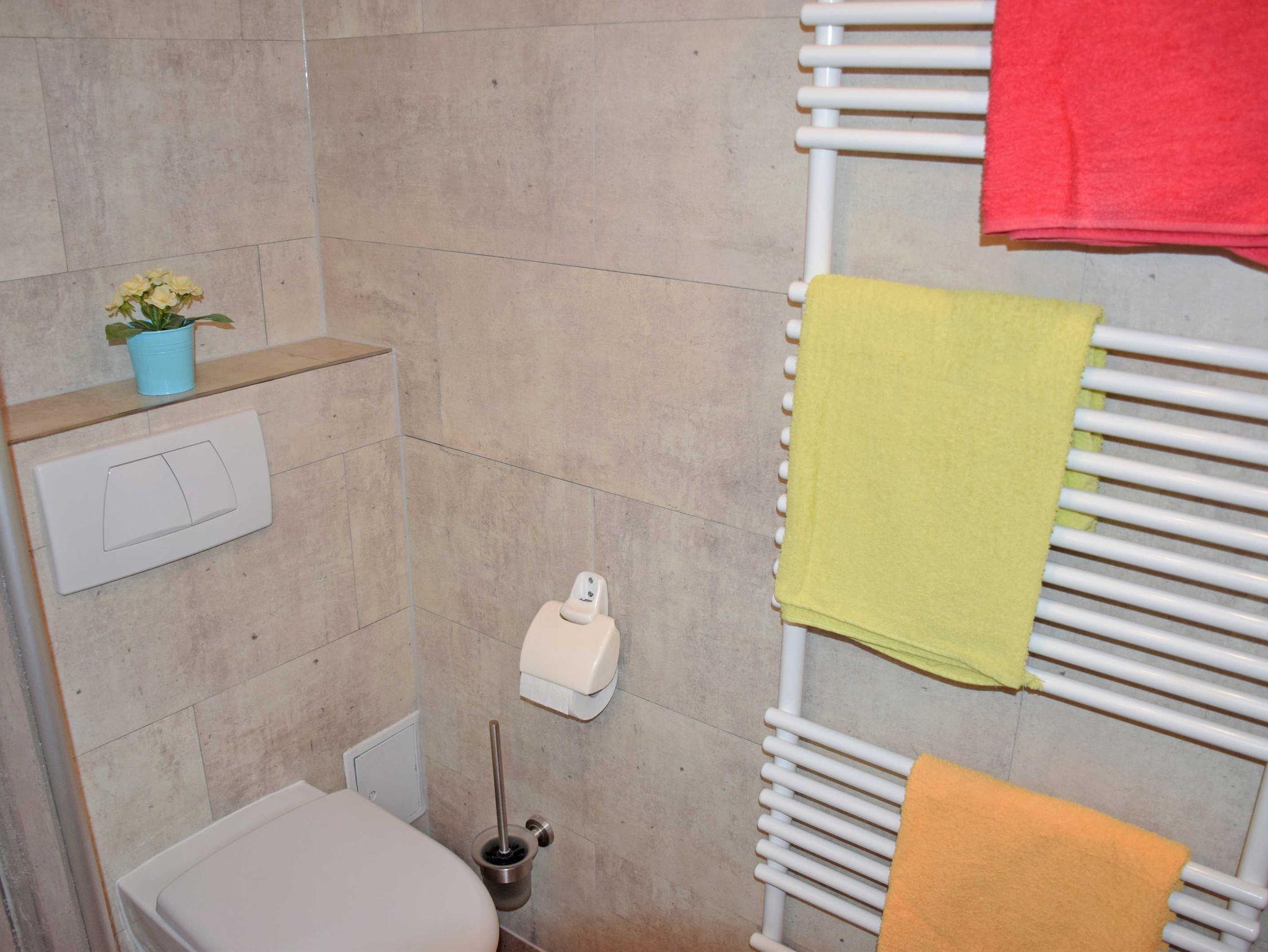 Bei Ihrer Anreise sind die Betten bereits mit Bettwäsche bezogen und es liegen frische Handtücher für Sie bereit. Das moderne Bad ist mit Dusche, WC und Waschtisch ausgestattet.