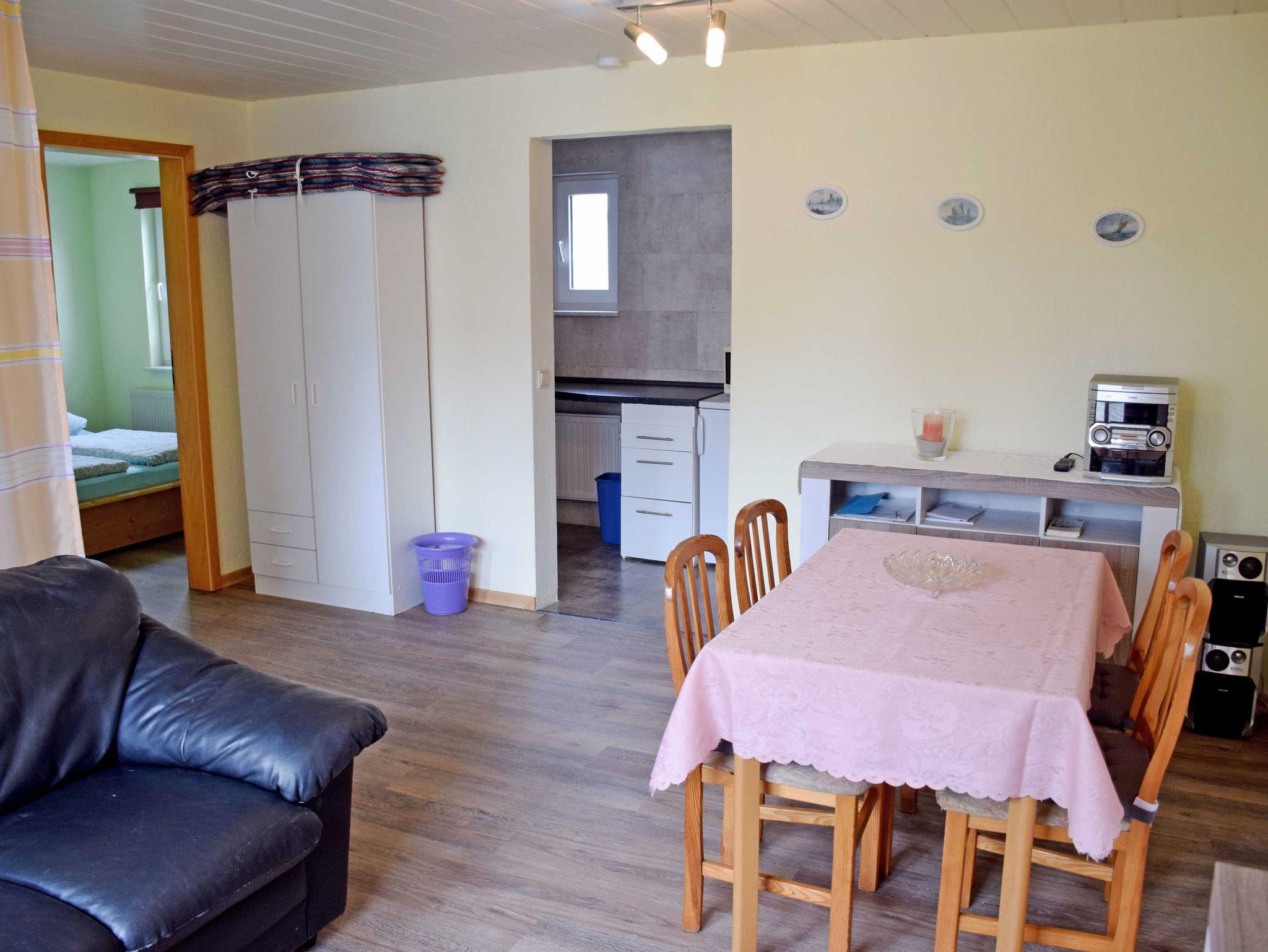 Unser modern und liebevoll eingerichtetes Ferienhaus ist ca. 52 qm groß, bietet Platz für maximal 4 Gäste. Im Wohnraum steht eine bequeme Sitzcouch mit Tisch, ein Schrank , Esstisch mit Stühlen und ein Flachbild-TV.