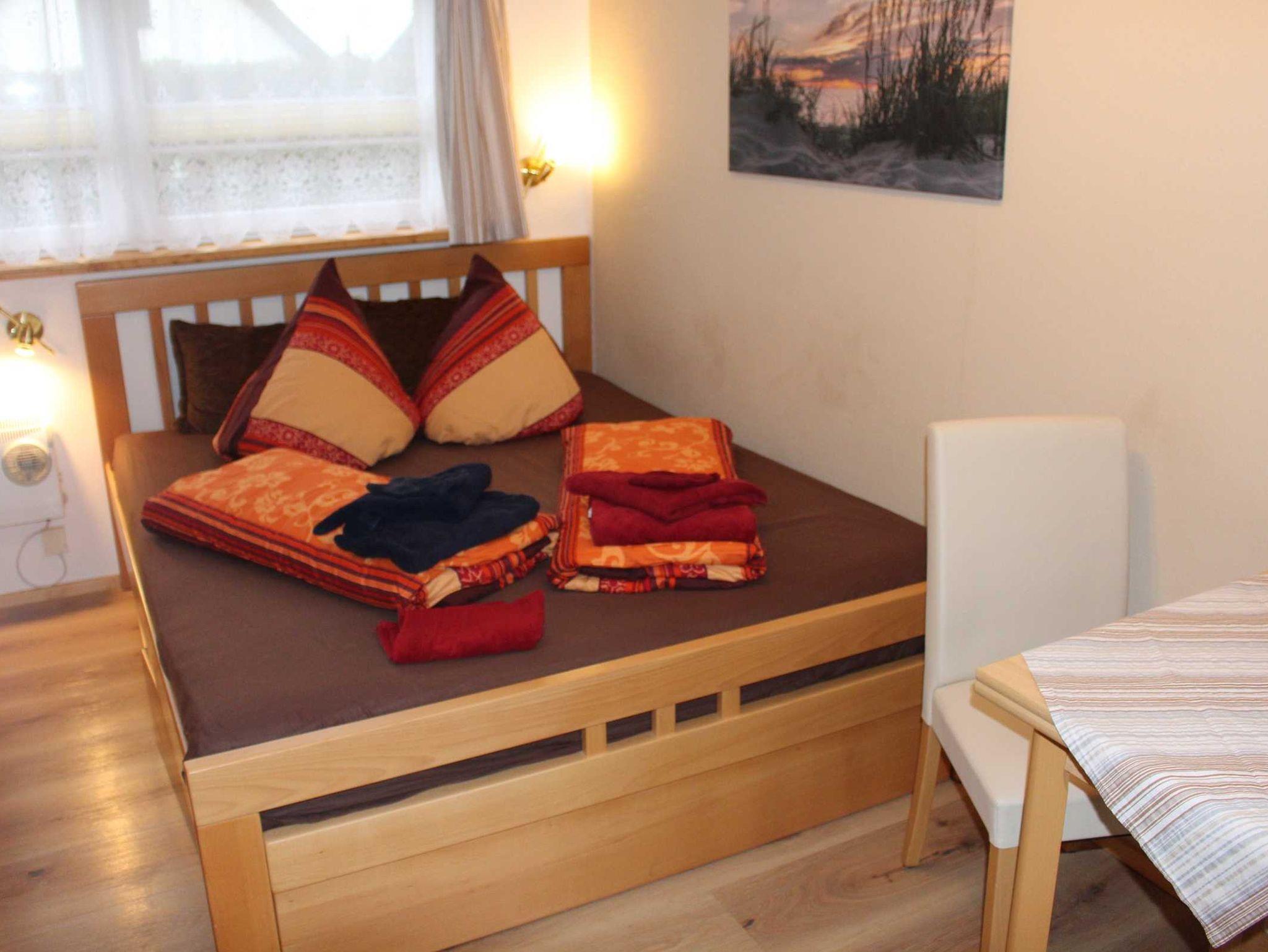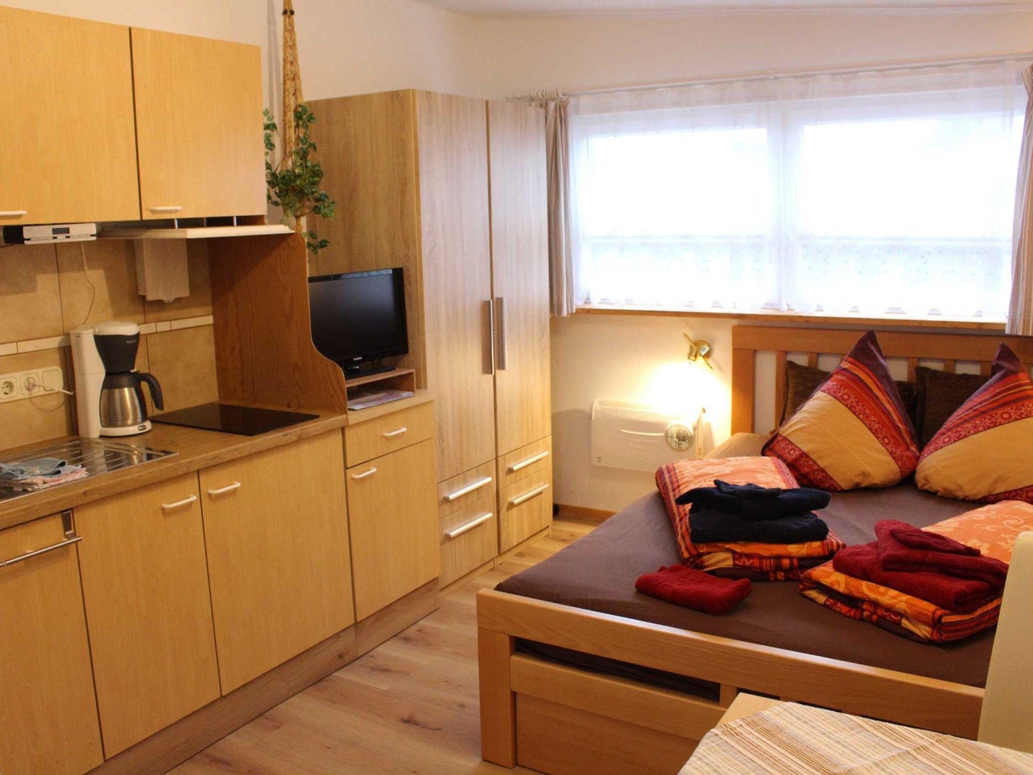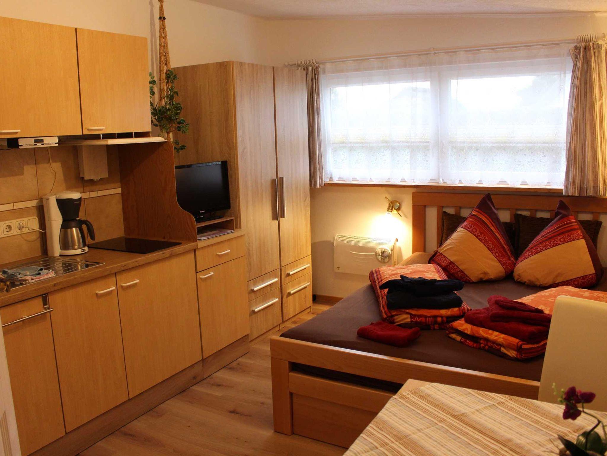 Er besteht aus einem kombinierten Wohn-Schlafraum mit Miniküche.