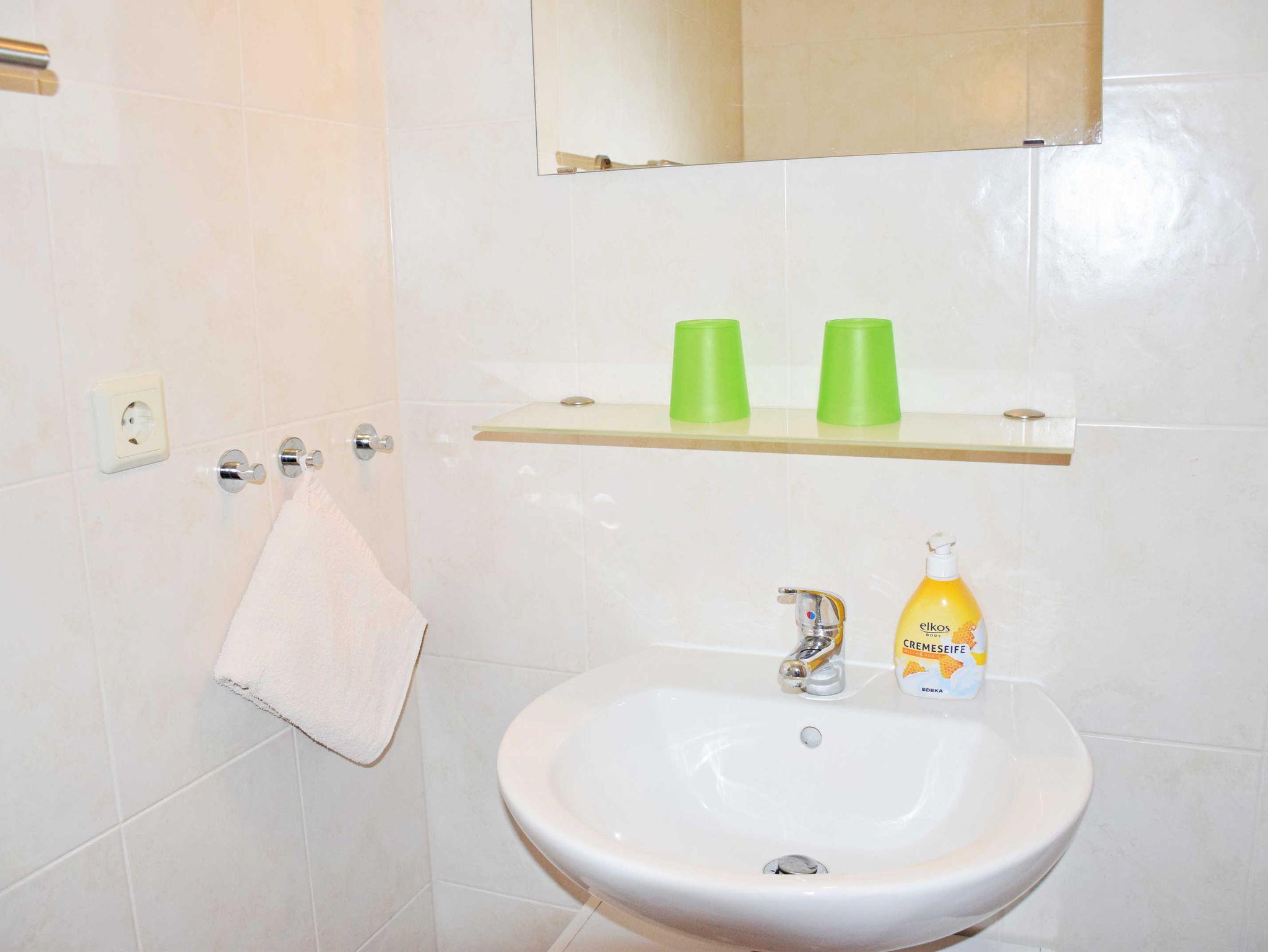 Bei Ihrer Anreise sind die Betten bereits mit Bettwäsche bezogen und es liegen frische Handtücher für Sie bereit. Das moderne Bad ist mit Dusche, WC und Waschtisch ausgestattet.