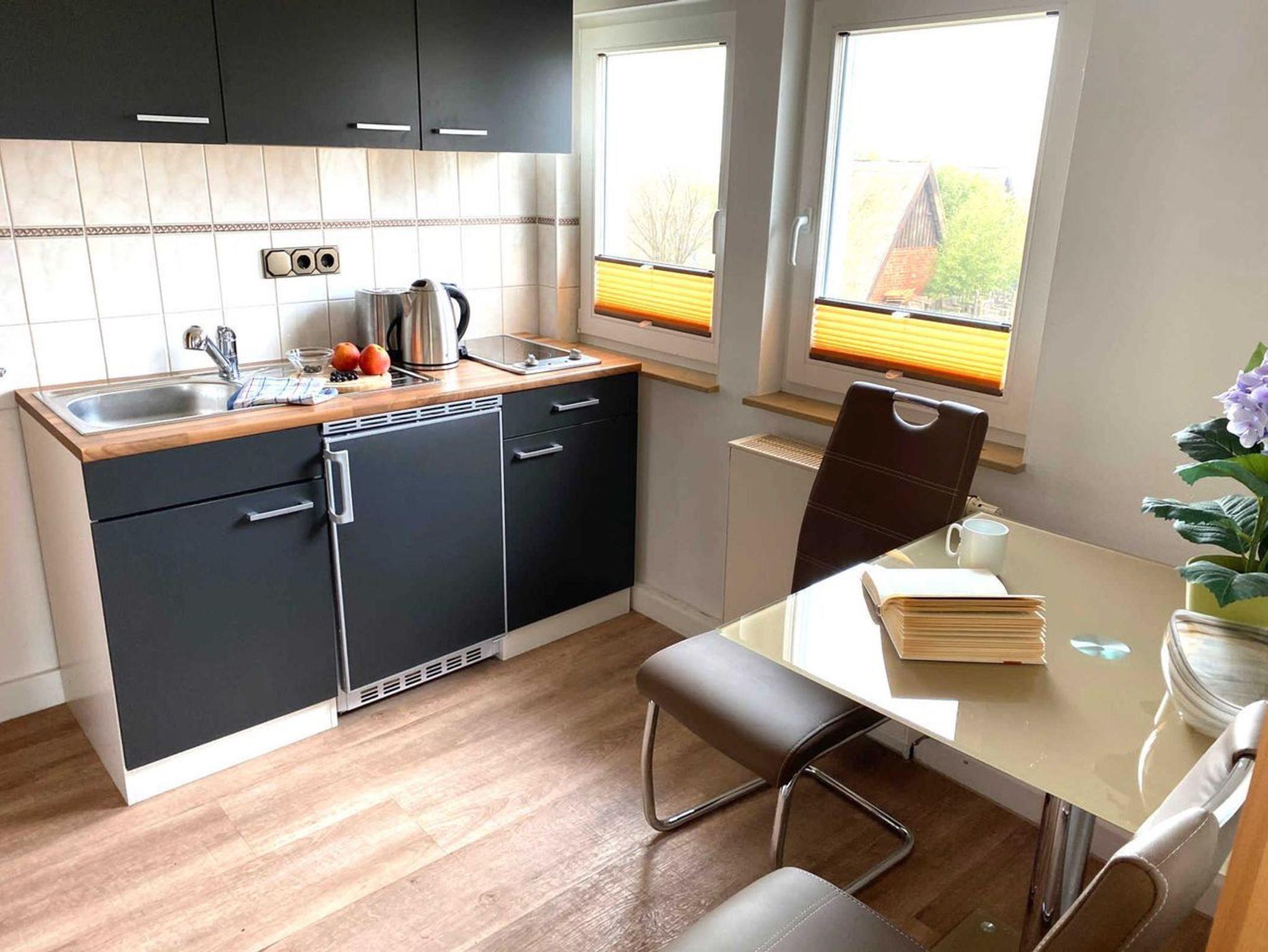 In dem typisch reetgedeckten Haus nach Hideenseer Art befindet sich das charmante 1-Raum-Appartement im 1. Obergeschoss.