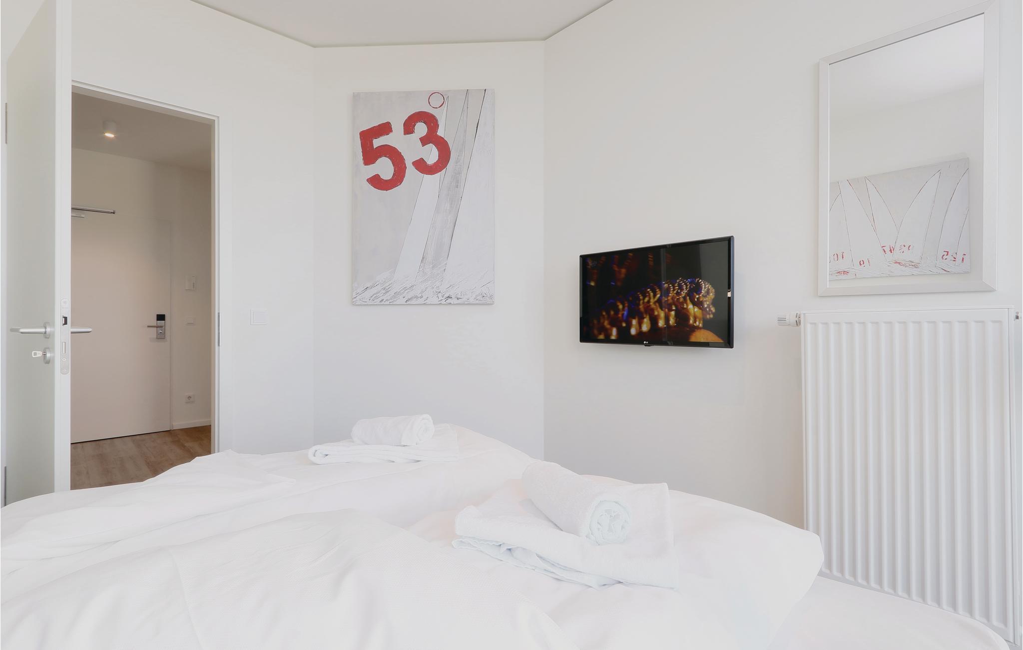 Ihre Wohnung befindet sich im 1. Obergeschoss der Anlage und verfügt über ein separates Schlafzimmer mit einem gemütlichen Doppelbett. Im Wohnbereich können Sie es sich vor dem wohligen Licht des Bio-Ethanol-Kamins gemütlich machen. Das moderne Entertainmentsystem mit Blu-Ray-Player, Musikanlage mit MP3-Anschluss sowie 2 Flachbildfernsehern sorgt für ausreichend Unterhaltung. Im Wohnbereich befindet sich außerdem das Schlafsofa, welches zwei weitere Schlafplätze bietet. Alle Zimmer sind im skandinavischen Stil eingerichtet und durch die bodentiefen Fenster hell und lichtdurchflutet.