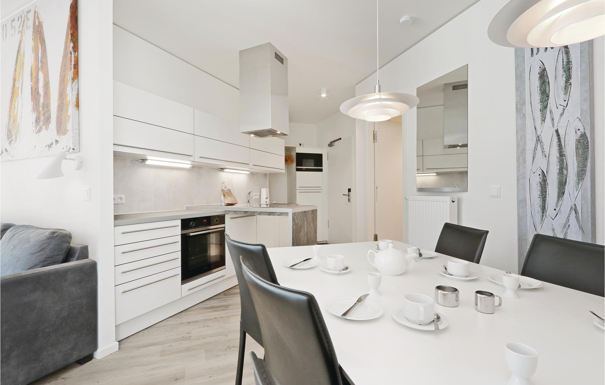 Das moderne Entertainmentsystem mit Blu-Ray-Player, Musikanlage mit MP3-Anschluss sowie 4 Flachbildfernsehern sorgt für ausreichend Unterhaltung. Alle Zimmer sind im skandinavischen Stil eingerichtet und durch die bodentiefen Fenster hell und lichtdurchflutet. Die moderne Küchenzeile bietet ausreichend Platz zum Kochen und ist mit hochwertigen Markengeräten ausgestattet. Hier finden Kaffeeliebhaber eine Nespresso-Maschine (Kapseln bitte selbst mitbringen), sowie Thermoskanne und Handfilter zum Selbstbrühen, falls Sie doch den klassischen Filterkaffee bevorzugen.